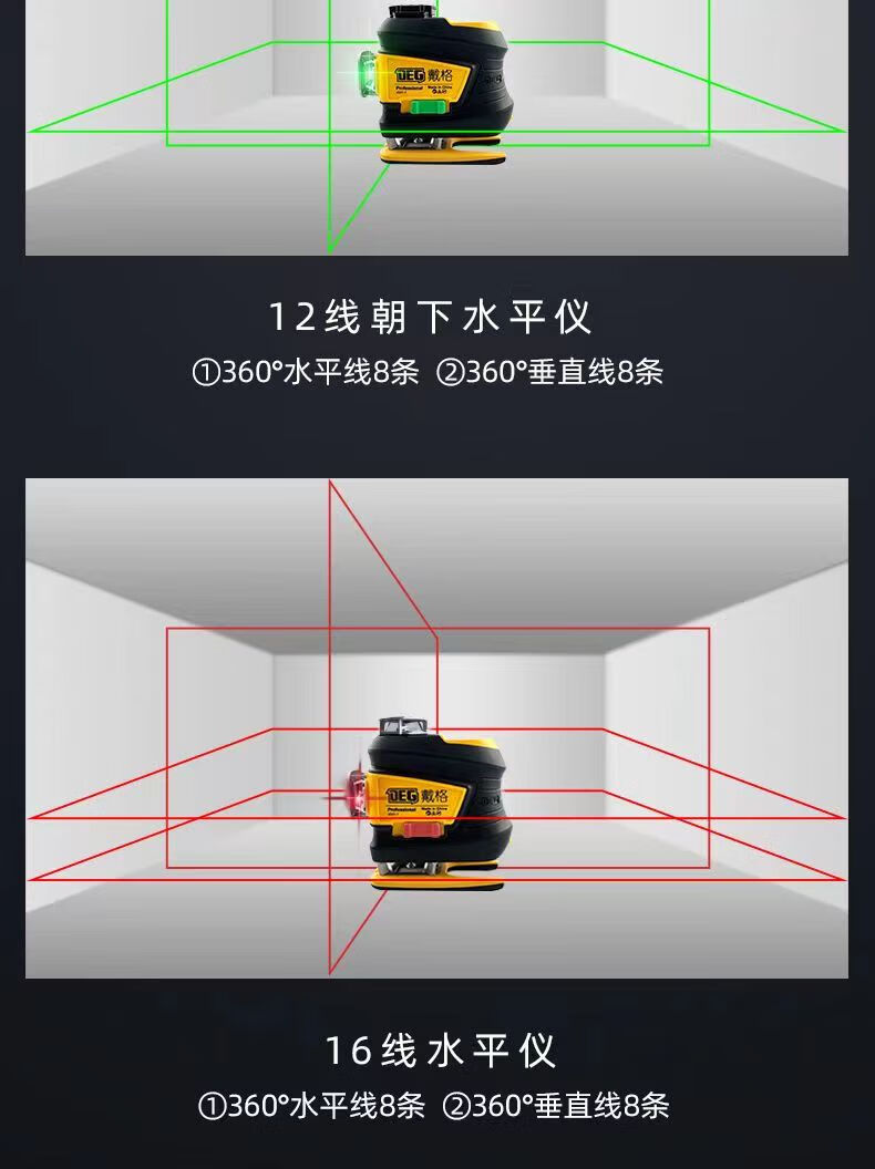 Daige level 12-line red light high-precision laser infrared outdoor strong light wall-building instrument thin line automatic leveling 12-line three-color light