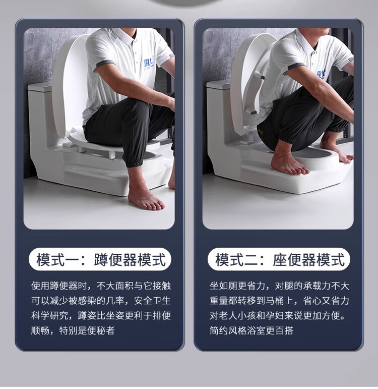 Modern squatting dual-purpose toilet one-in-one two-in-one squatting and sitting dual-purpose desktop squat toilet package installation B-type egg-shaped high-sitting sealed spray gun 305mm