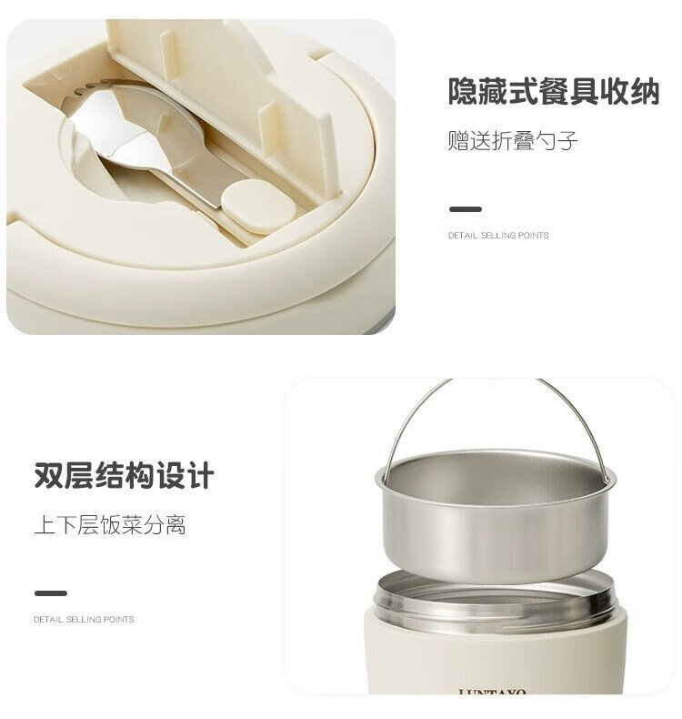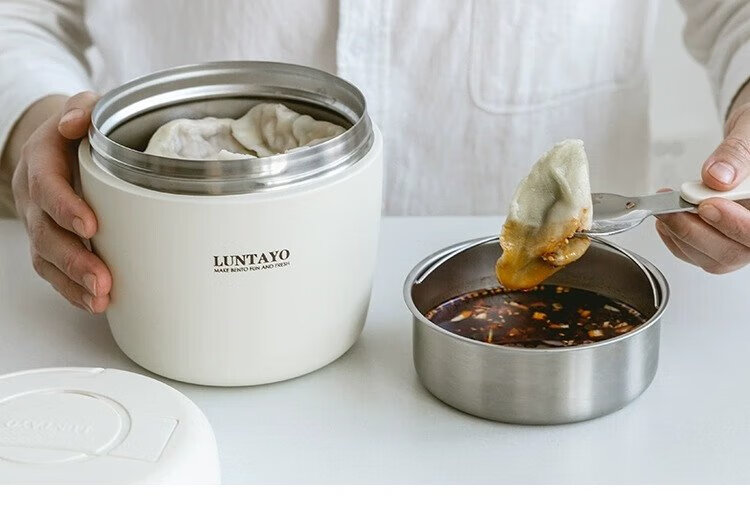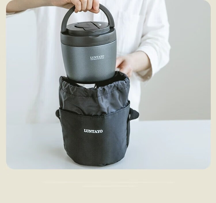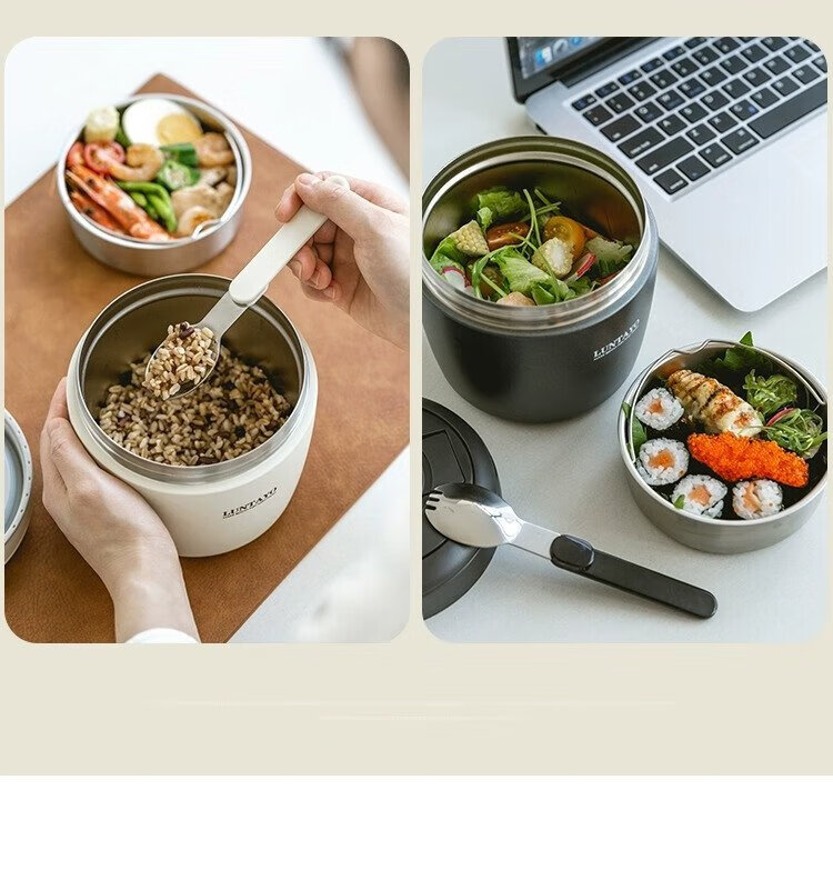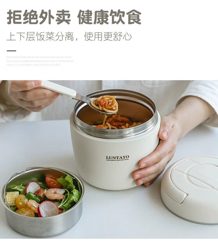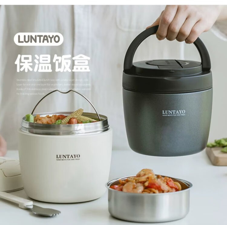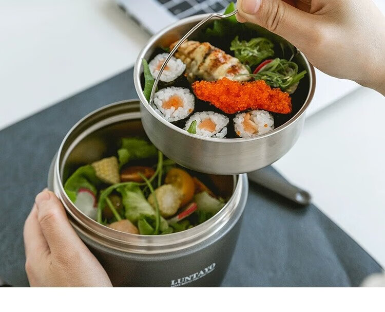 LUNTAYO Japanese double-layer 316 stainless steel insulated lunch box, large-capacity office worker, extra-long insulated portable insulated bucket lunch box, black, 2 layers, 1000ml