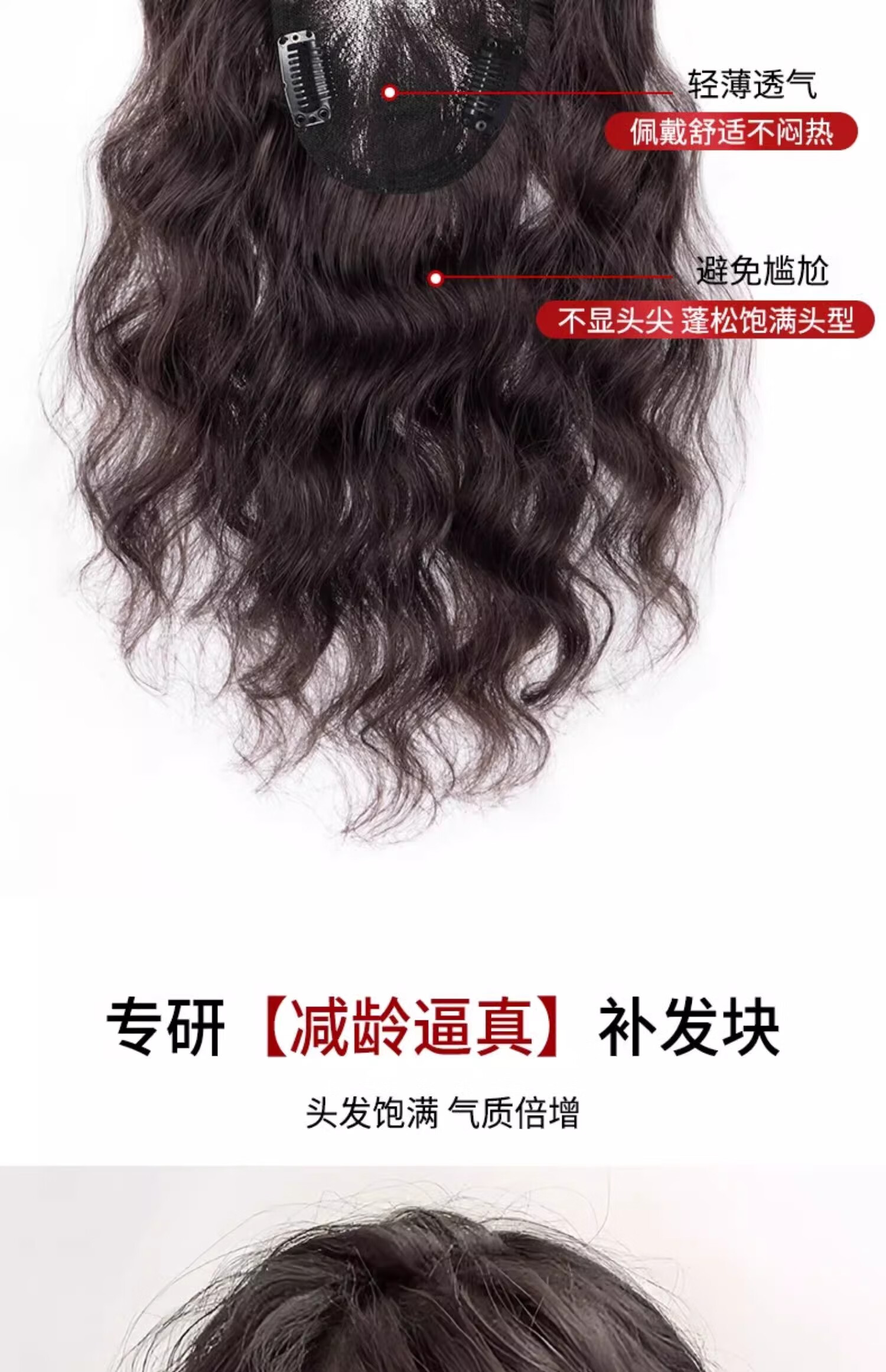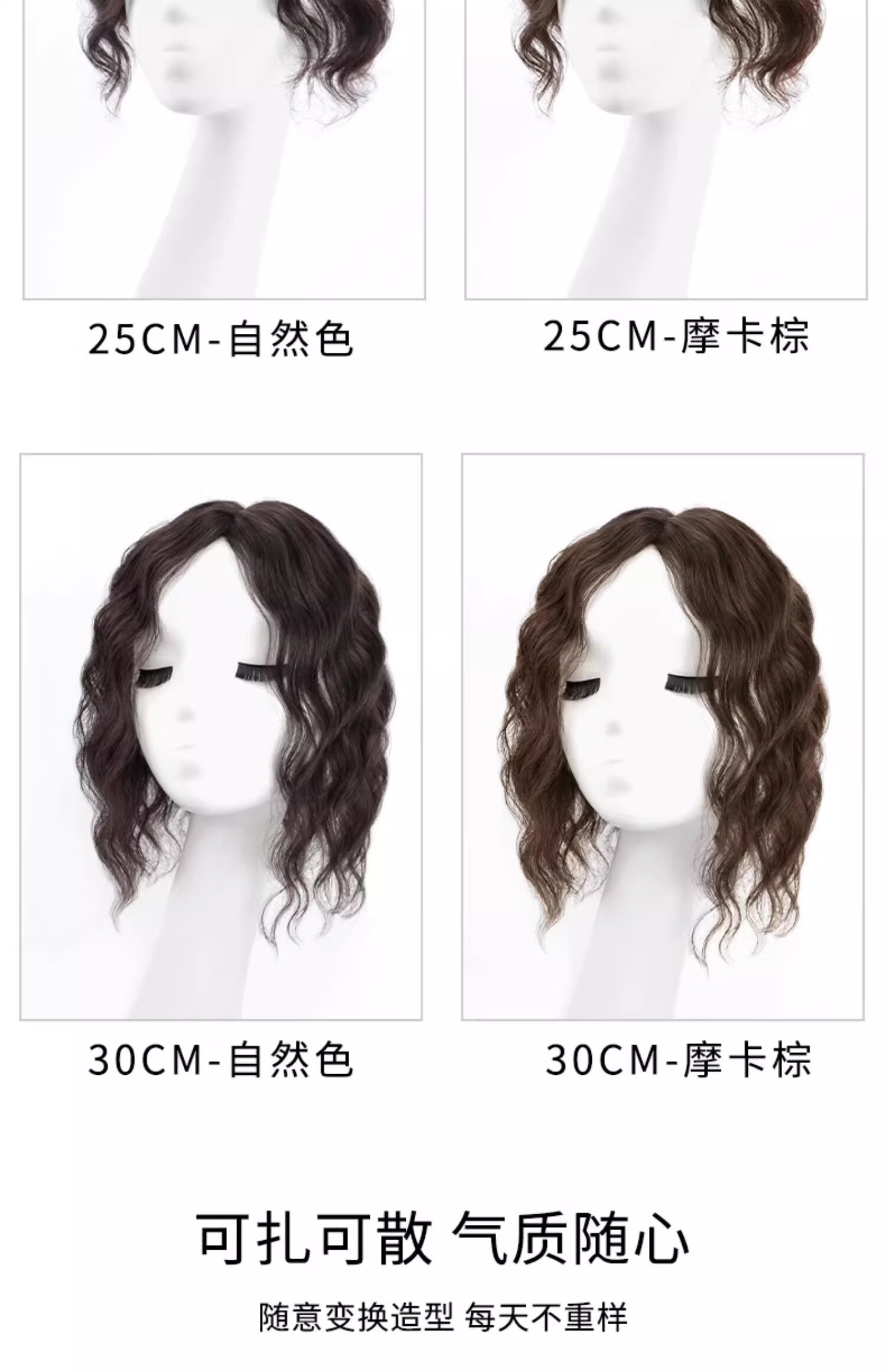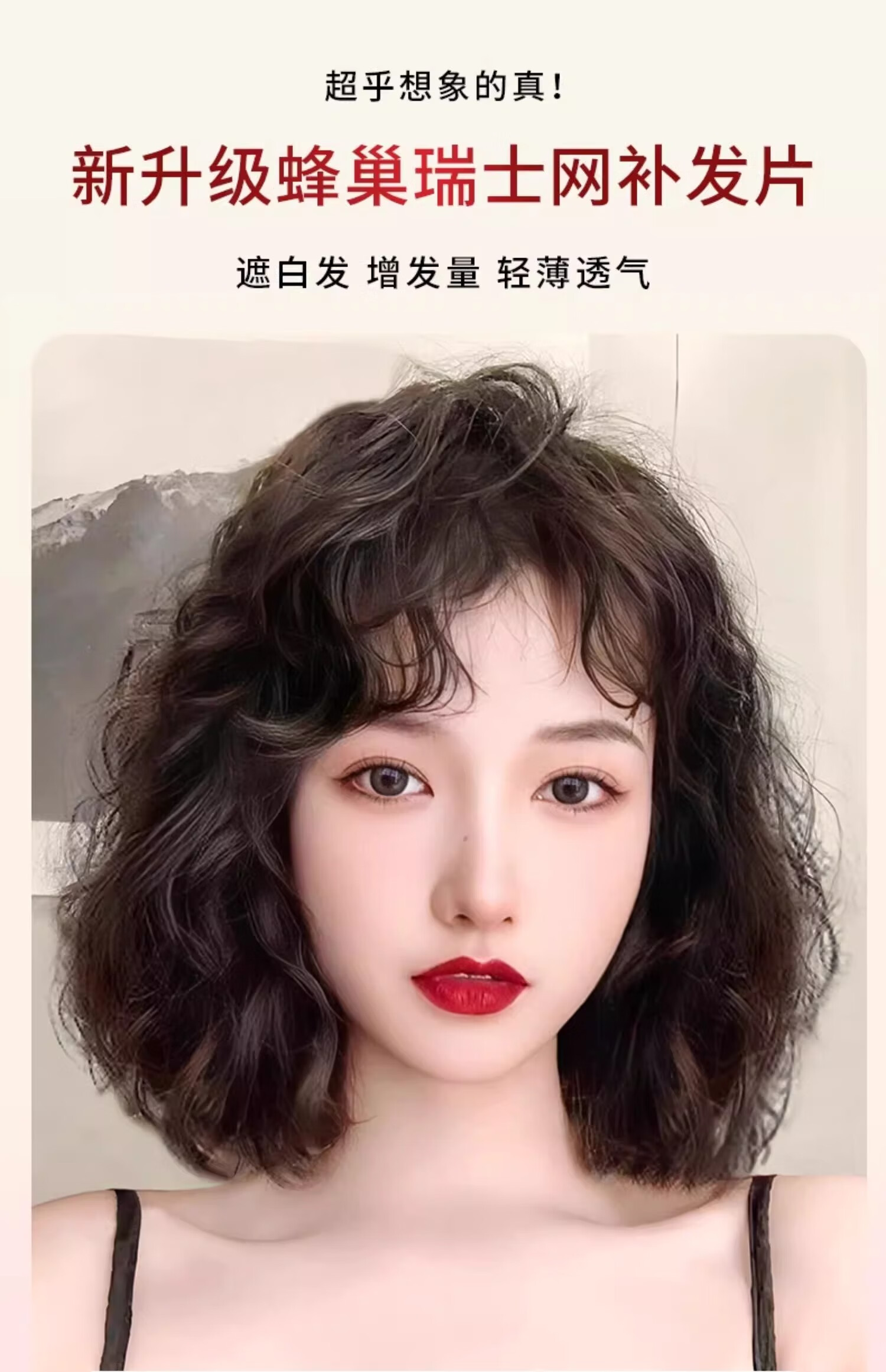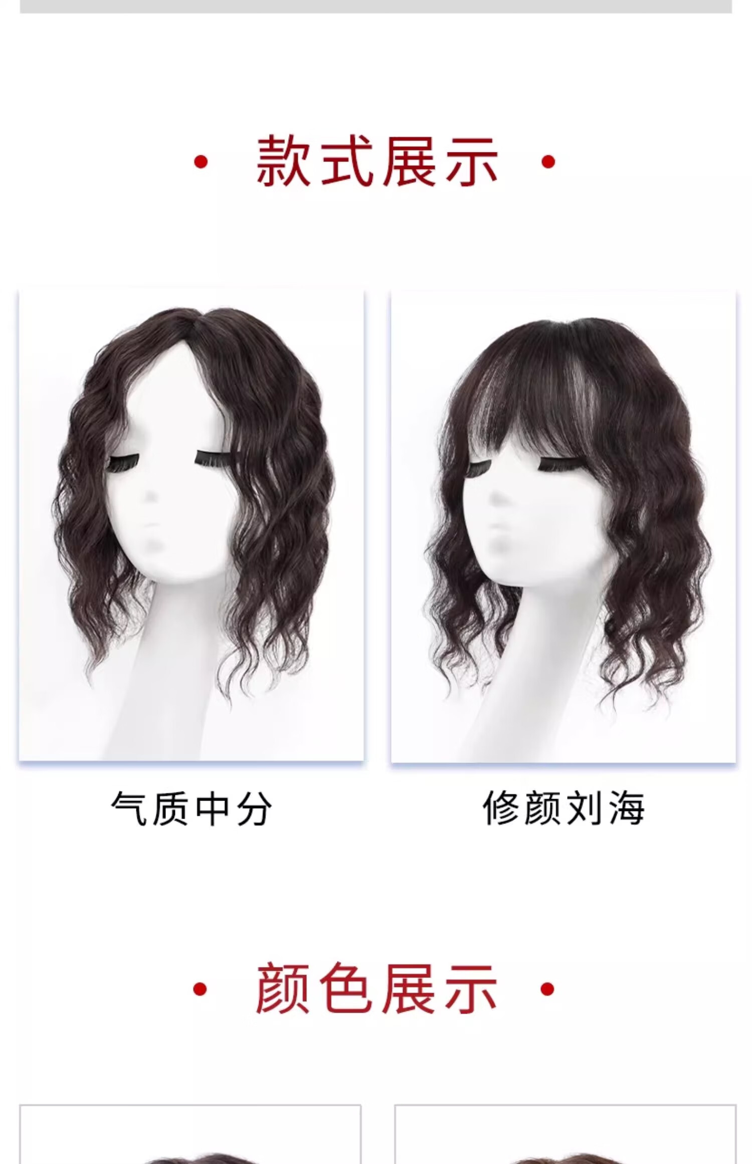 Shang Shangqian's wig piece for women with curly hair to cover gray hair, thin, fluffy, natural and traceless full human hair replacement piece, repair bangs 9*14, natural color 30cm