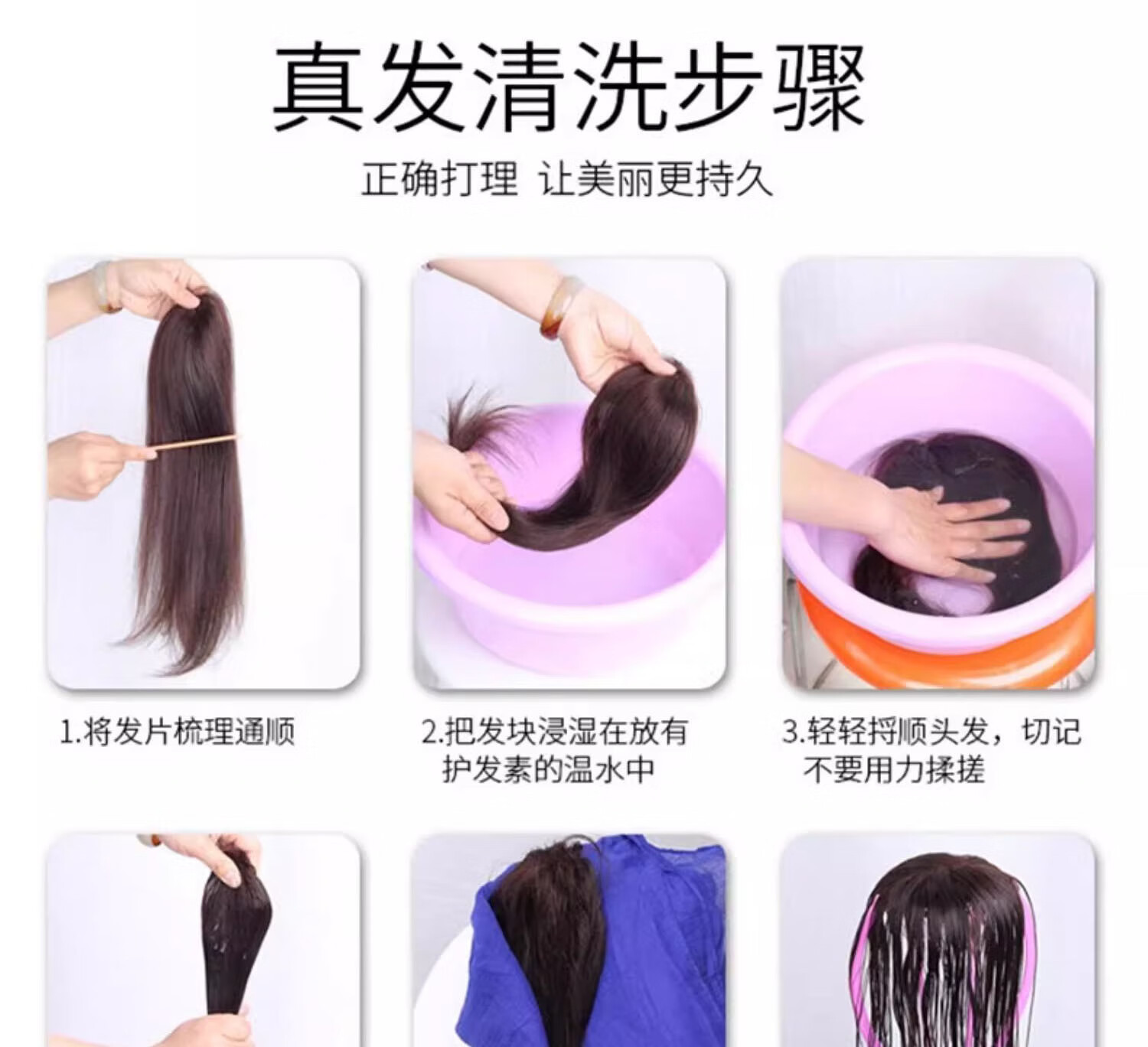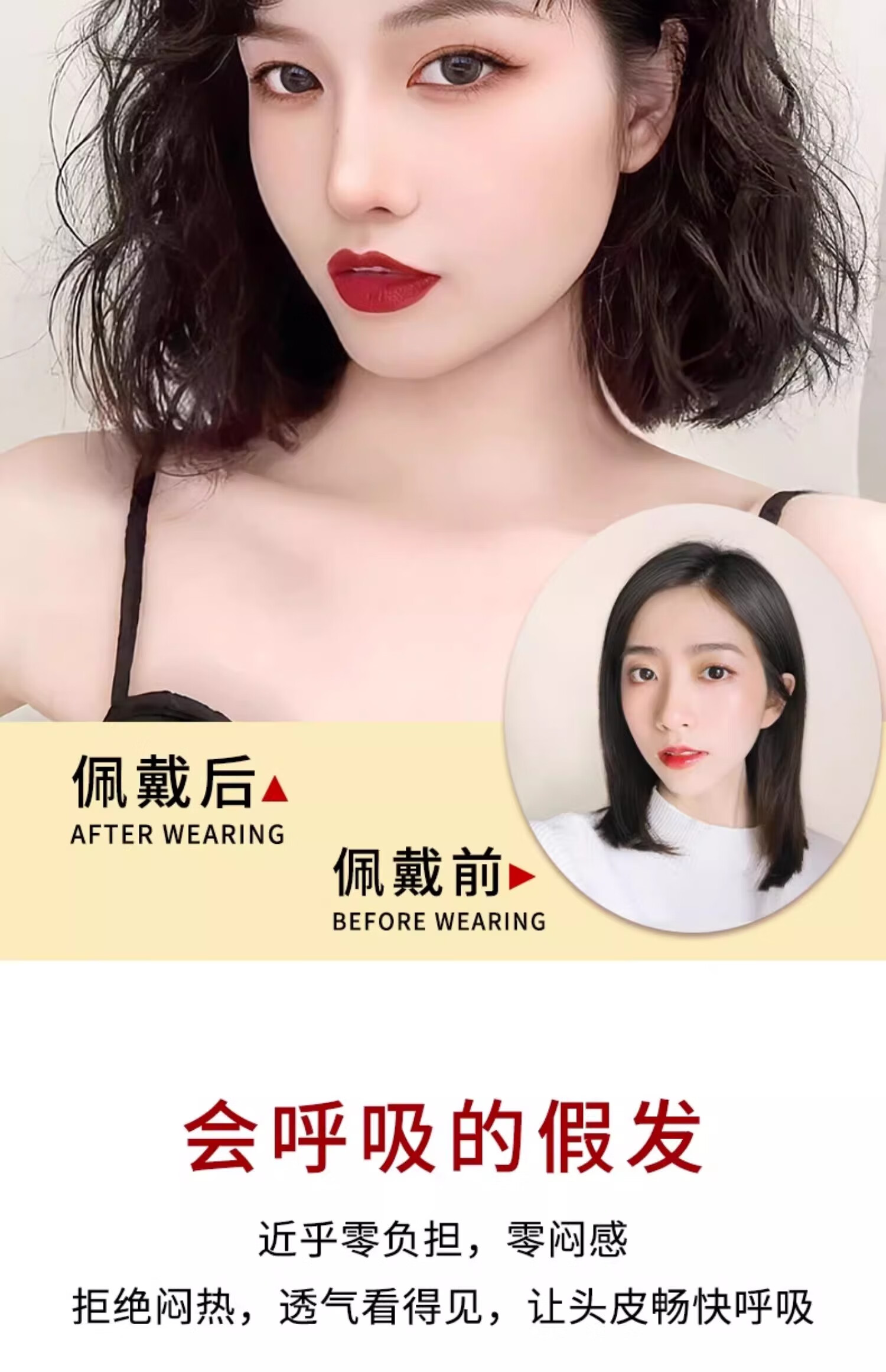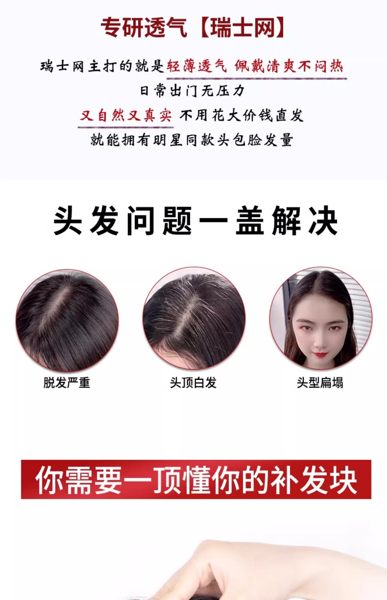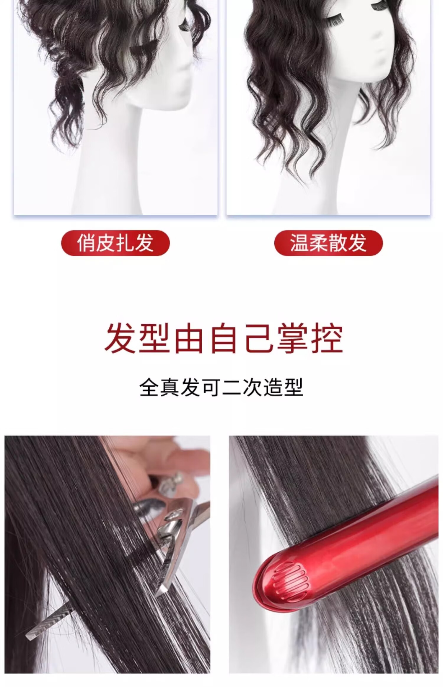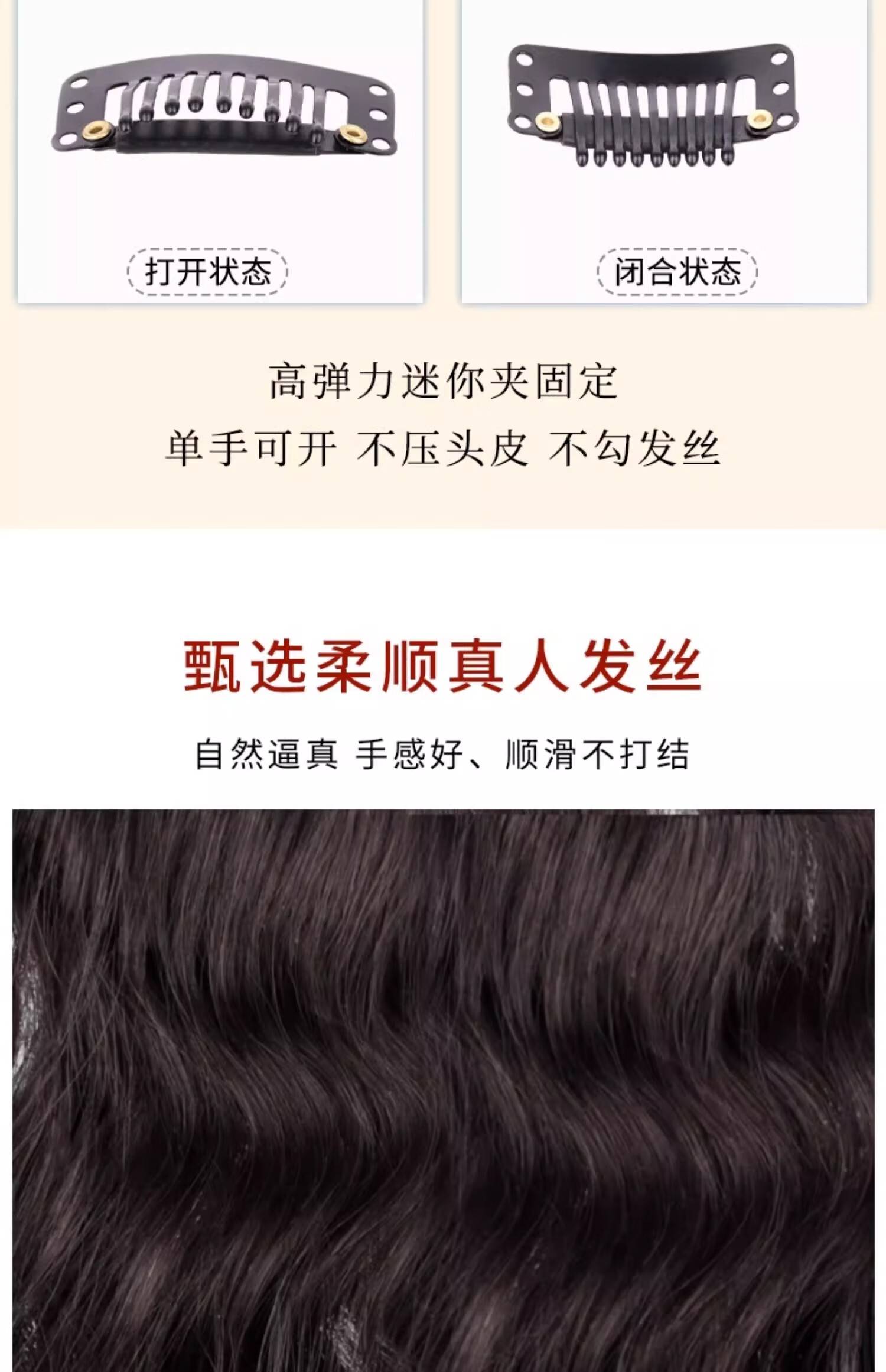 Shang Shangqian's wig piece for women with curly hair to cover gray hair, thin, fluffy, natural and traceless full human hair replacement piece, repair bangs 9*14, natural color 30cm