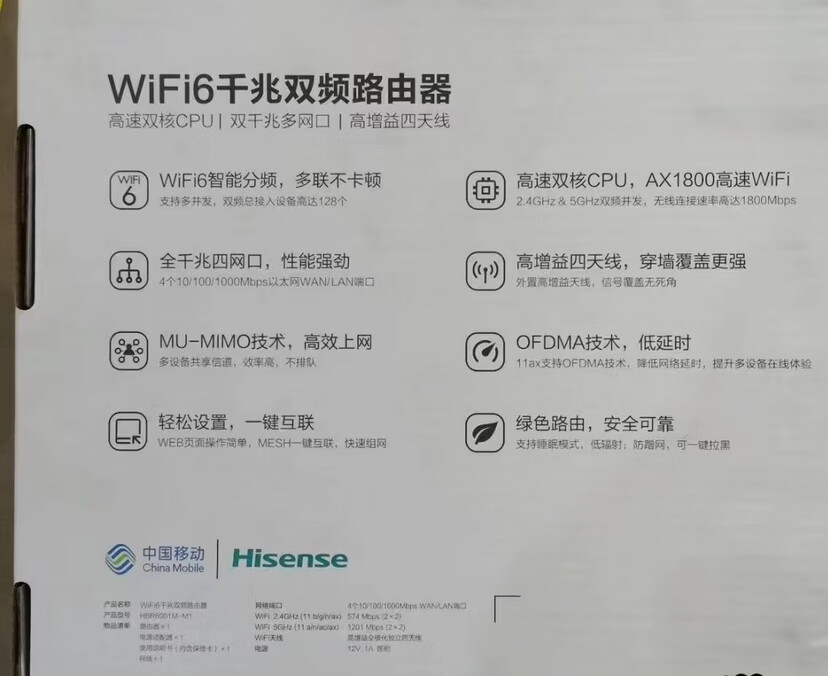 Hisense router wifi6 wireless AX1800 Gigabit HBR6001M-M1 full gigabit wifi6 Ruisikangda DR5374 mobile version 3000M starting from a single unit