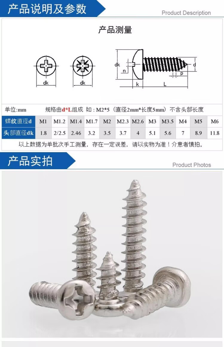 Tianzhuo Hardware PA hardened carbon steel nickel-plated cross round head self-tapping screw iron pan head small screw head M1M1.2M2M3M4mm M3.5*35 (100 pieces