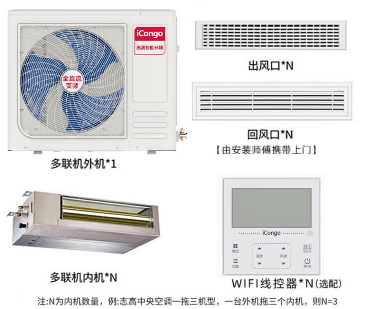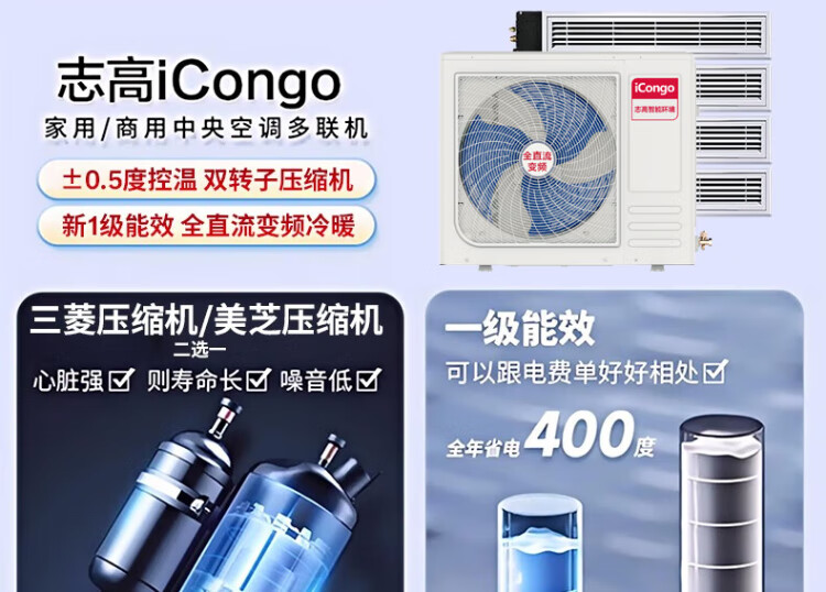 Chigo central air conditioner one to four/one to three/one to five one to six duct machine commercial household full DC frequency conversion first level energy efficiency intelligent cleaning embedded air conditioner multi-split 6 HP one to five Meizhi compressor first level frequency conversion self-cleaning