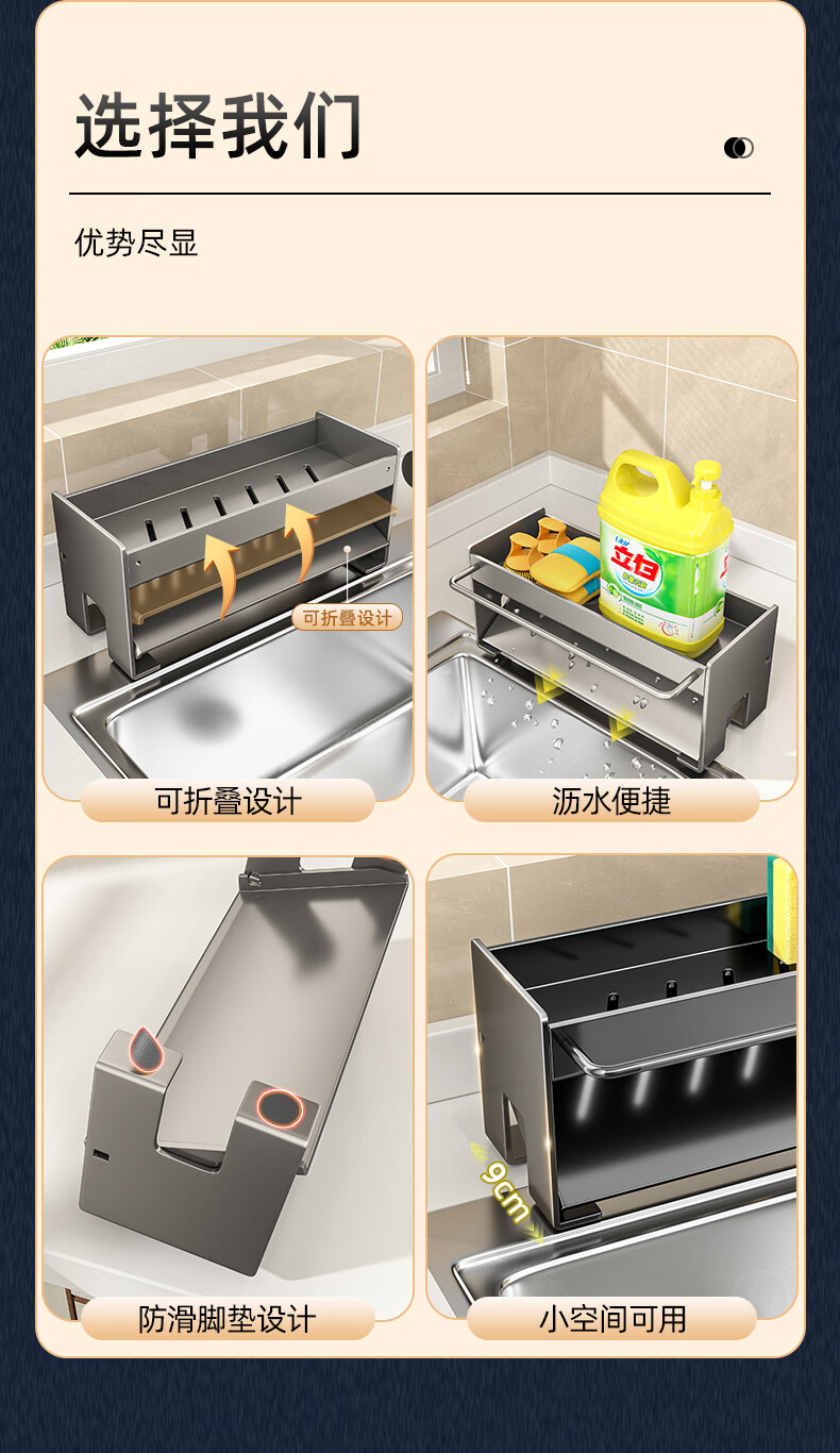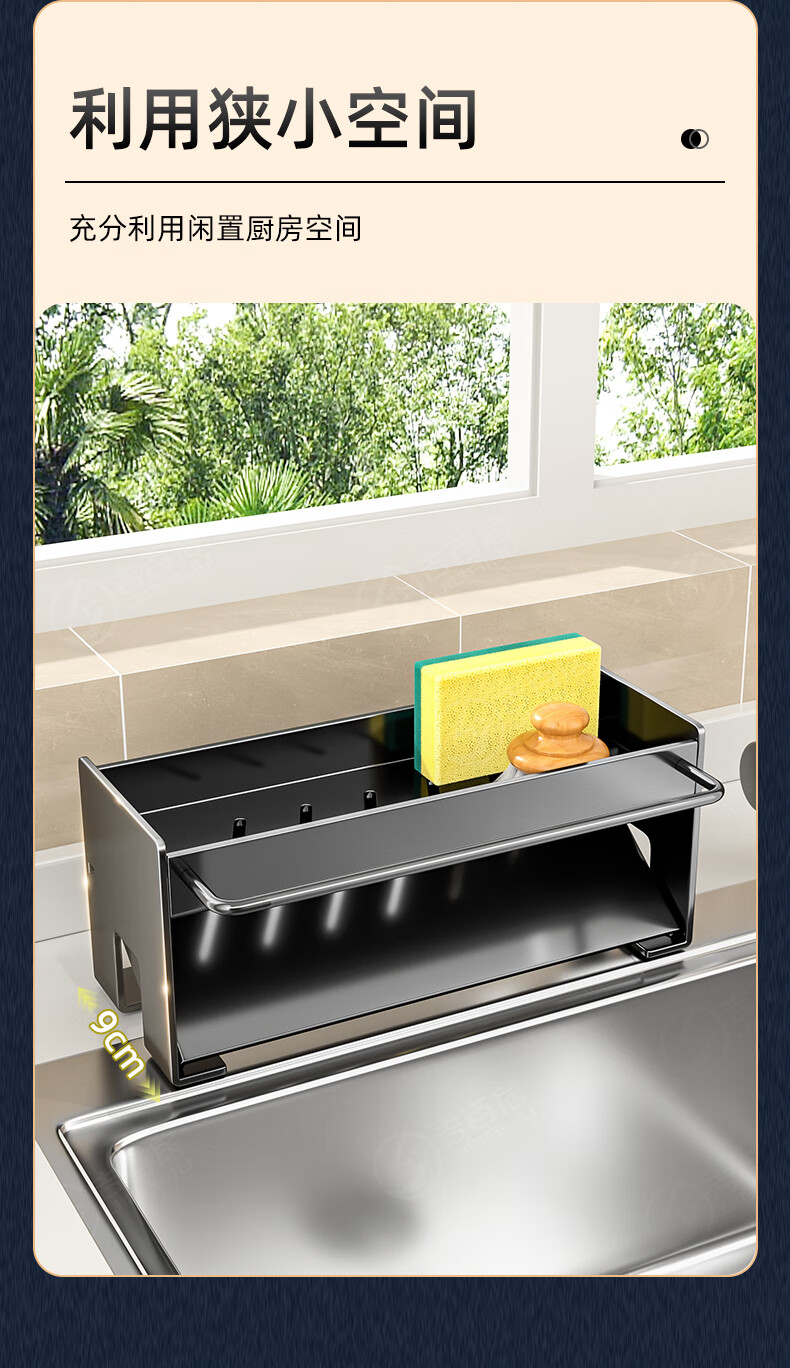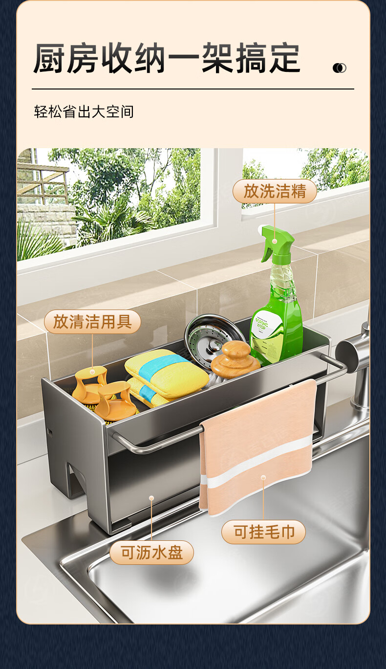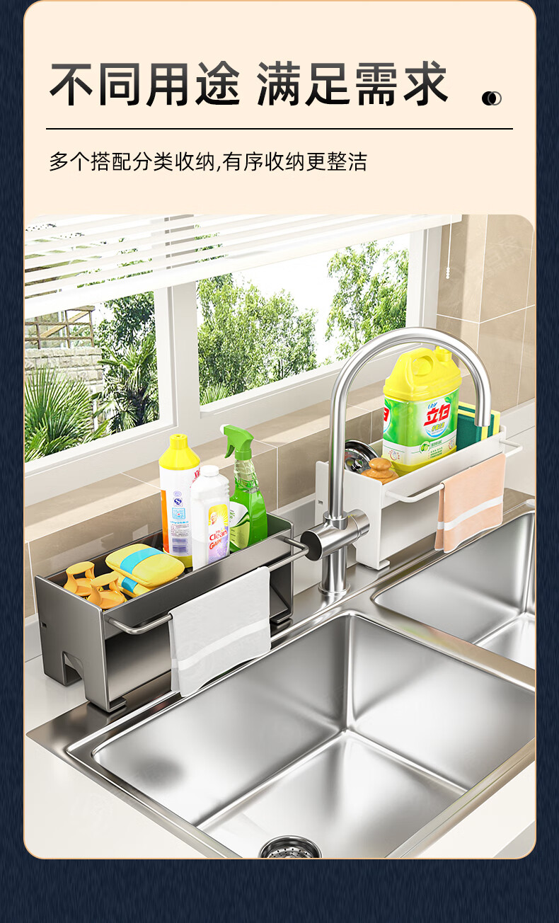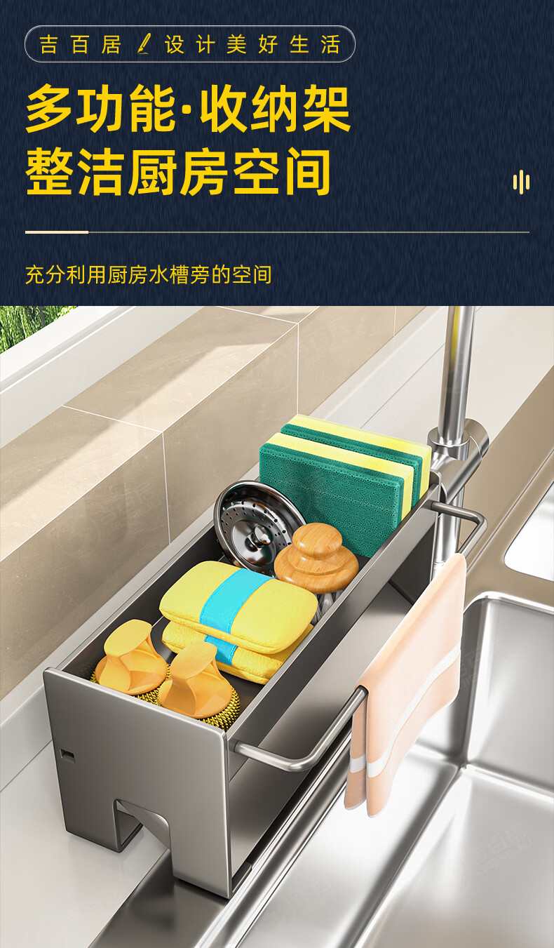 Jibaiju kitchen rack rag rack storage drain rack faucet sink dishwashing sponge steel wire ball rack sink supplies countertop drain basket-gun gray-with rag rack