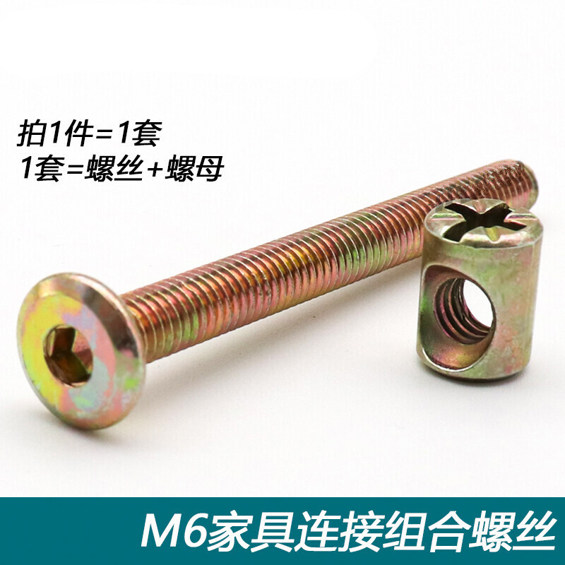 Qincen M6 Furniture Hardware Screws Baby Crib Accessories Screws Cross Hole Nuts Bookcase Inclined Flat Head Screws Hammer Head Nuts Customized private photos not shipped