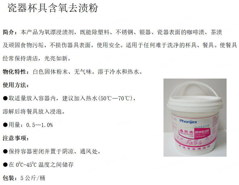 PHONJEX Porcelain Cup Oxygen-containing Stain Remover Powder 5KG Delivery Date 20