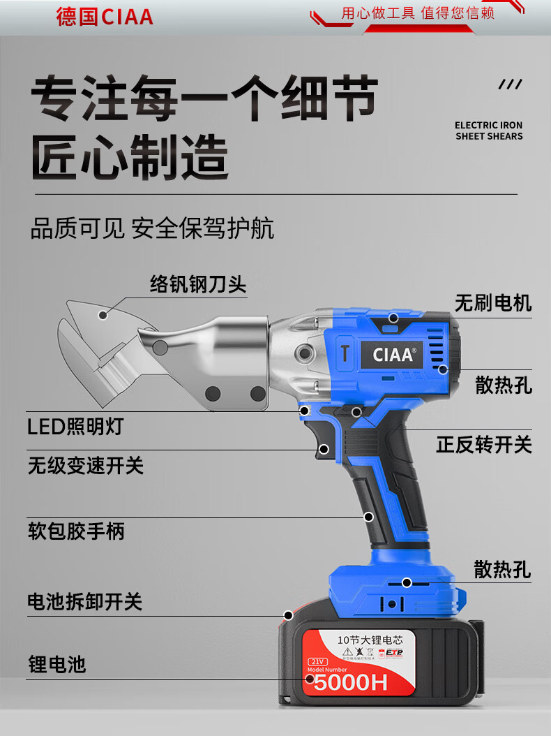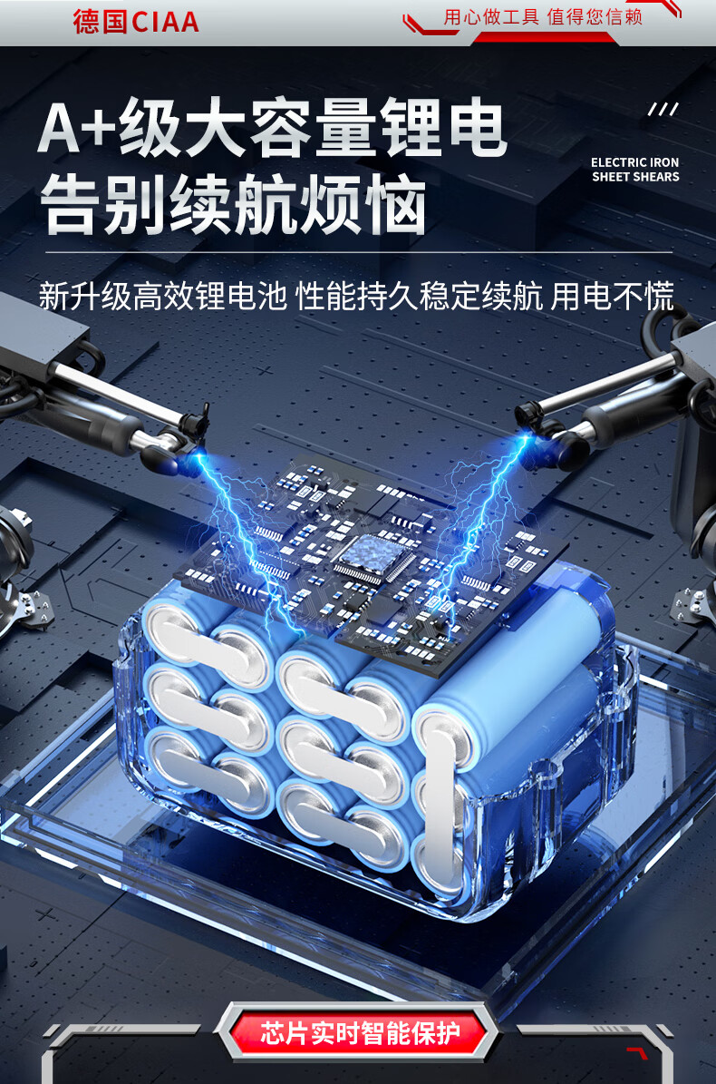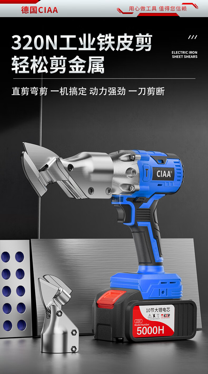 CIAA Germany lithium electric iron shears rechargeable metal scissors plate color steel tile wire mesh blanket power tool heavy-duty model two 5-cell 2500H batteries free high-strength plastic box