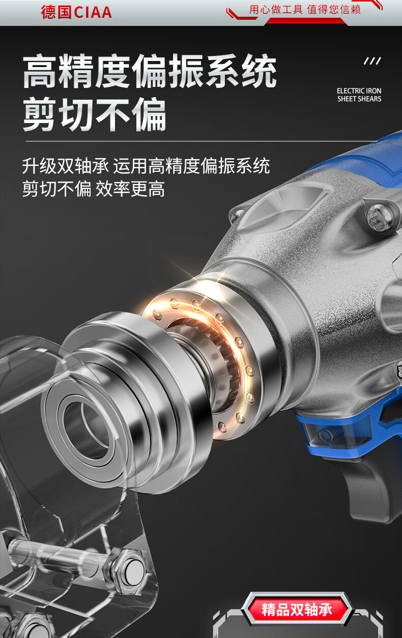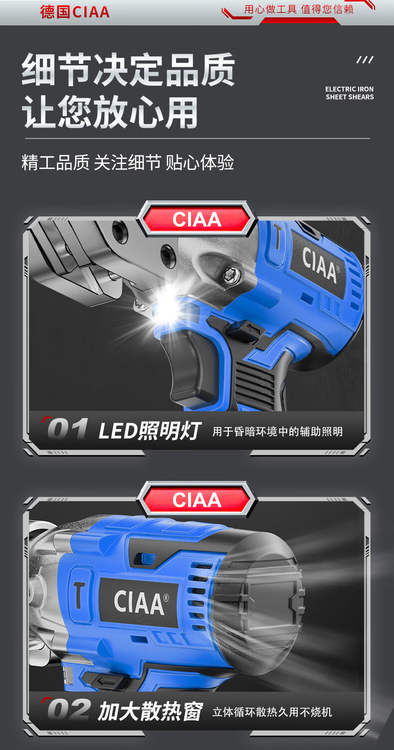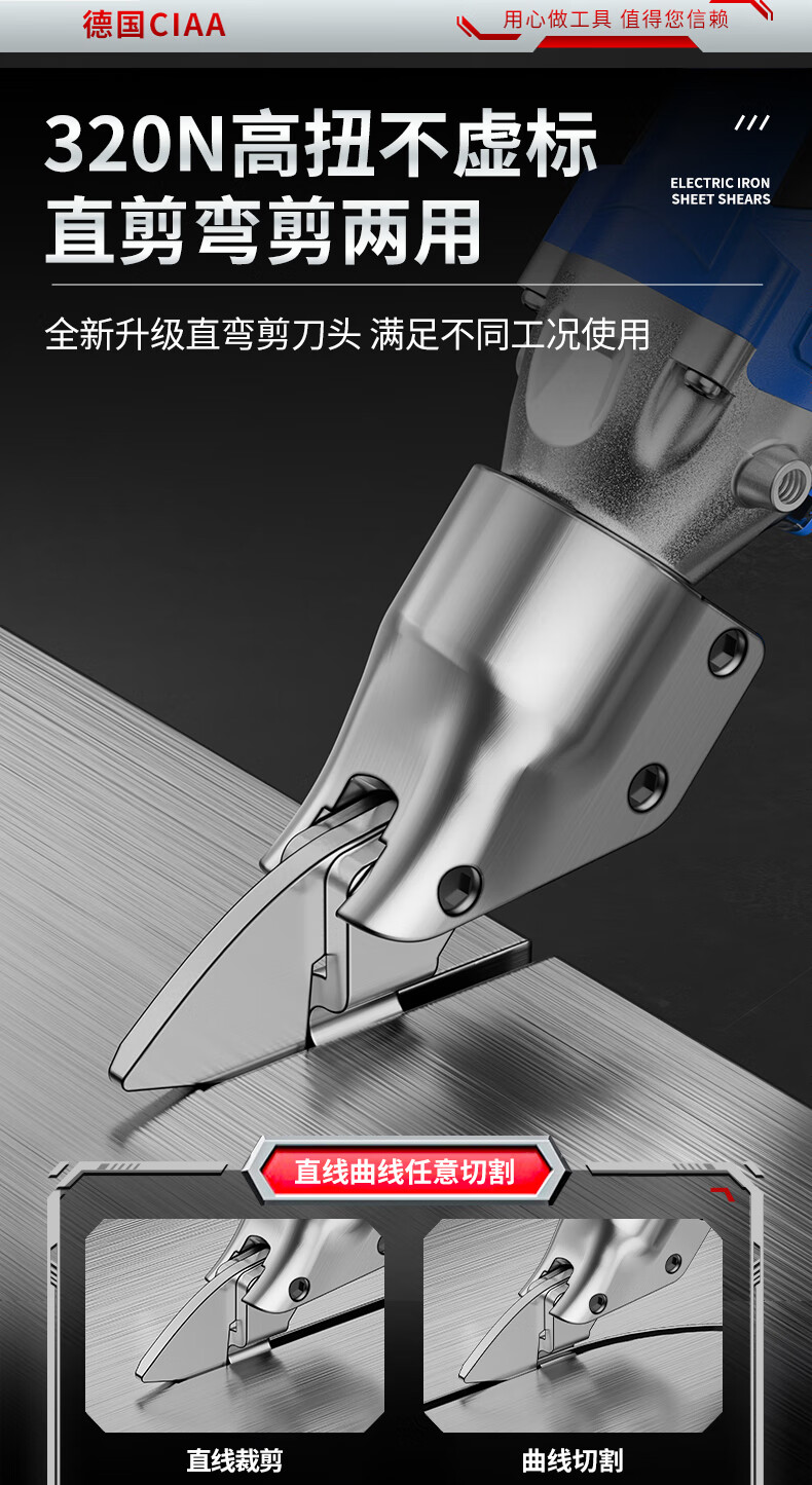 CIAA Germany lithium electric iron shears rechargeable metal scissors plate color steel tile wire mesh blanket power tool heavy-duty model two 5-cell 2500H batteries free high-strength plastic box