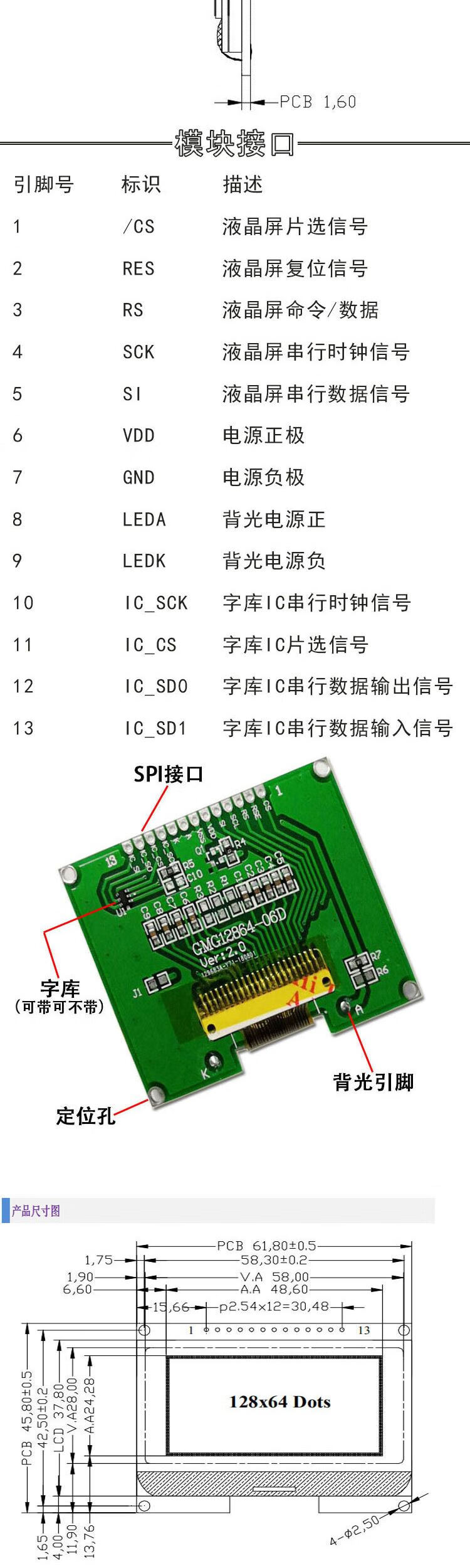 12864 LCD module 12864 dot matrix cog module cog12864 with font library lcd12864 LCD module black background with white characters