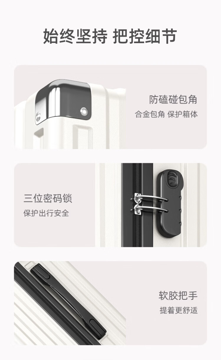 ULDUM suitcase men's travel suitcase zipper trolley case student boarding password case leather suitcase back to school season large capacity white 24 inches