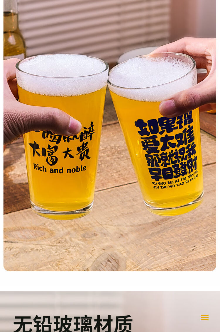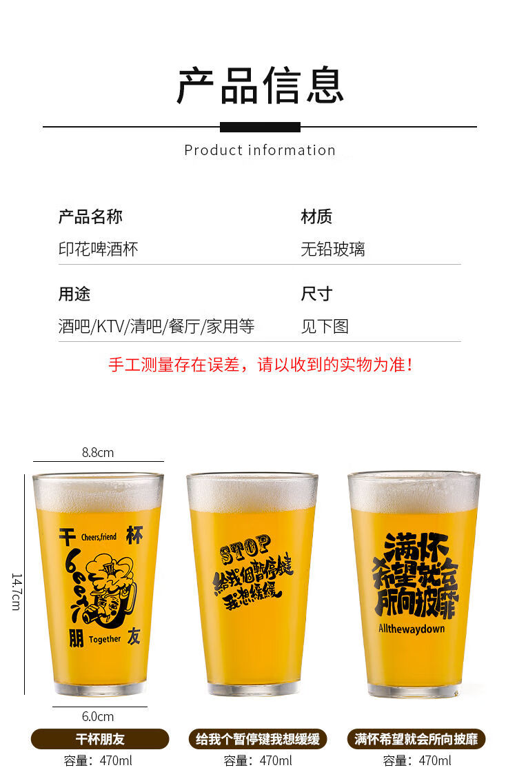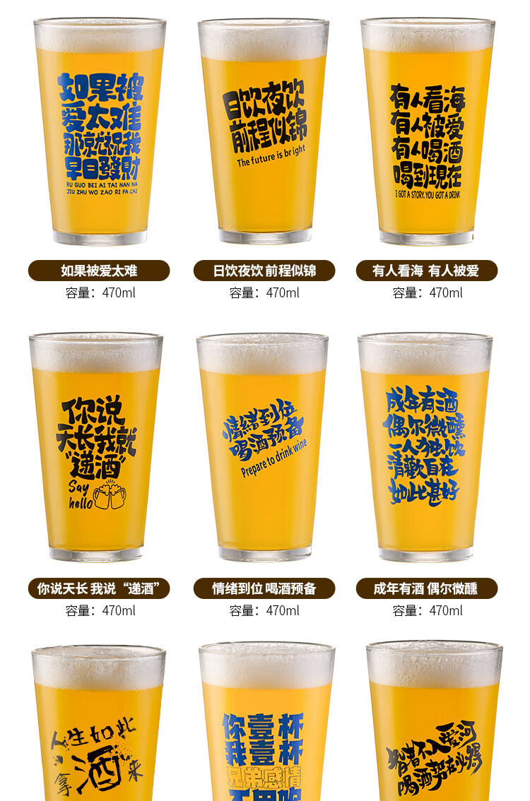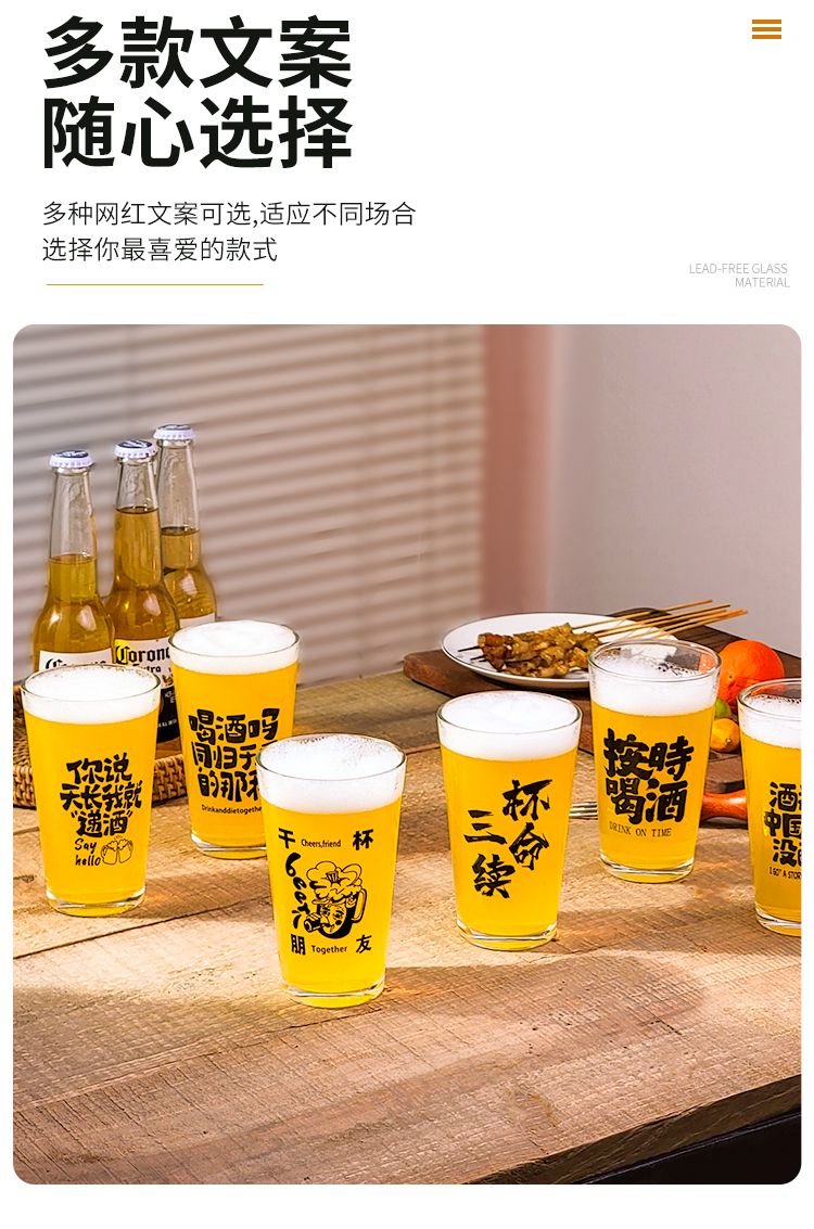 Chaosihui Tavern personalized copywriting beer cup tipsy craft beer pint cup internet celebrity lettering glass cup barbecue shop commercial wine cup 1ml (randomly sent one)