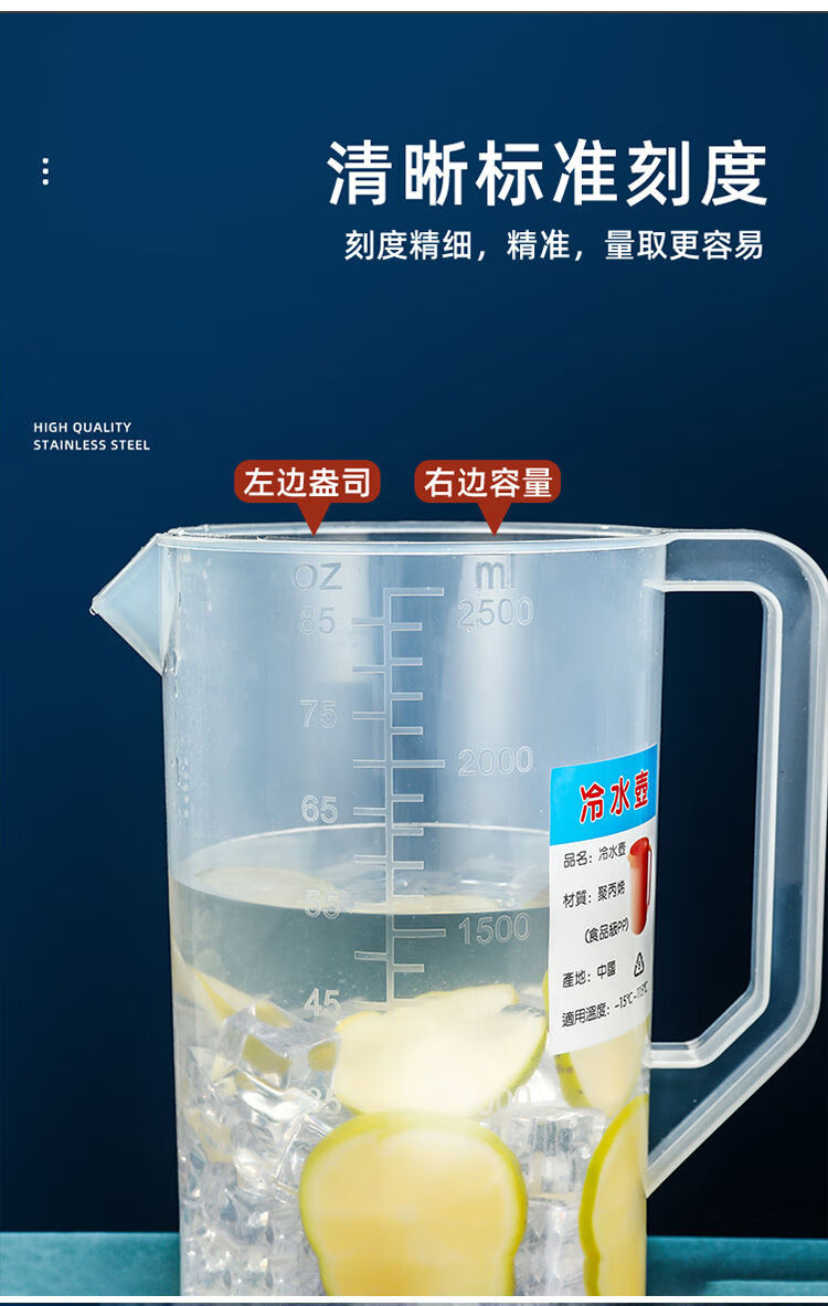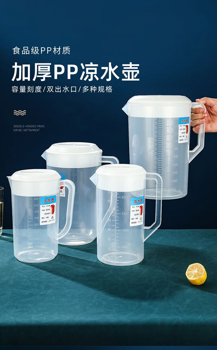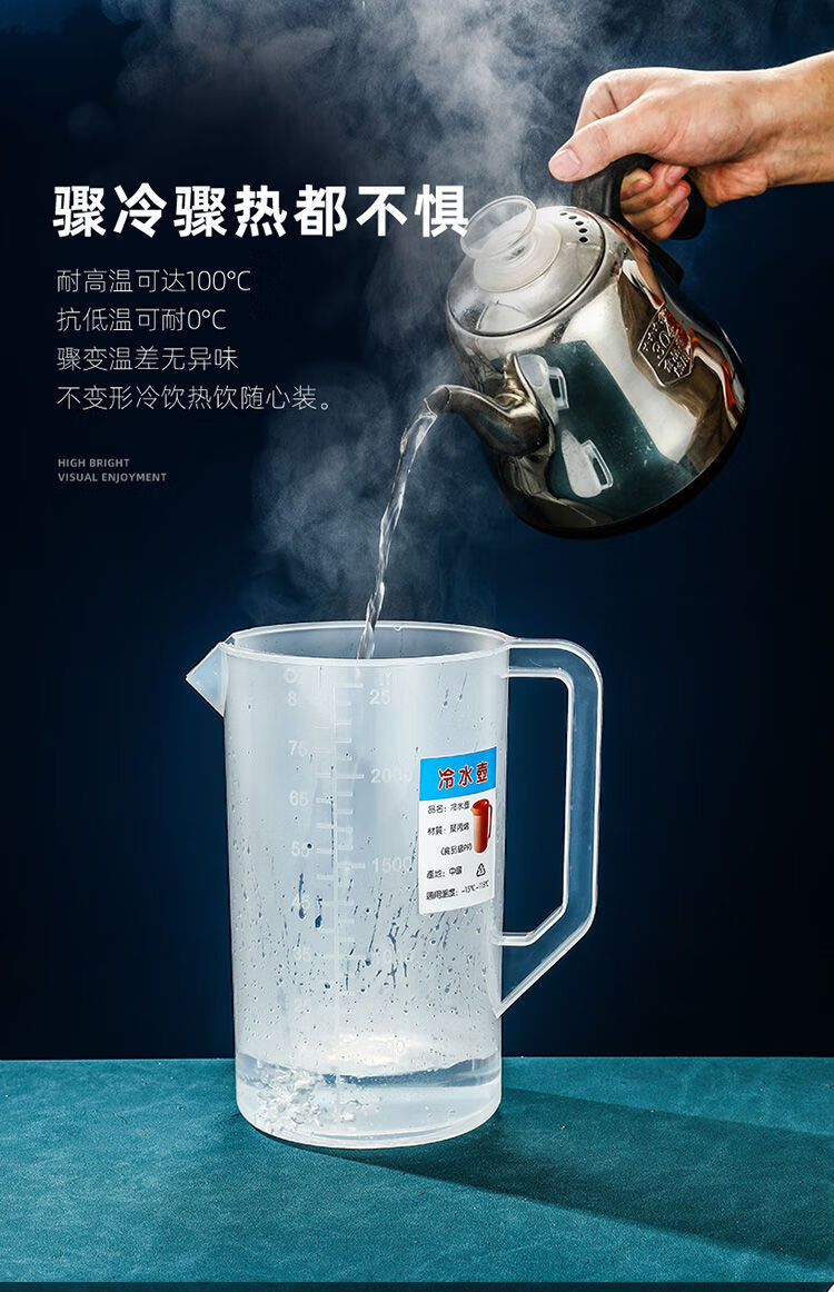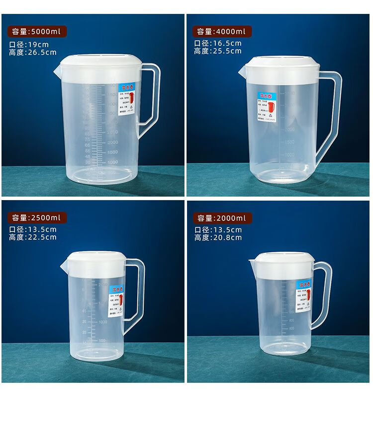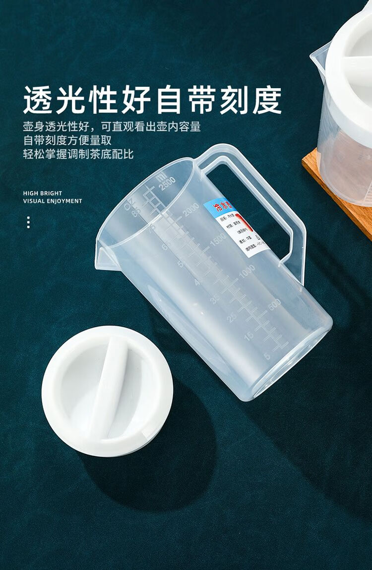 Chaosihui cold kettle large capacity kettle with scale cold kettle tea measuring barrel high temperature resistant plastic household milk tea shop kettle with lid + upgraded extra thick + 2000ml food grade pp5 1 pack