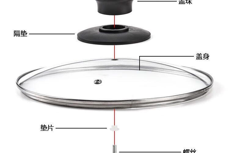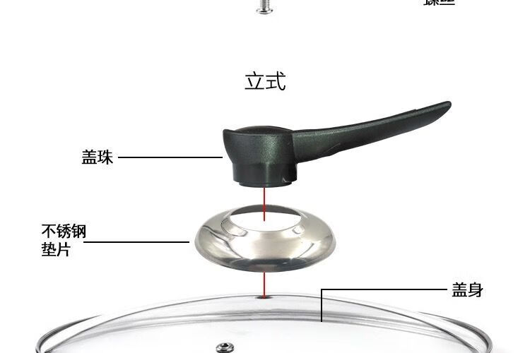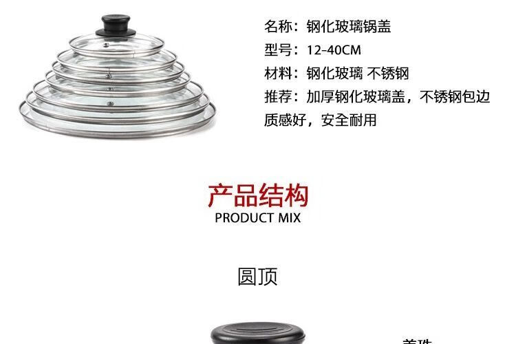 Chaosihui pot lid tempered glass lid stainless steel wok lid pan lid universal wok lid non-stick lid 40cm + round handle