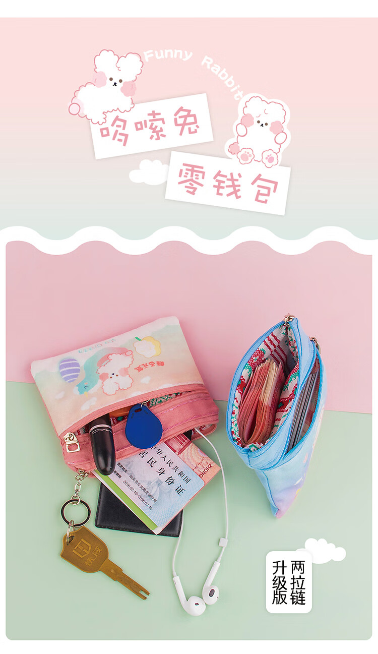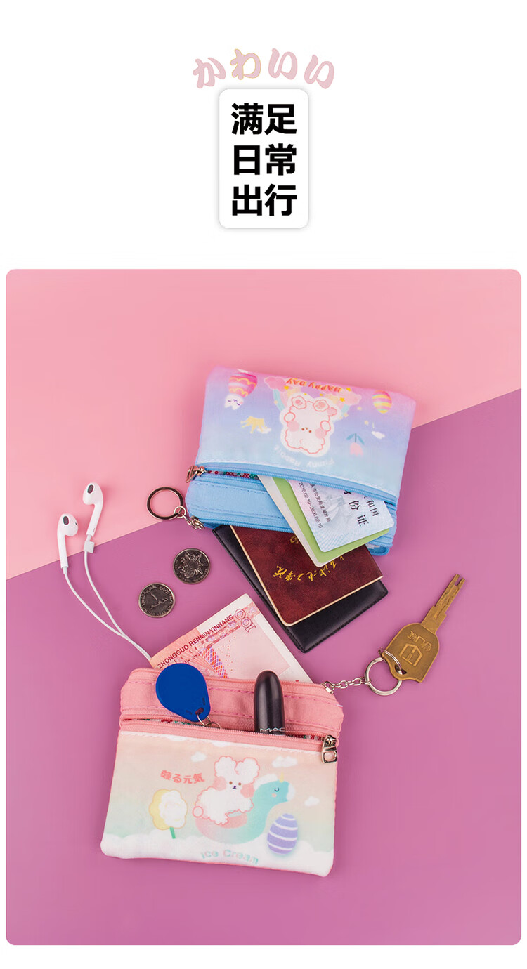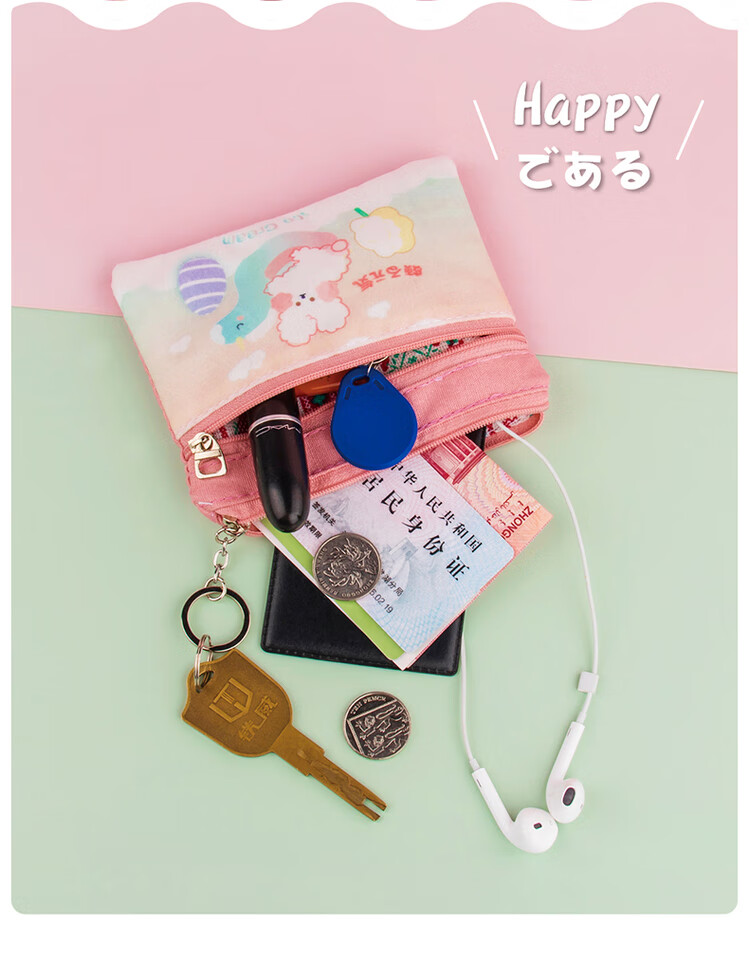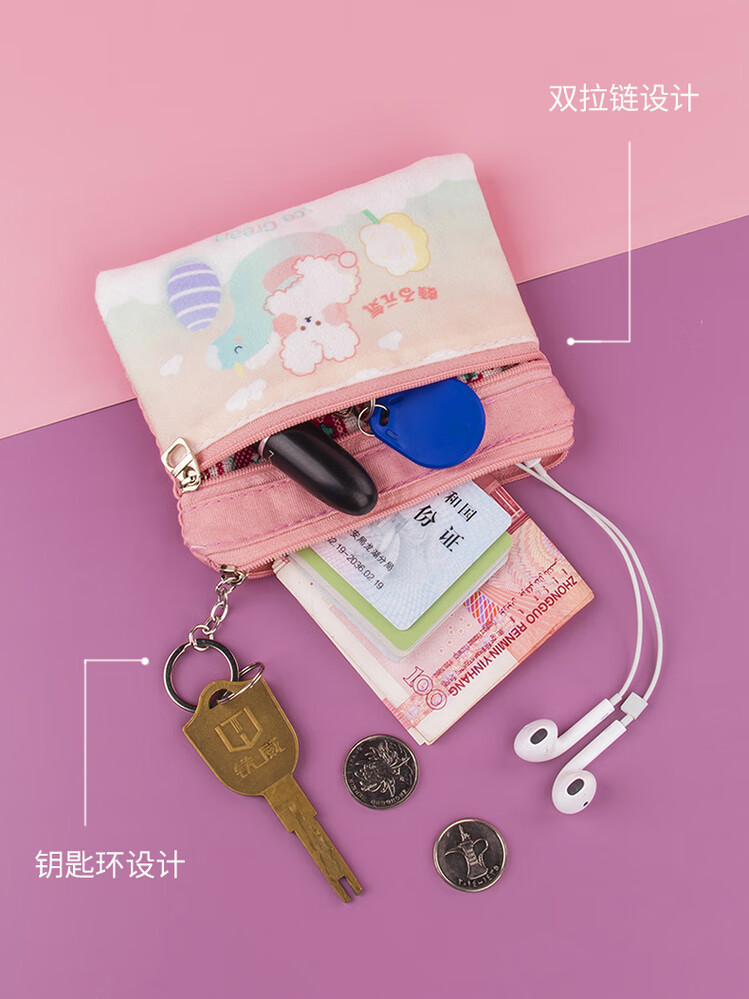 Kangaroo Mini Key Bag Coin Purse Women's Mini Simple Zipper Small Korean Style Student Cute Girl Heart Card Key Extra Large Double Zipper Pink Can Hold Mobile Phone