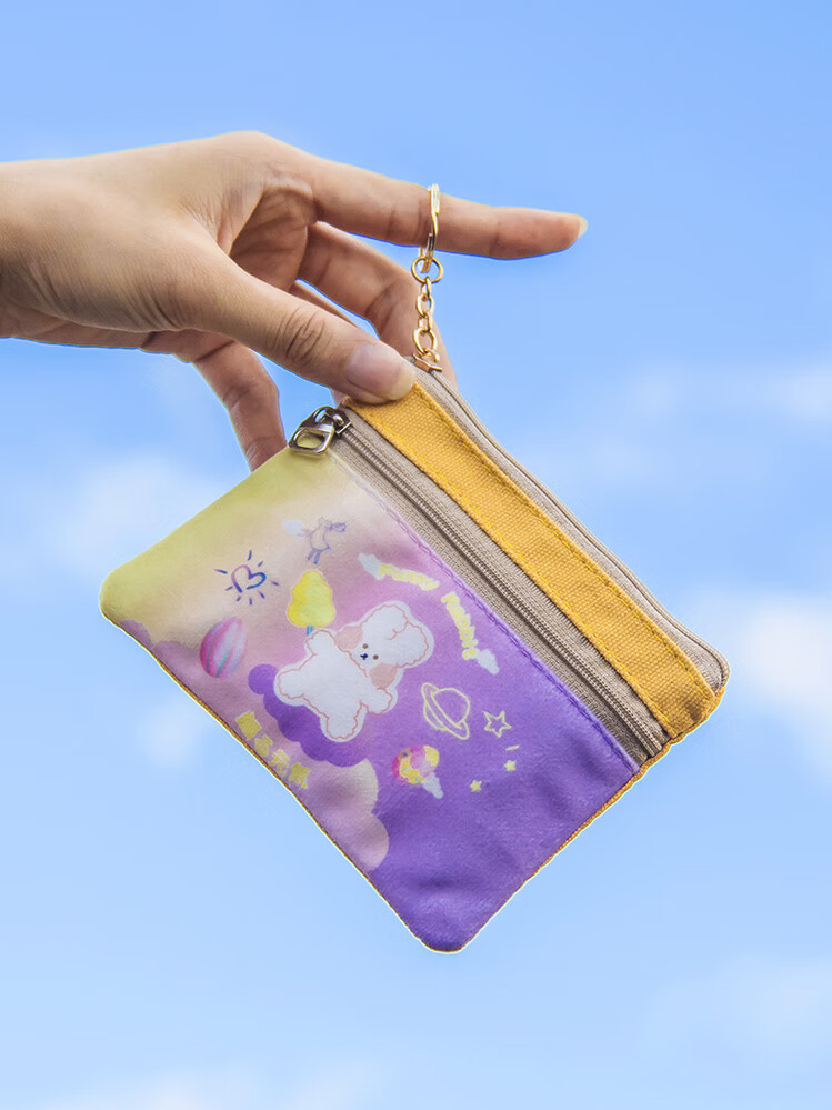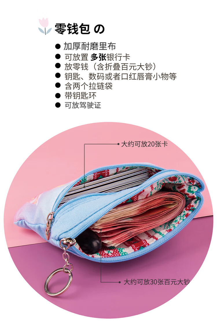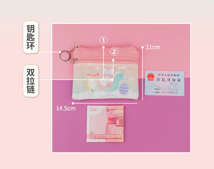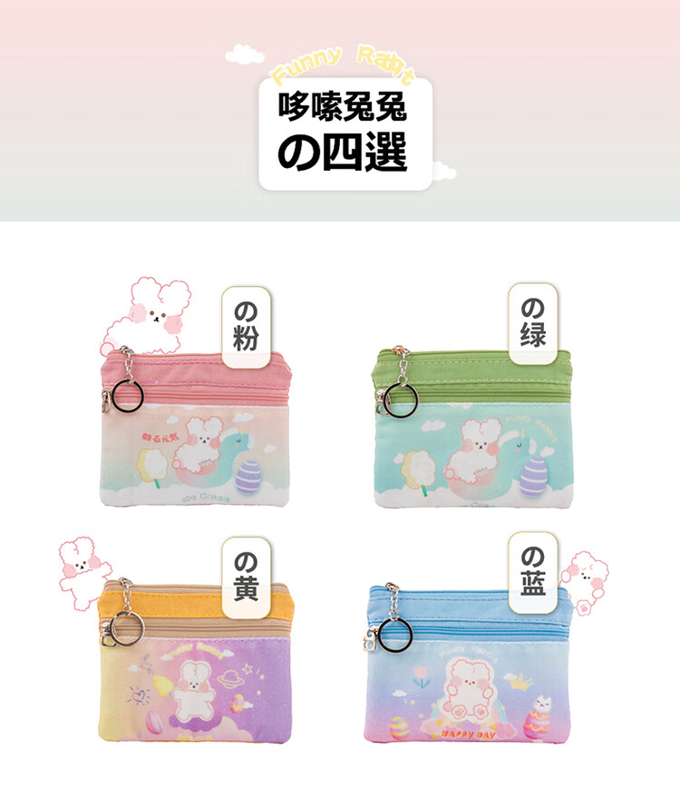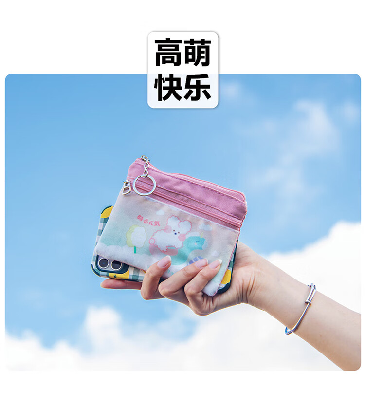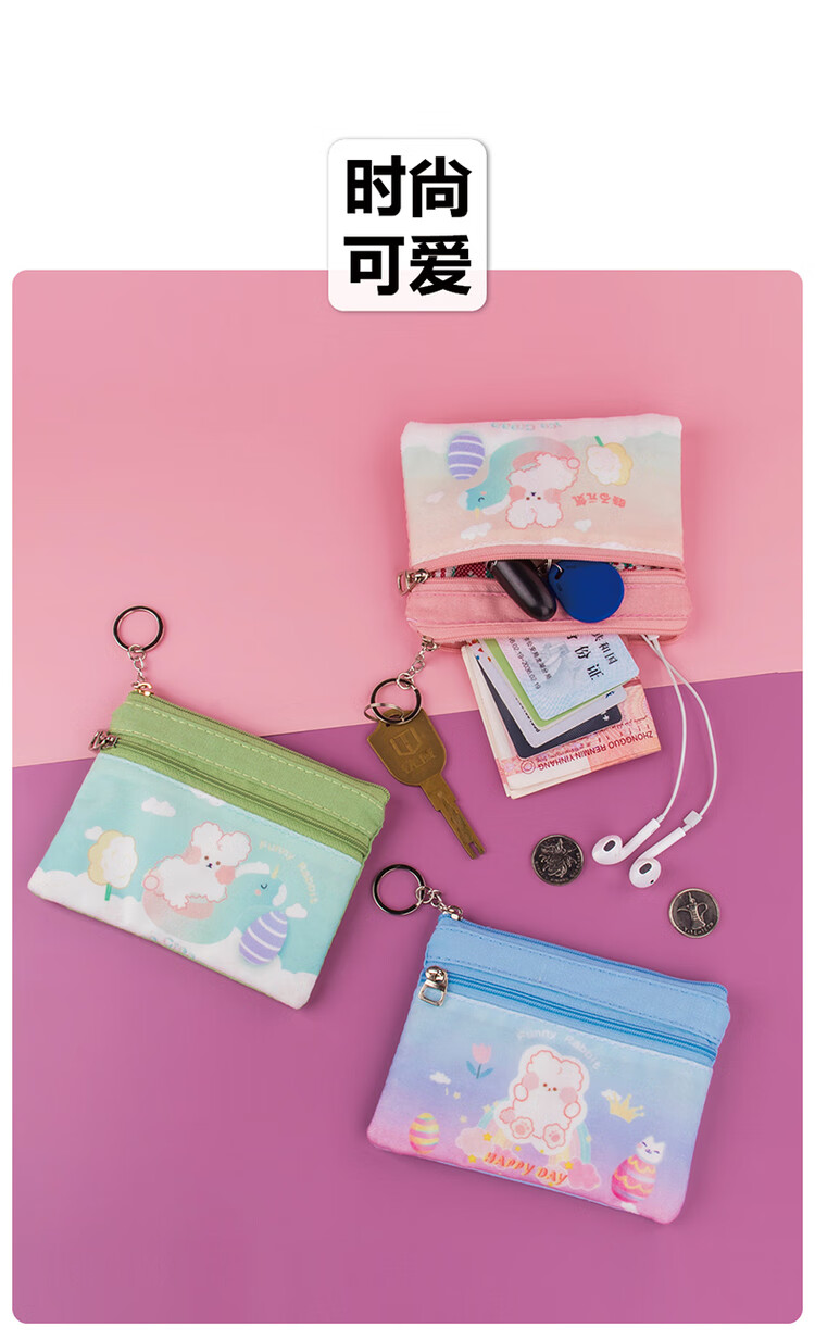 Kangaroo Mini Key Bag Coin Purse Women's Mini Simple Zipper Small Korean Style Student Cute Girl Heart Card Key Extra Large Double Zipper Pink Can Hold Mobile Phone