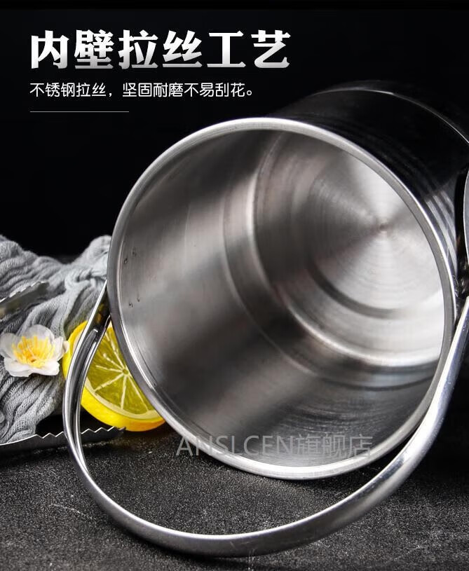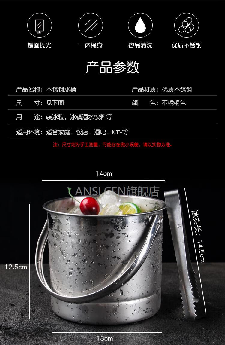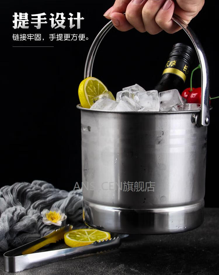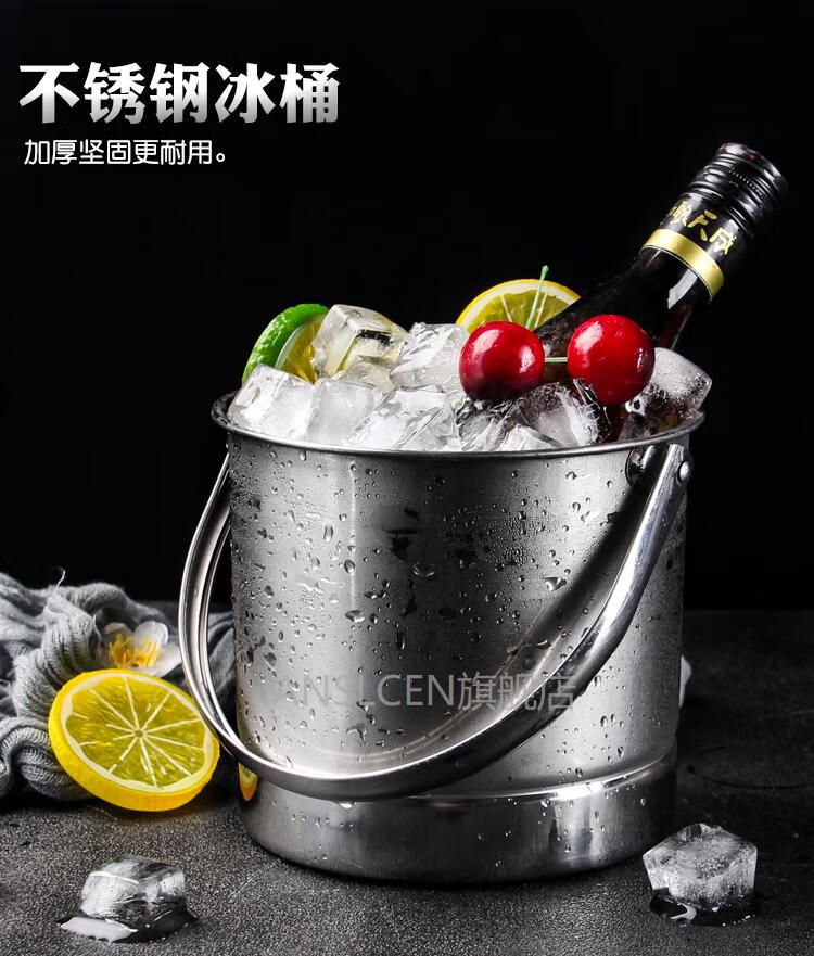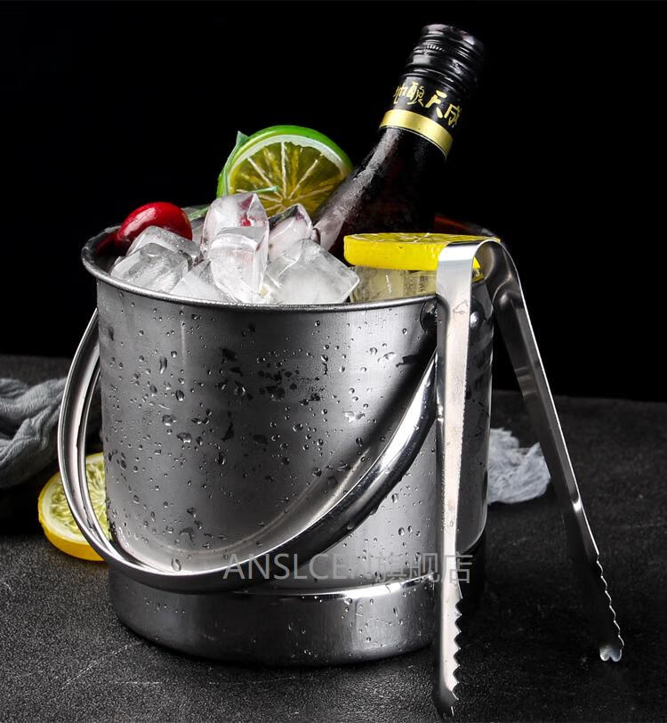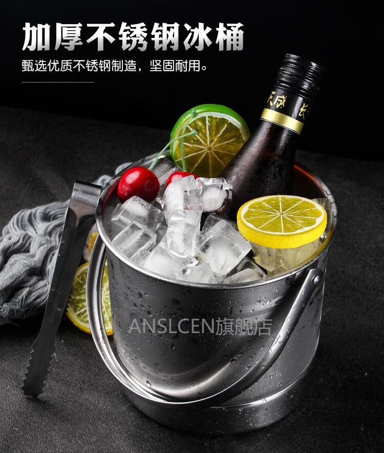 ANSLCEN Ice Cube KTV Stainless Steel Ice Bucket Bar Wine Bucket Nightclub Ice Bucket Portable Single-layer Bucket Champagne Bucket Ice Bucket + Ice Clamp
