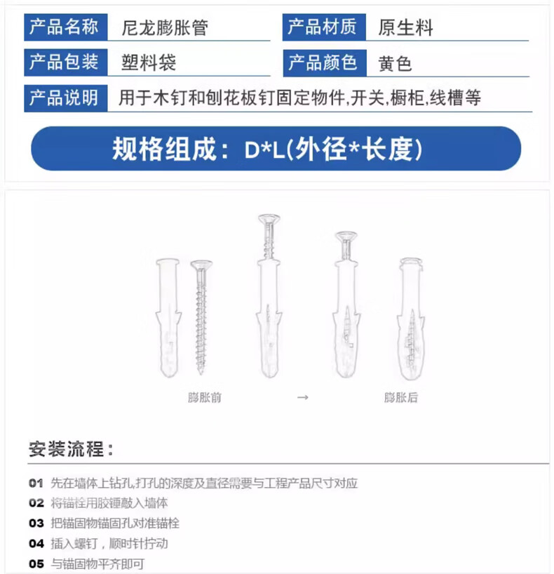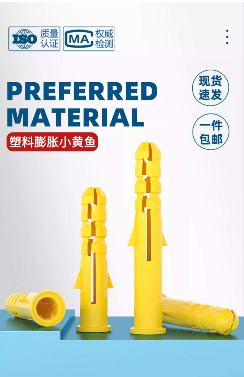 Tianzhuo Hardware national standard small yellow croaker plastic expansion pipe expansion screw rubber plug plastic pipe expansion plug anchor bolt collection M6M8M10M12 M6*30 (200 pieces) yellow single pipe