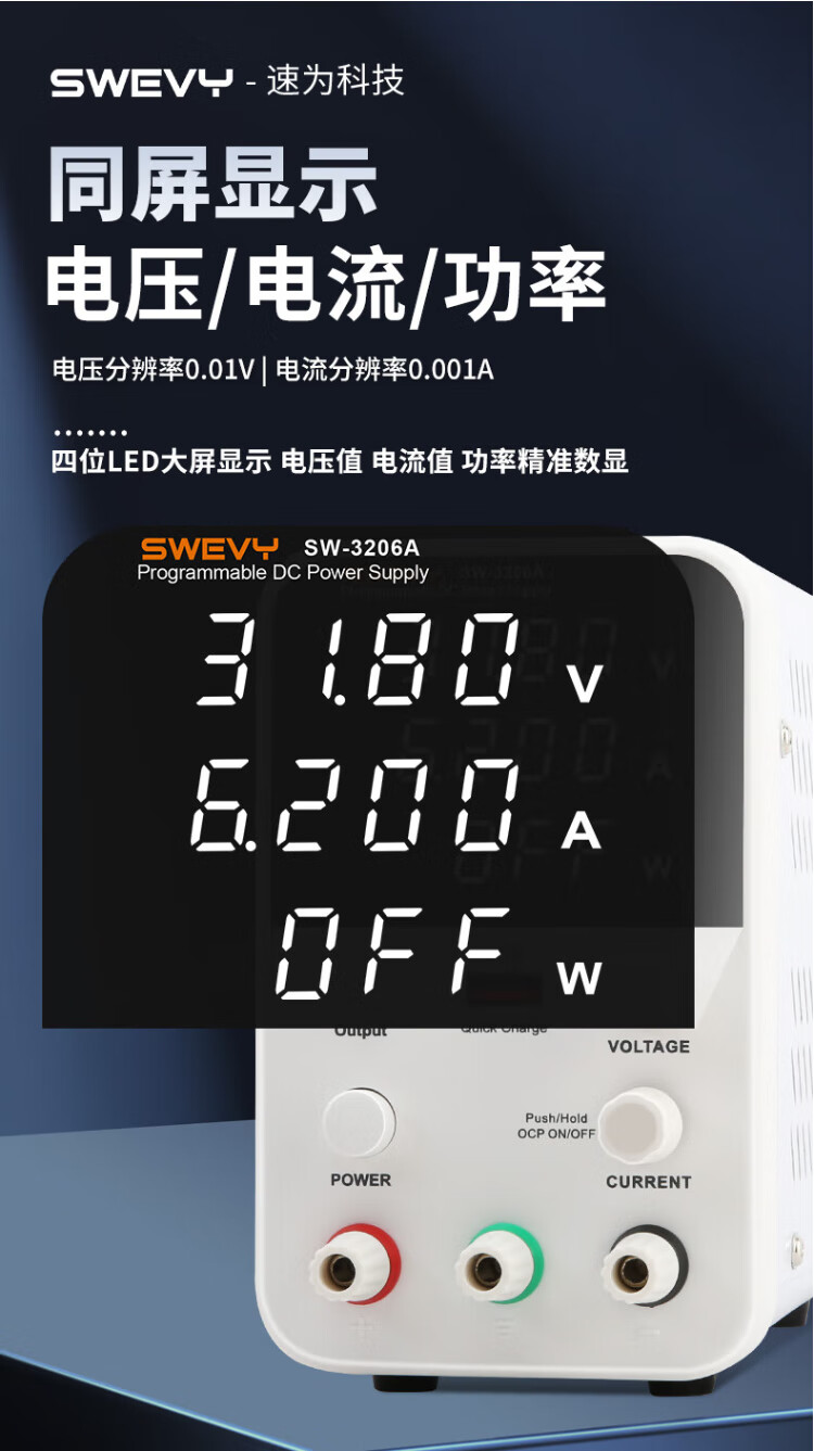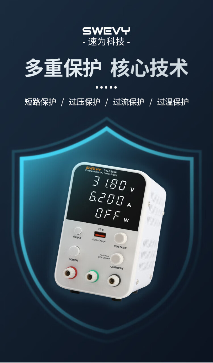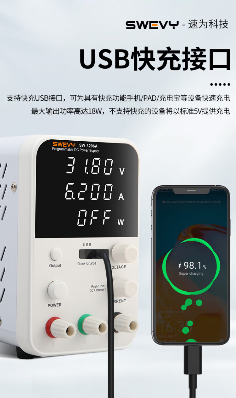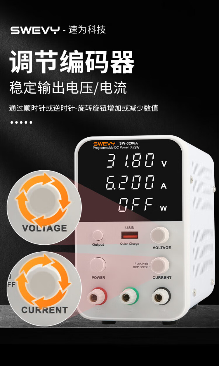Suwei adjustable power supply DC regulated power supply high-precision voltage regulator 32V6A computer mobile phone repair switching power supply SW3206A (with USB fast charging 32V6A)