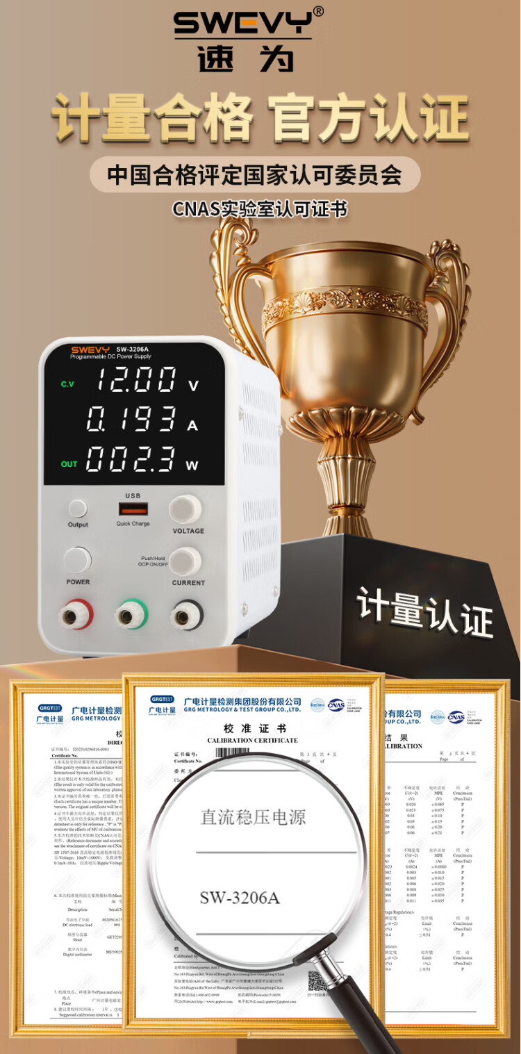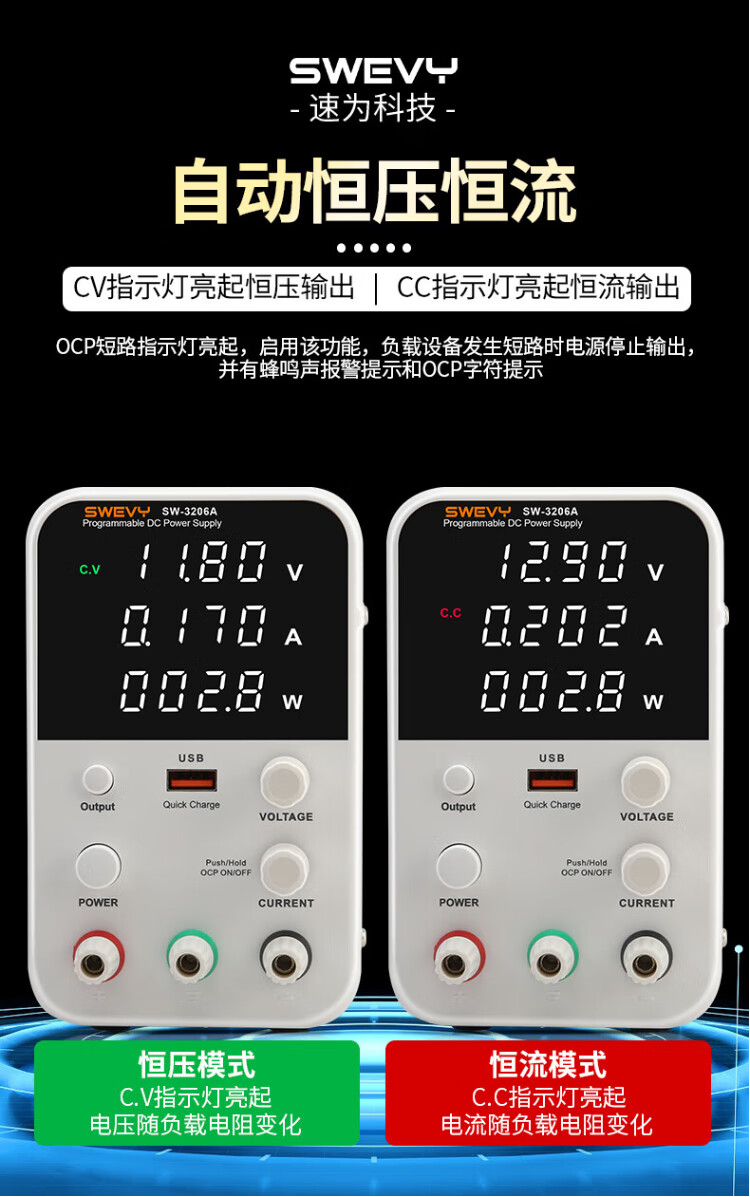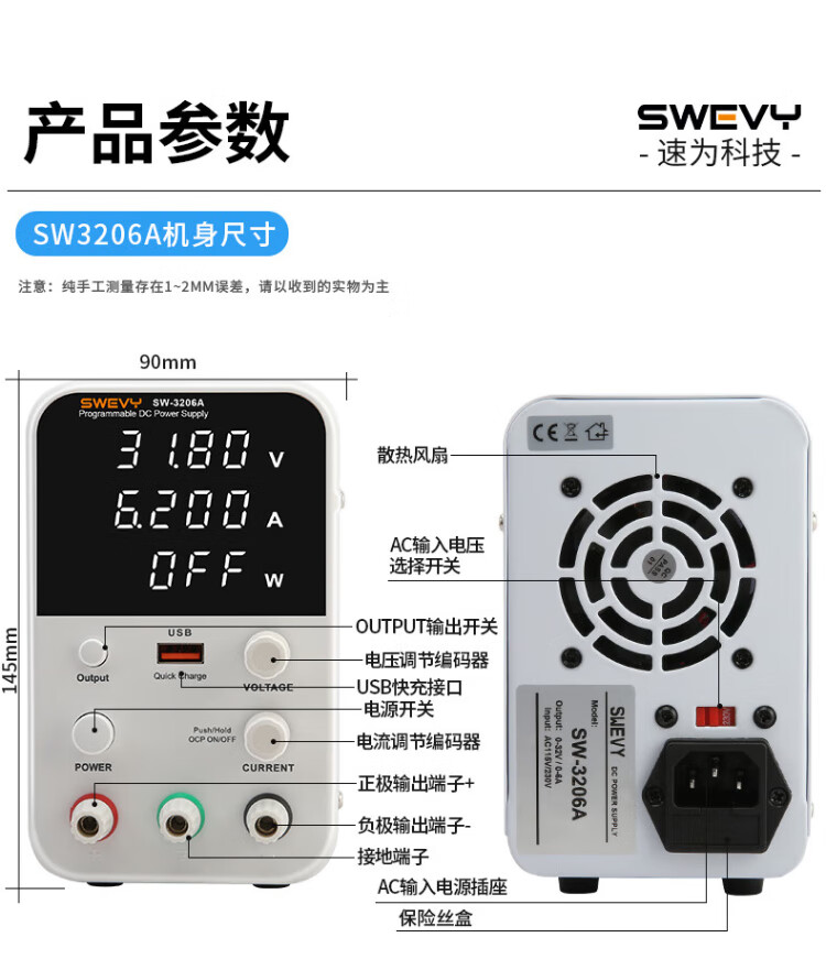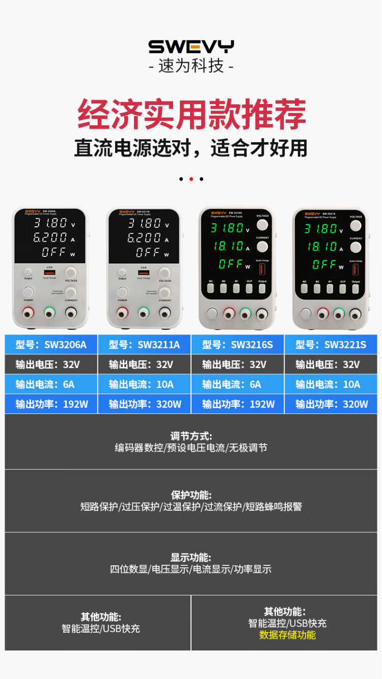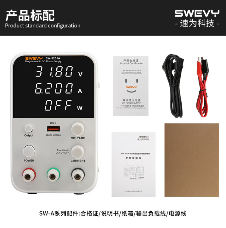 Suwei adjustable power supply DC regulated power supply high-precision voltage regulator 32V6A computer mobile phone repair switching power supply SW3206A (with USB fast charging 32V6A)