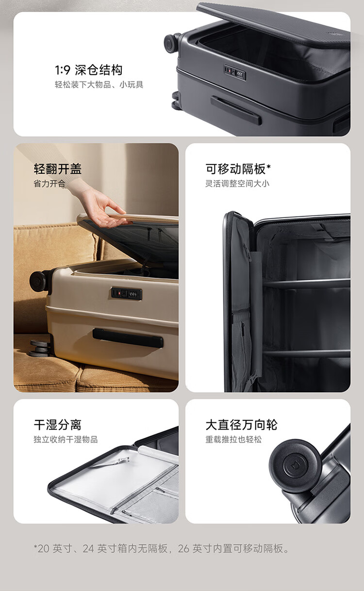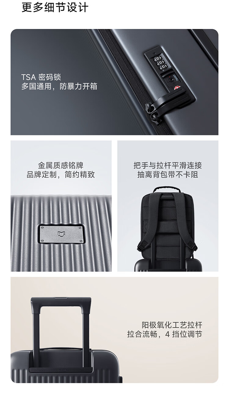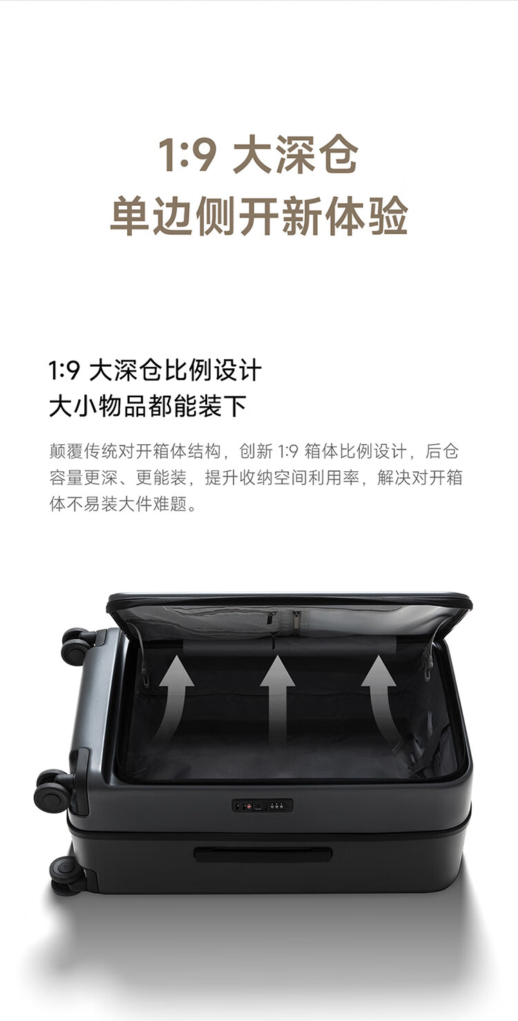 Xiaomi Mijia Side Flip Suitcase PC Case TSA Code Lock Trolley Case Men's and Women's Travel Suitcase Can Boarding Side Flip Suitcase - Carbon Black 20 inches