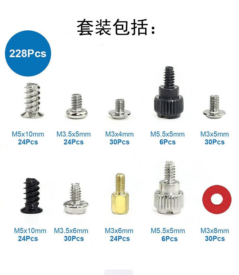 Weici Desktop Computer Host Installation Screw Set DIY Chassis Motherboard Optical Drive Mechanical Hard Drive Power Supply Fan Screw Host Screw Set 228PCS Desktop Computer Laptop Installation Repair Screw Kit