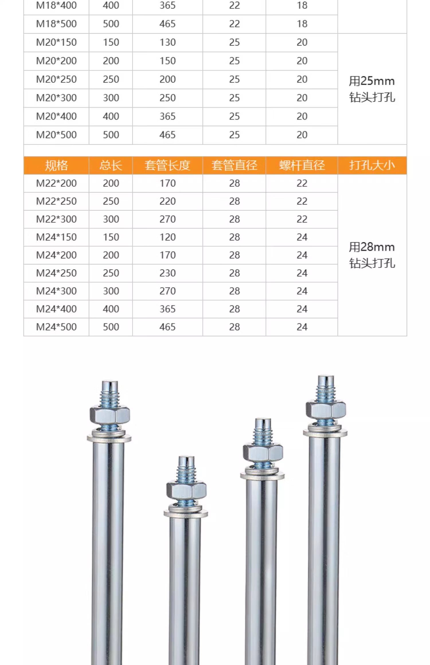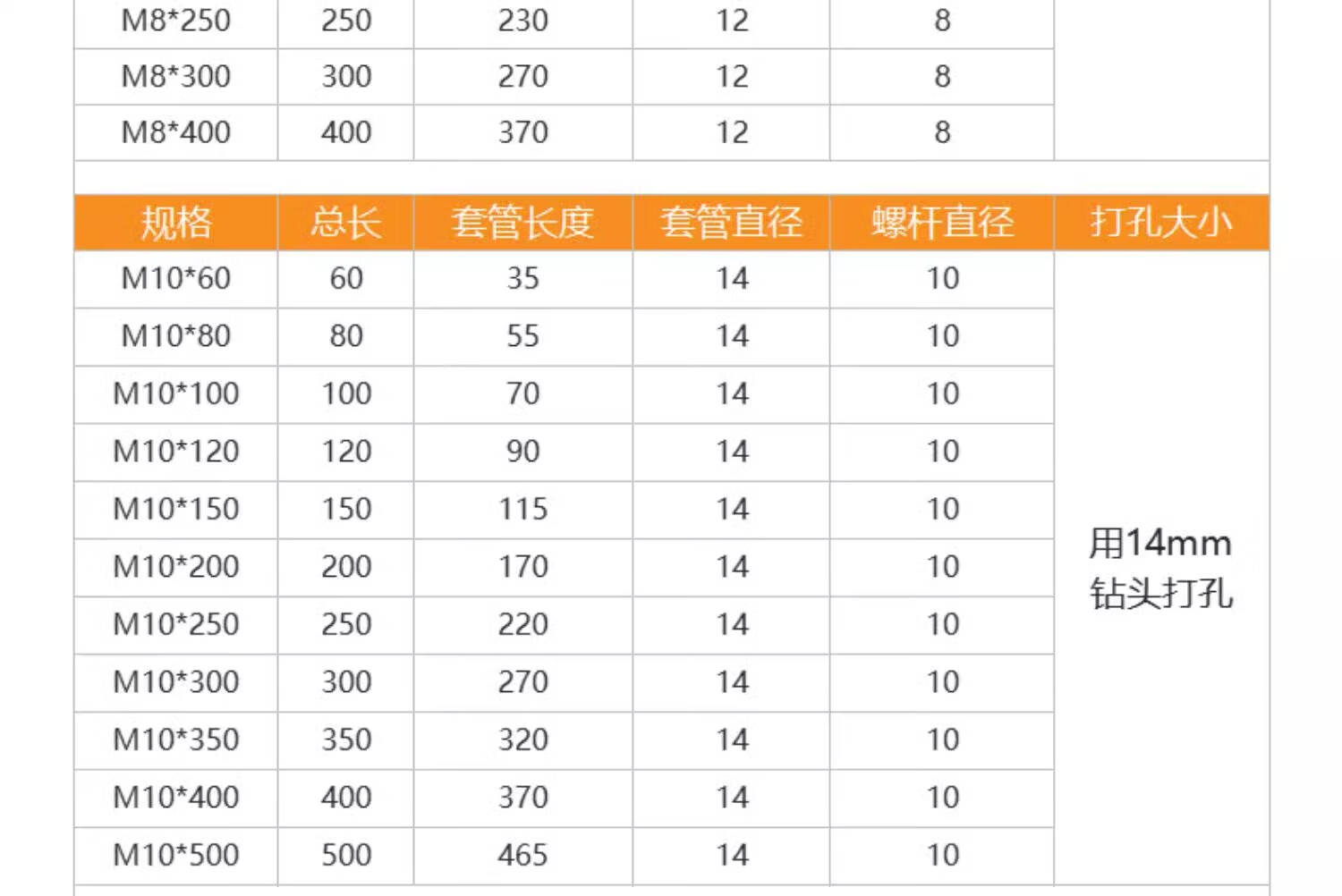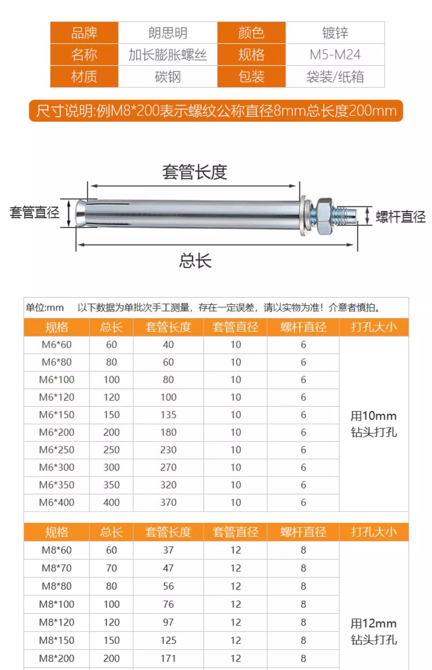 Langsiming expansion screw extra long extension bolt M6M8M10M12M14M16*200x250x300x350x400 M10*500 (2 pieces)