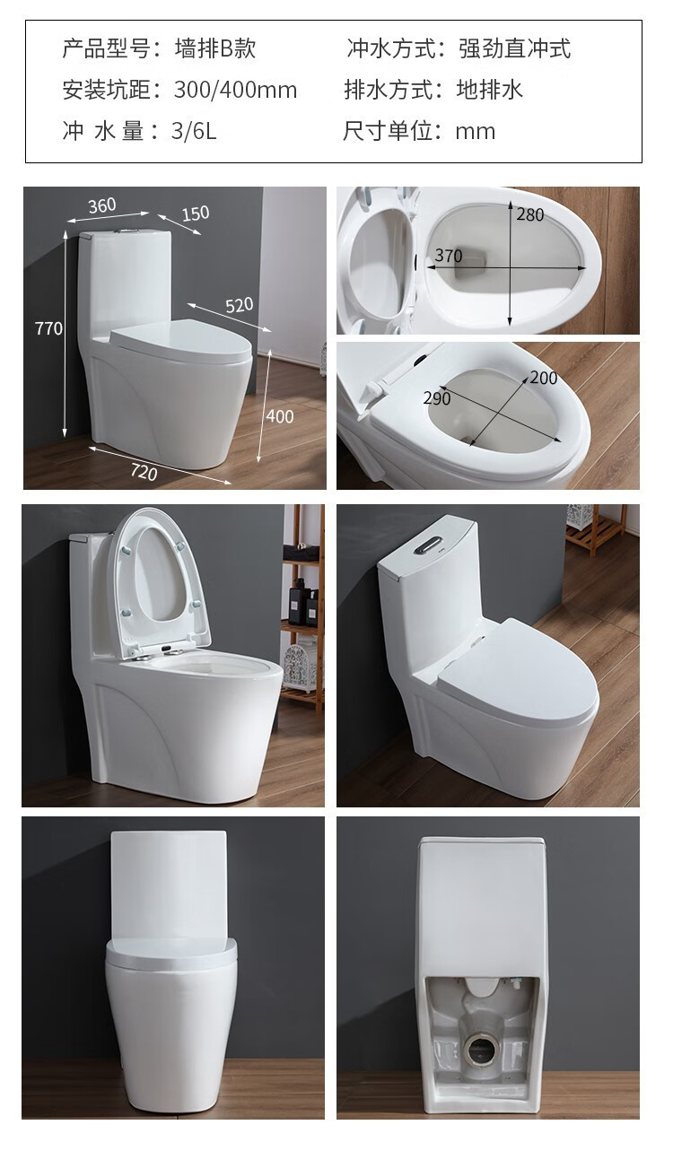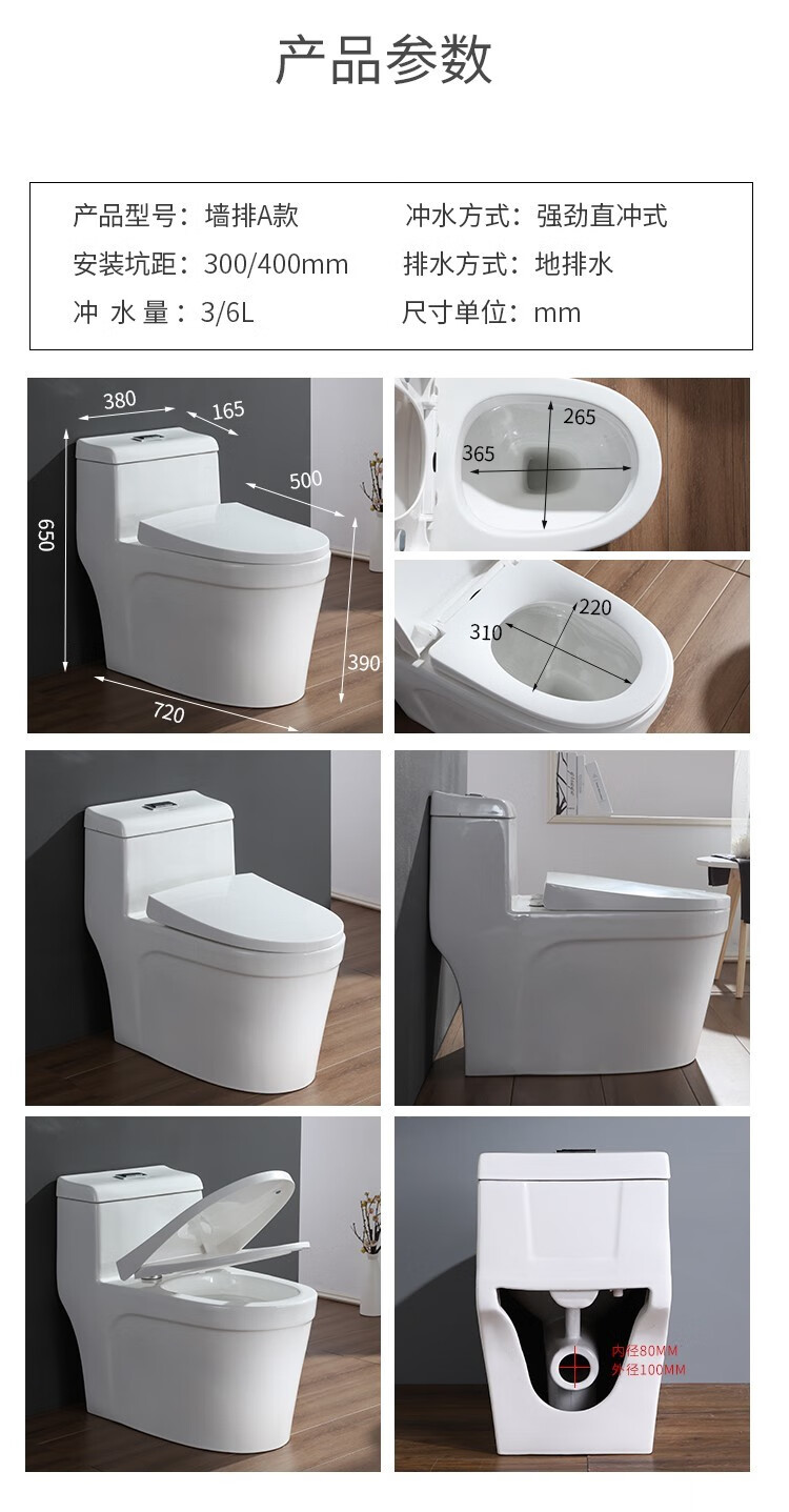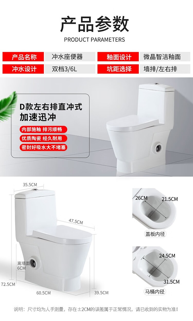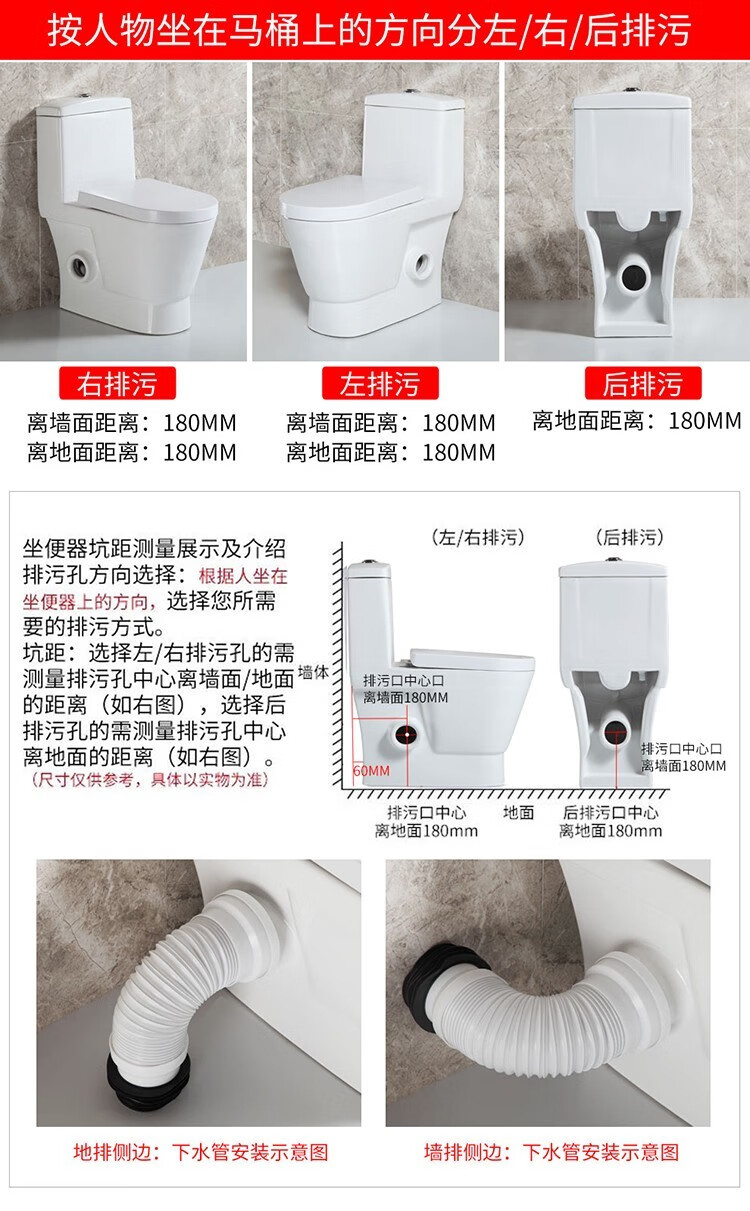 Wall row toilet household left and right drainage rear row horizontal row side row direct flush toilet anti-large diameter toilet traditional small house right drainage free sewage pipe other/other