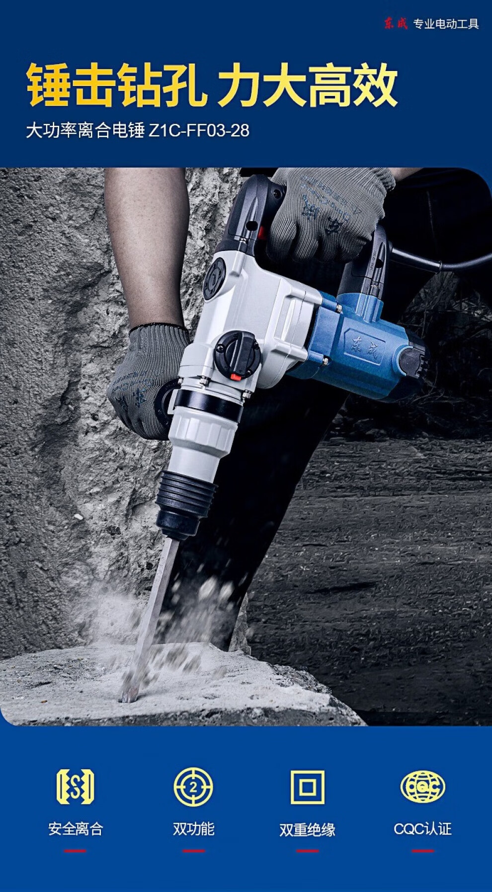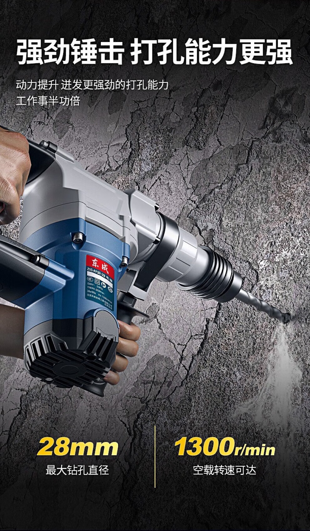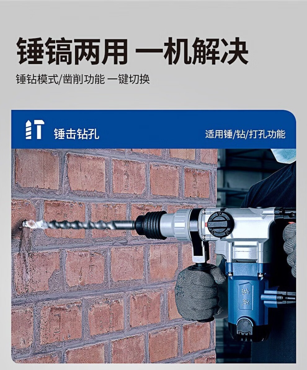 Dongcheng electric hammer electric pick dual-use high-power impact drill household concrete drilling multi-functional hammer drill single-use dual-use electric hammer FF06-28B Package 2