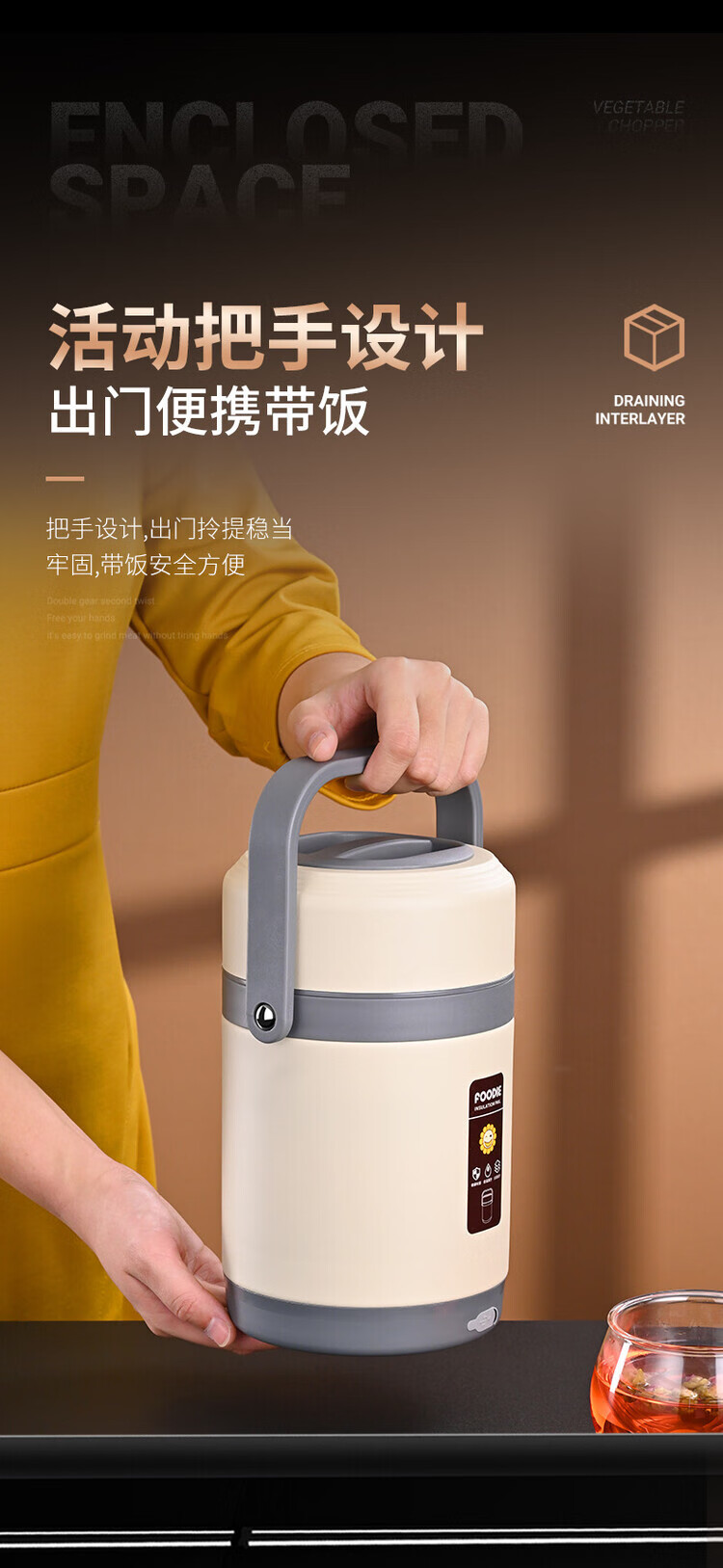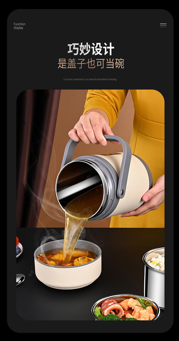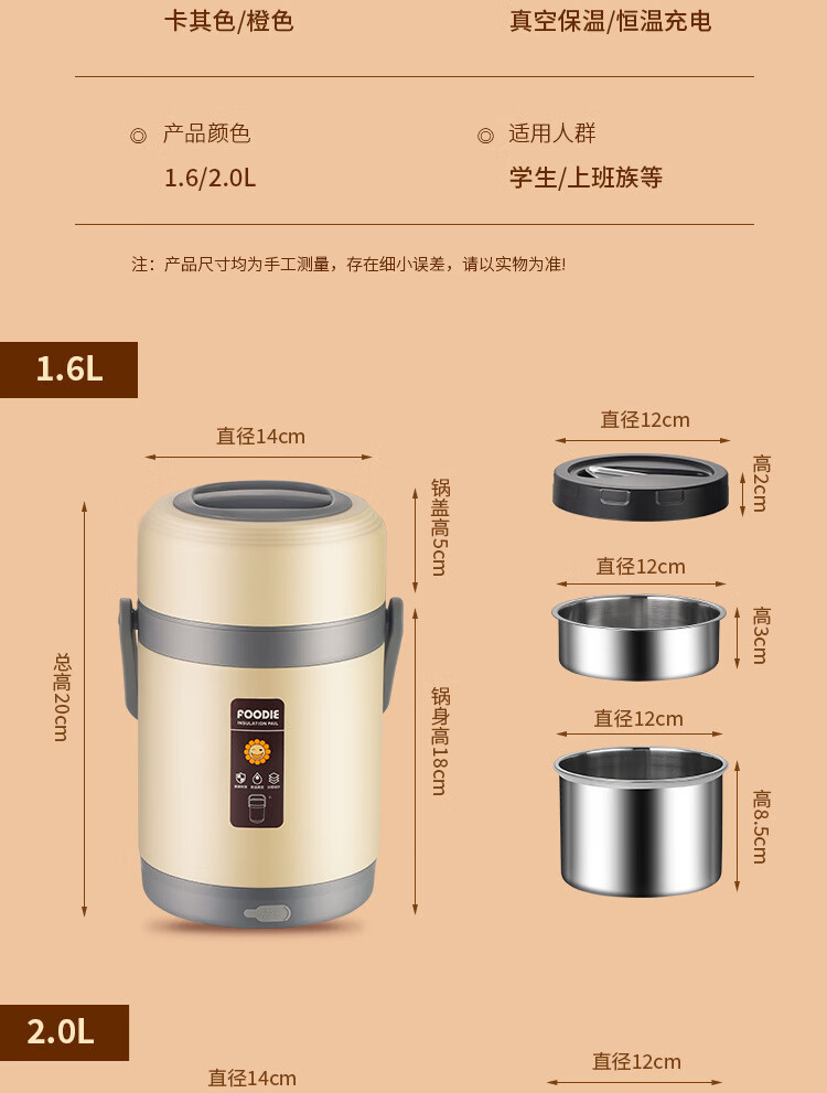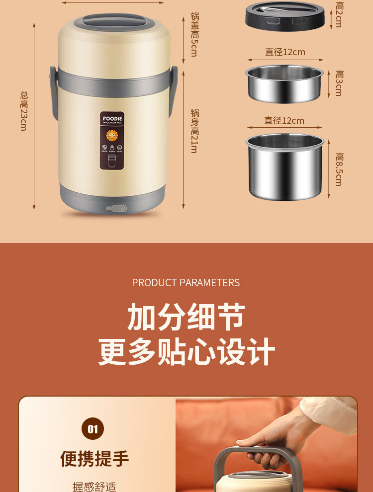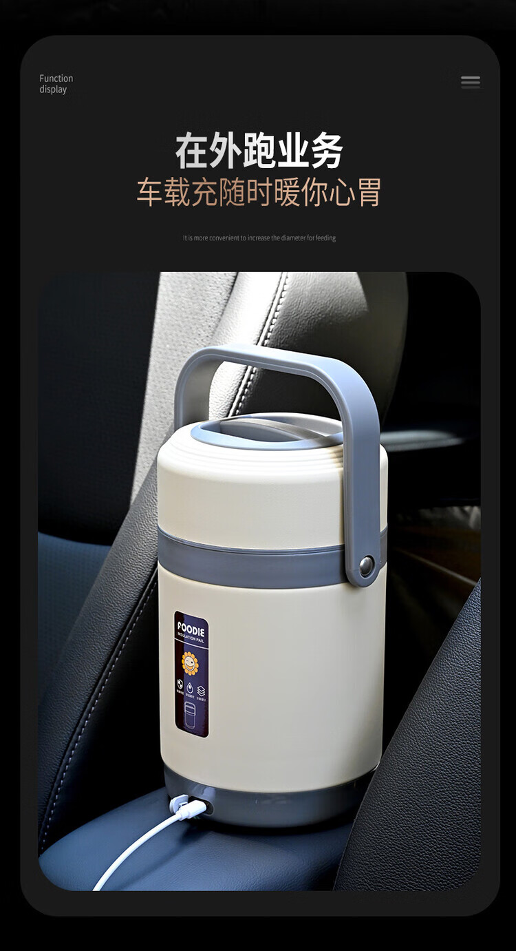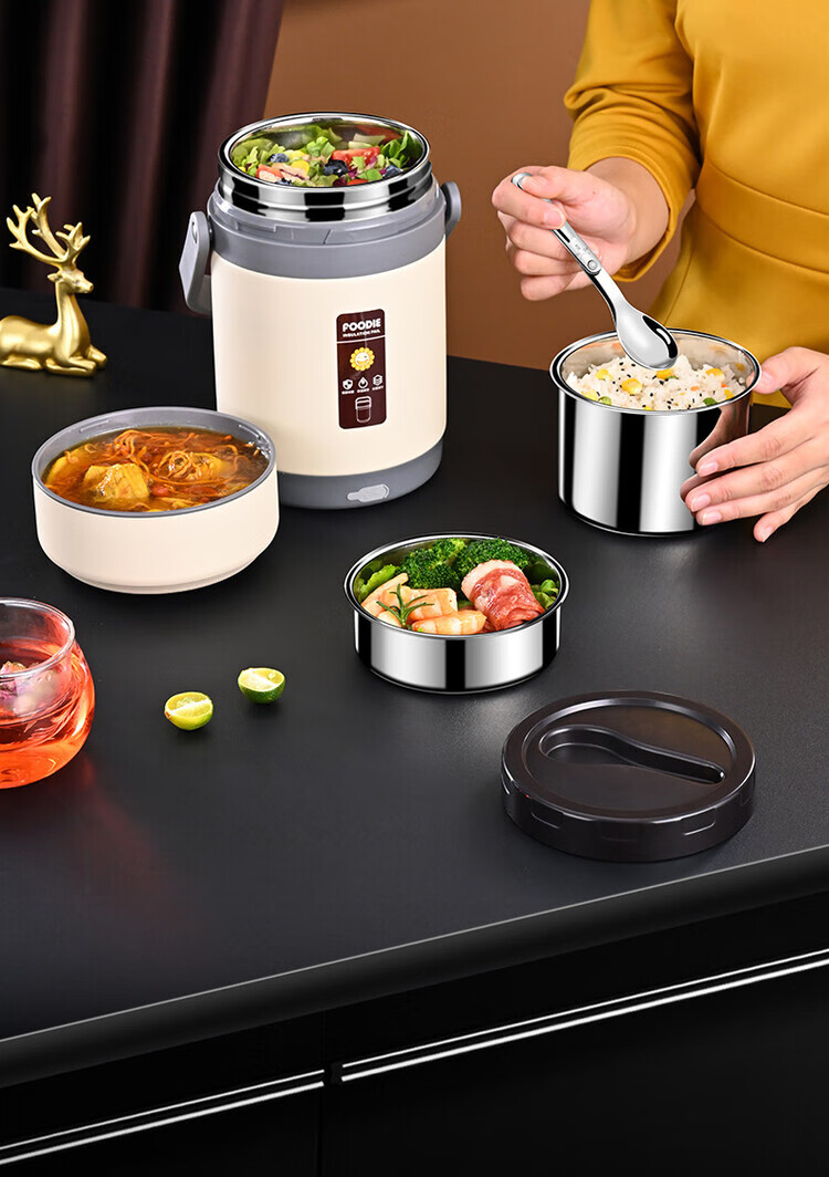 Lebo buckle insulated lunch box 24-hour extra long rechargeable heating office worker high school student three-layer rice bucket pot stainless steel plug-in insulation + insulation bag + plug cord 3 layers 2L