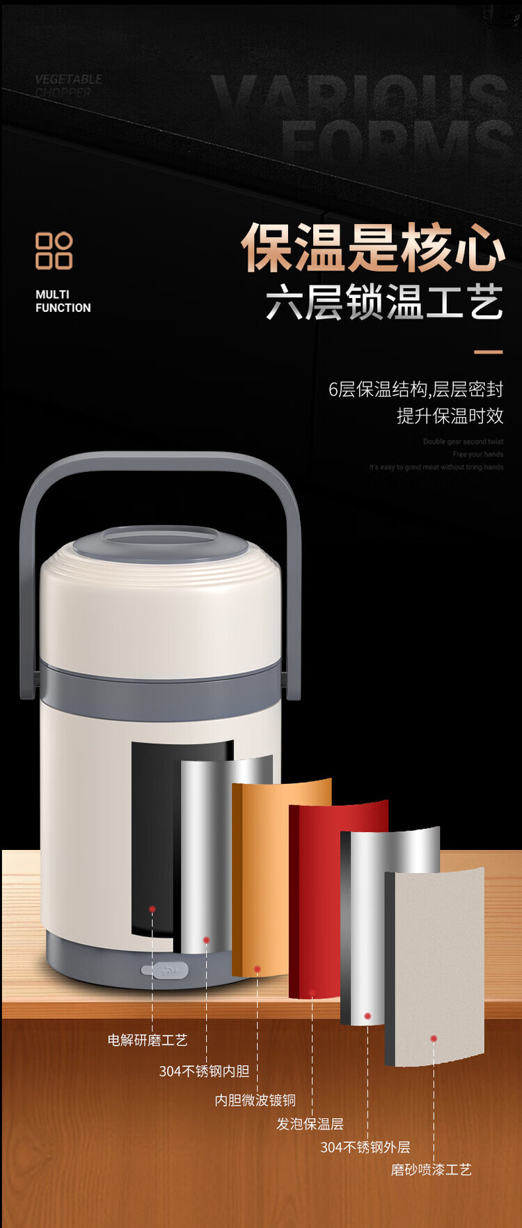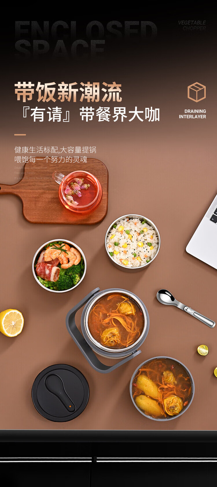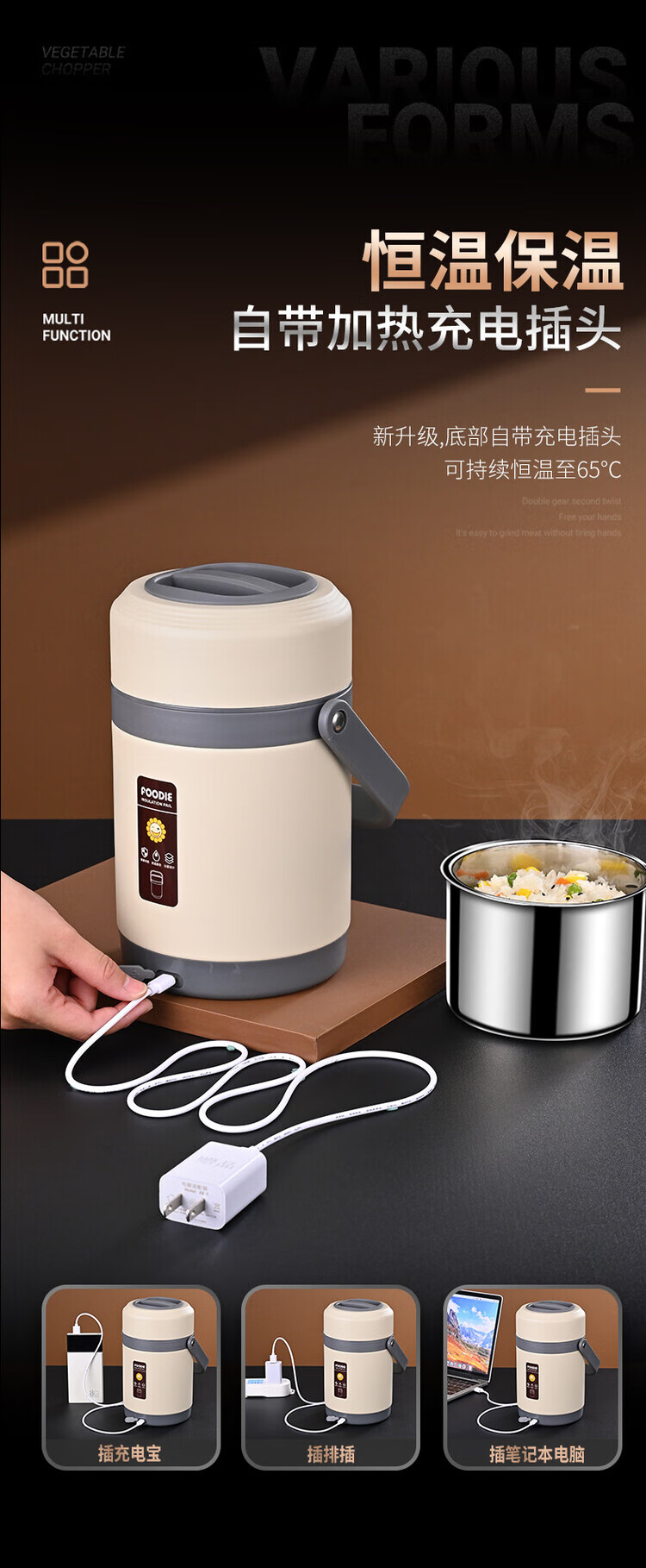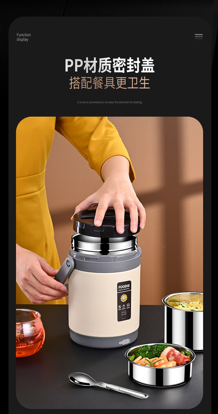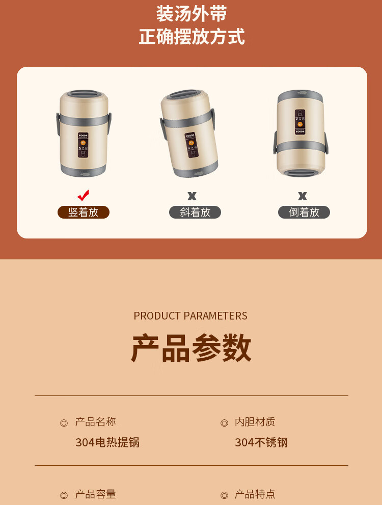 Lebo buckle insulated lunch box 24-hour extra long rechargeable heating office worker high school student three-layer rice bucket pot stainless steel plug-in insulation + insulation bag + plug cord 3 layers 2L