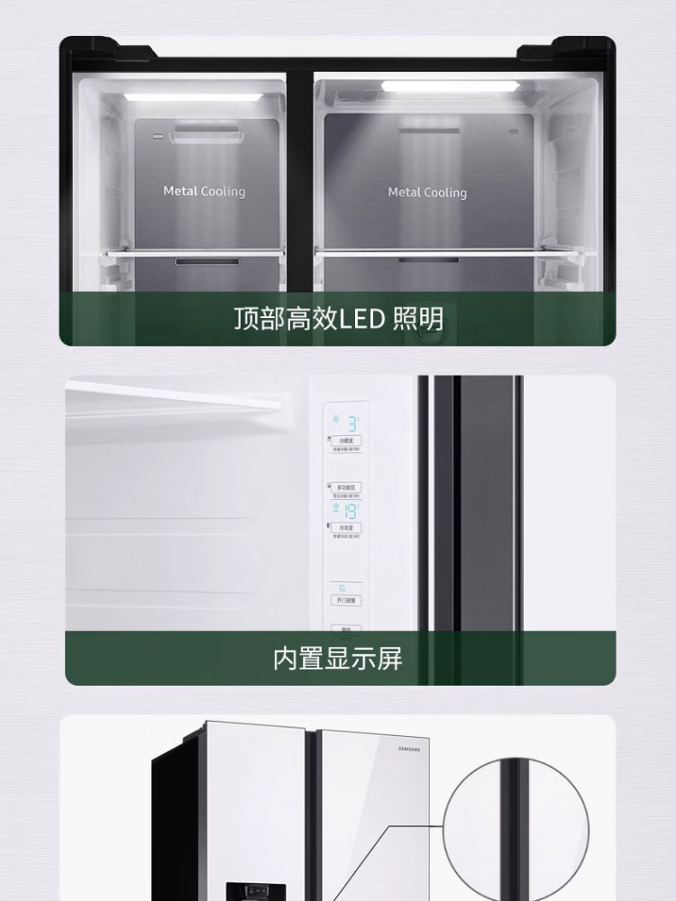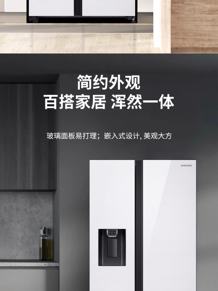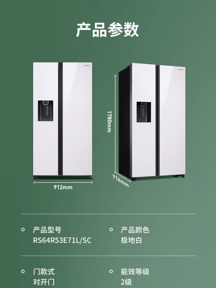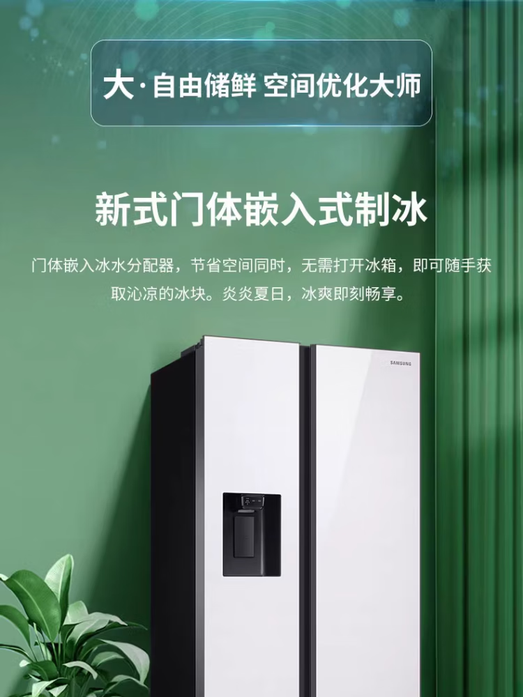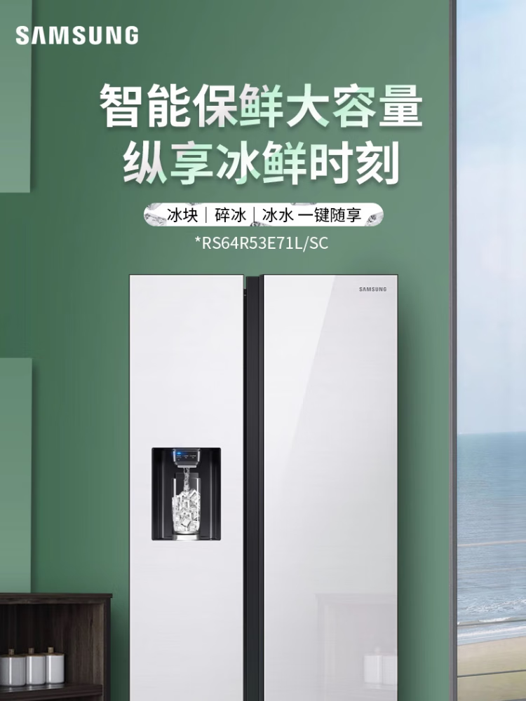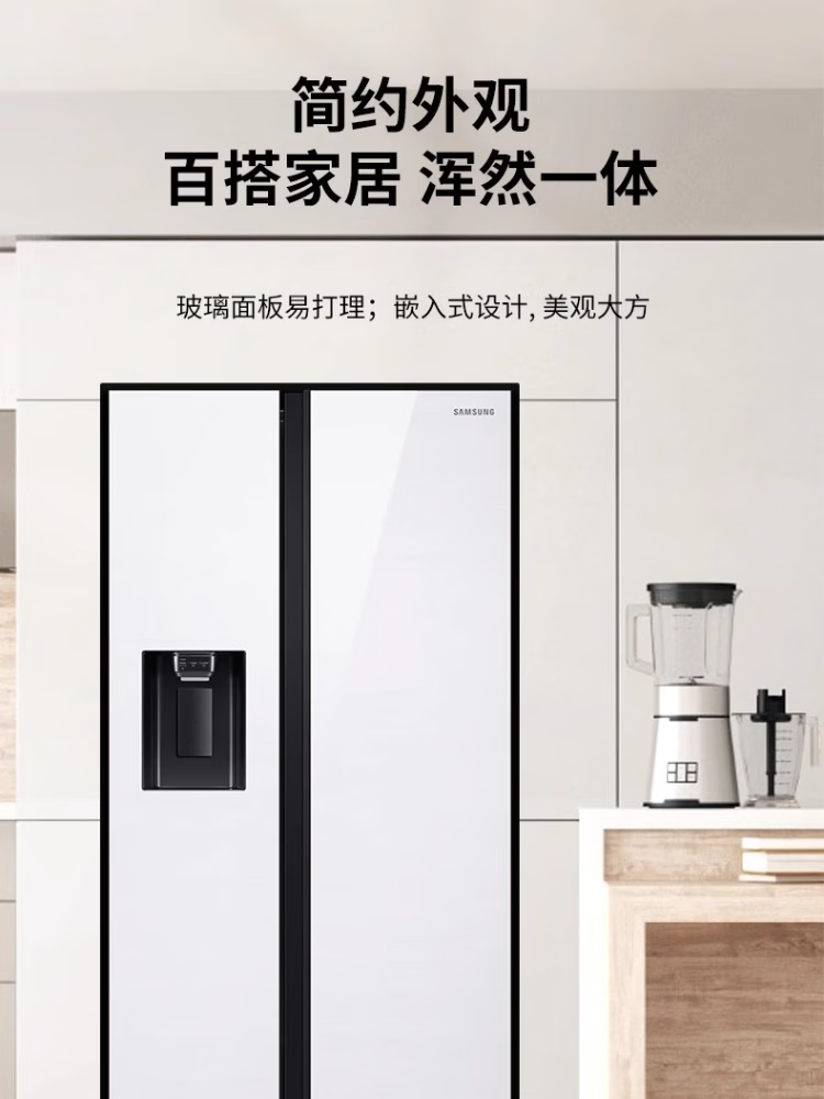 Samsung Large Capacity Automatic Ice Maker Side-by-Door Refrigerator Full Surround Airflow Intelligent Frequency Conversion Tempered Glass Panel RS64R53E71L/SC 635L White