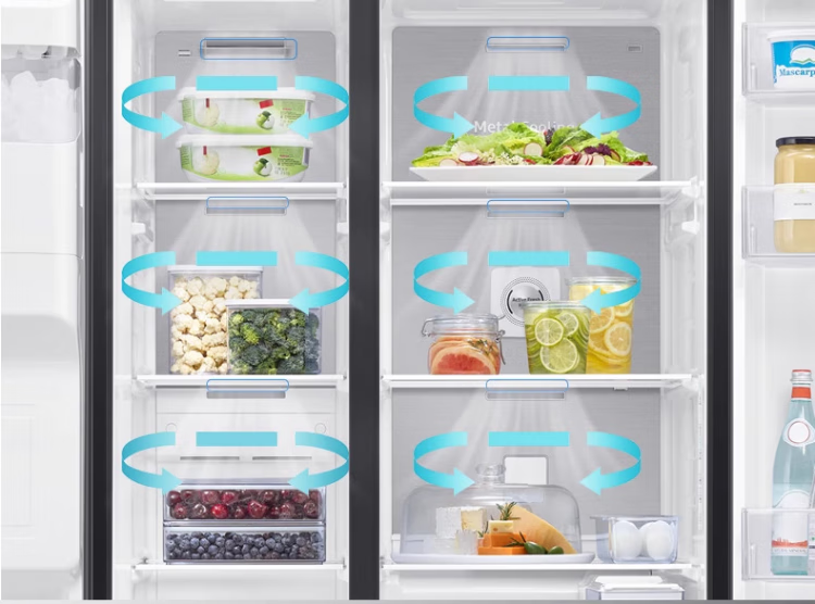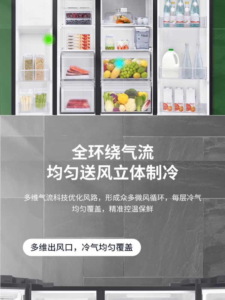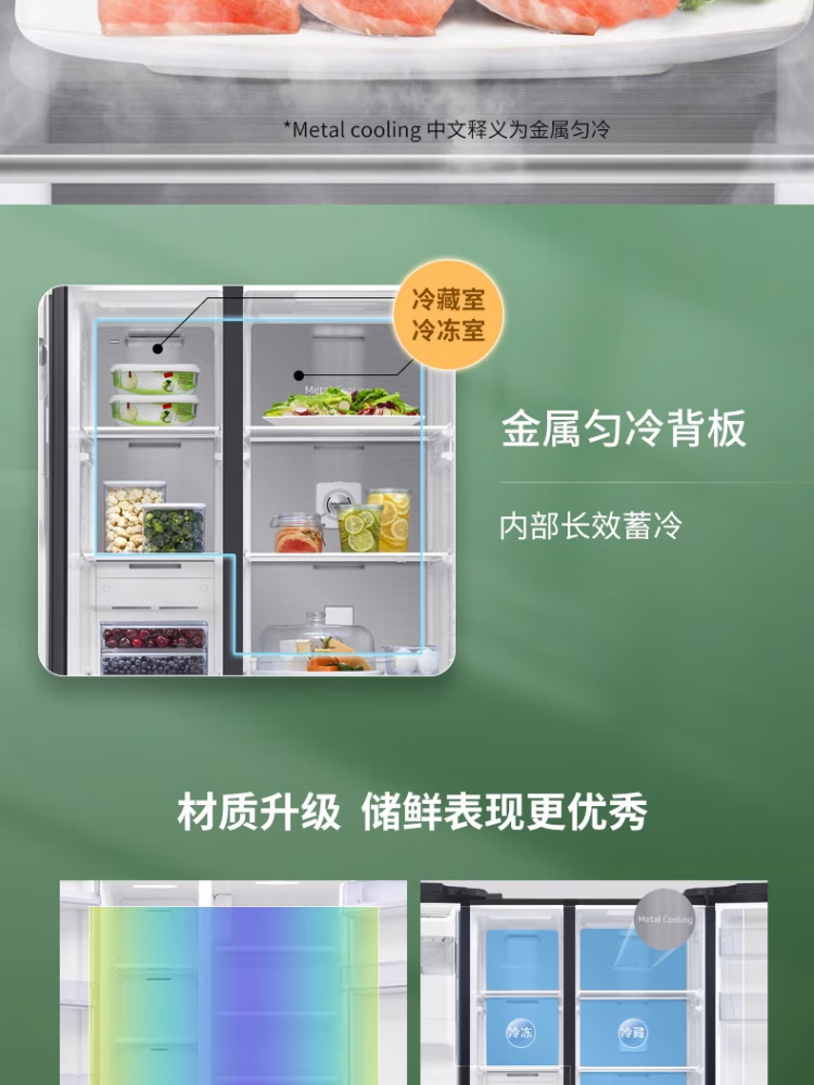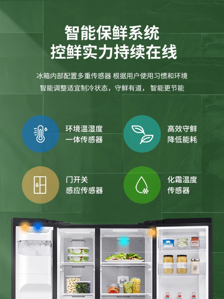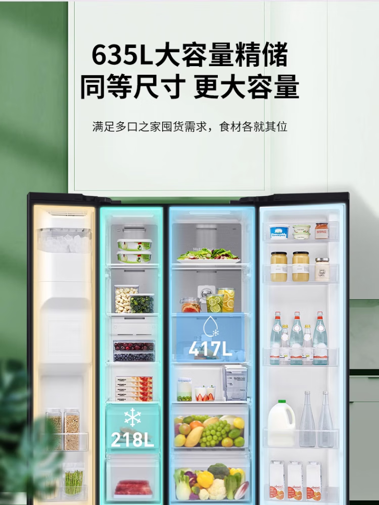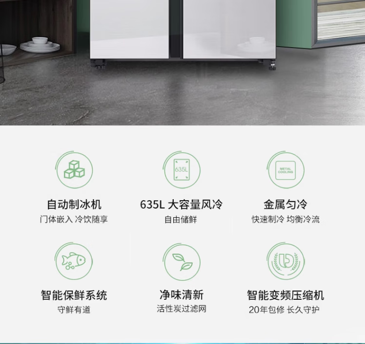 Samsung Large Capacity Automatic Ice Maker Side-by-Door Refrigerator Full Surround Airflow Intelligent Frequency Conversion Tempered Glass Panel RS64R53E71L/SC 635L White