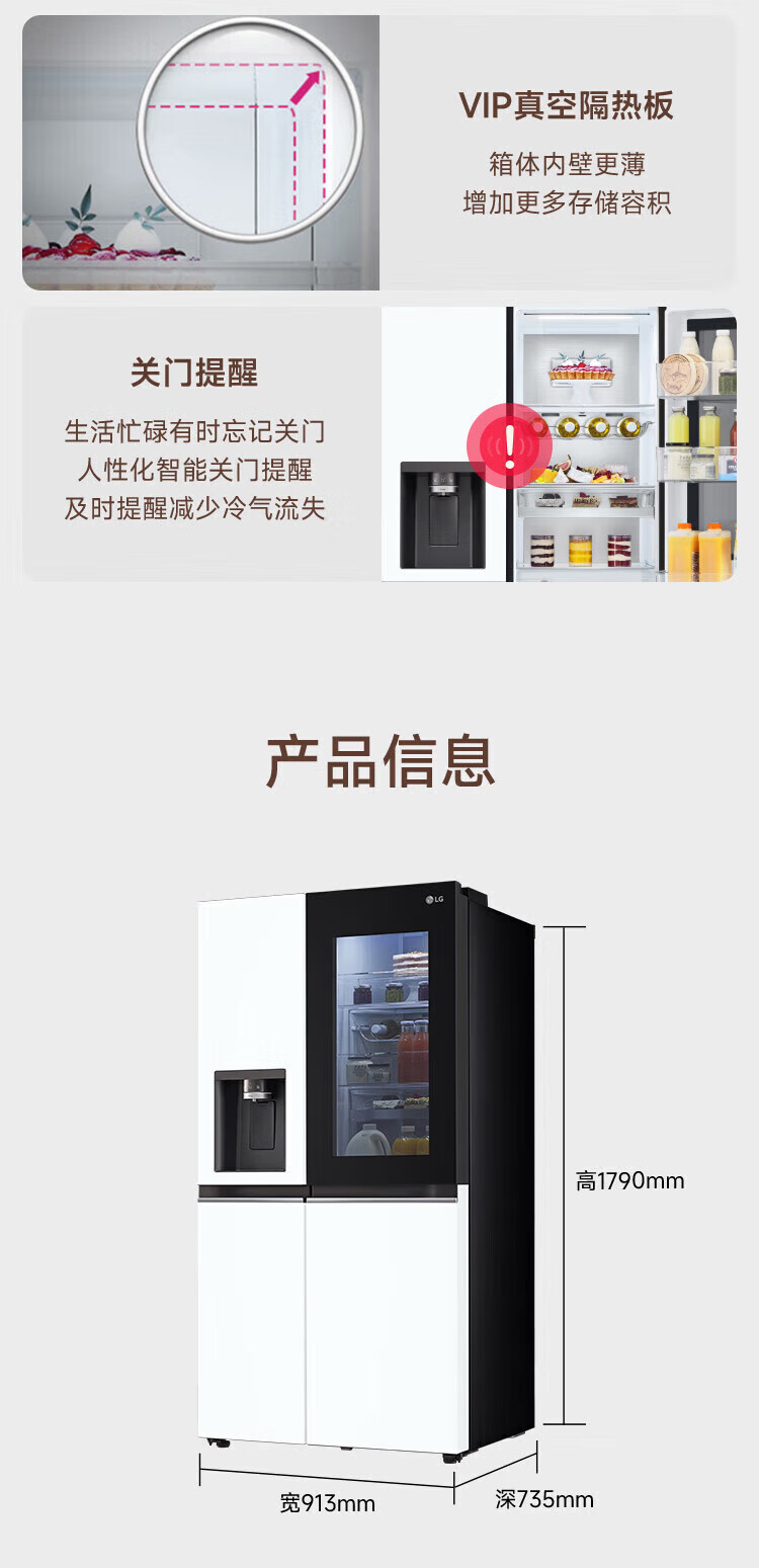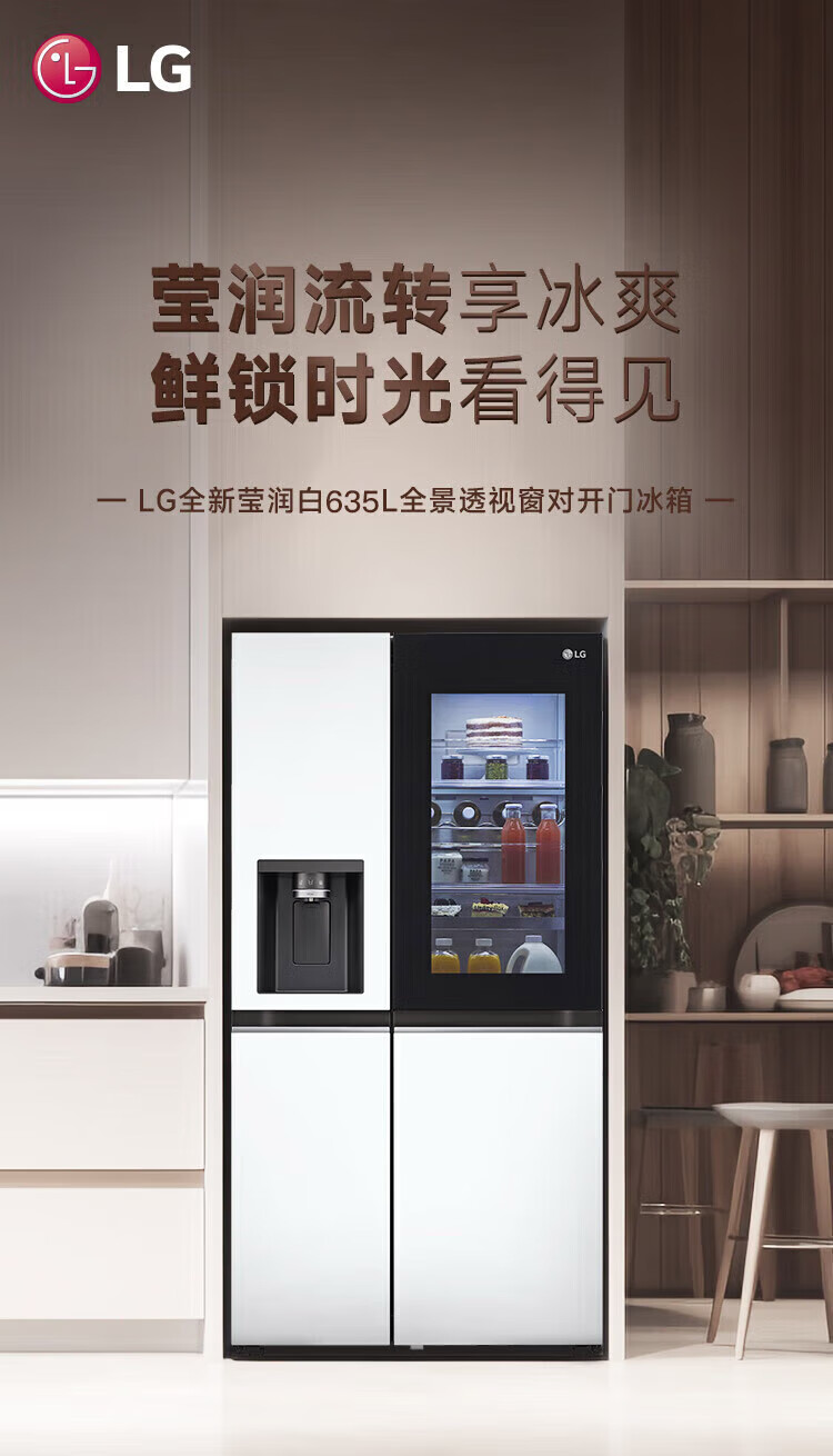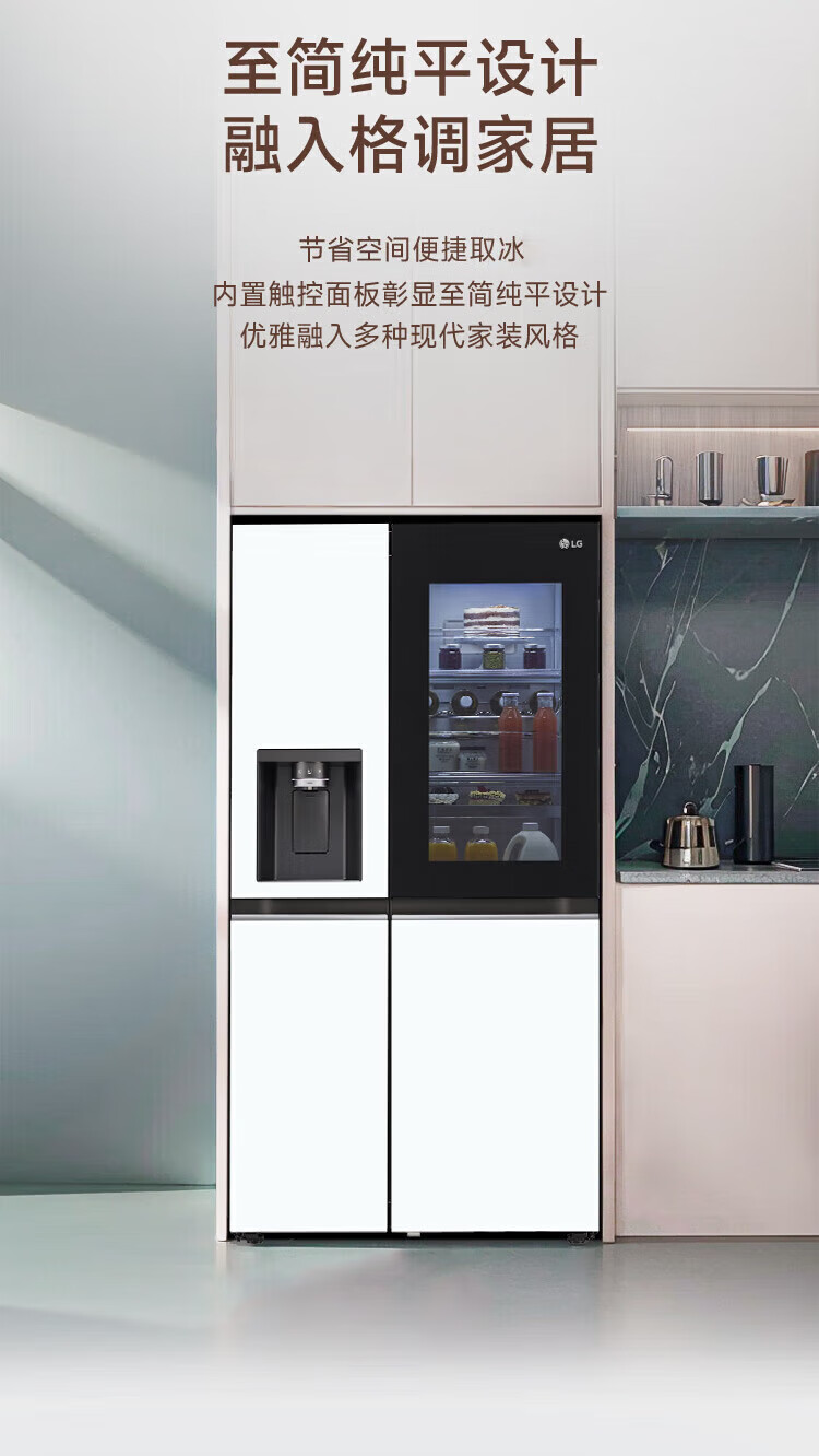 LG automatic ice maker refrigerator 635L Knock-on see-through window Air-cooled frost-free frequency conversion energy-saving Smart computer temperature control Ultra-thin household large capacity S653MWW87D Crystal white S653MWW87D