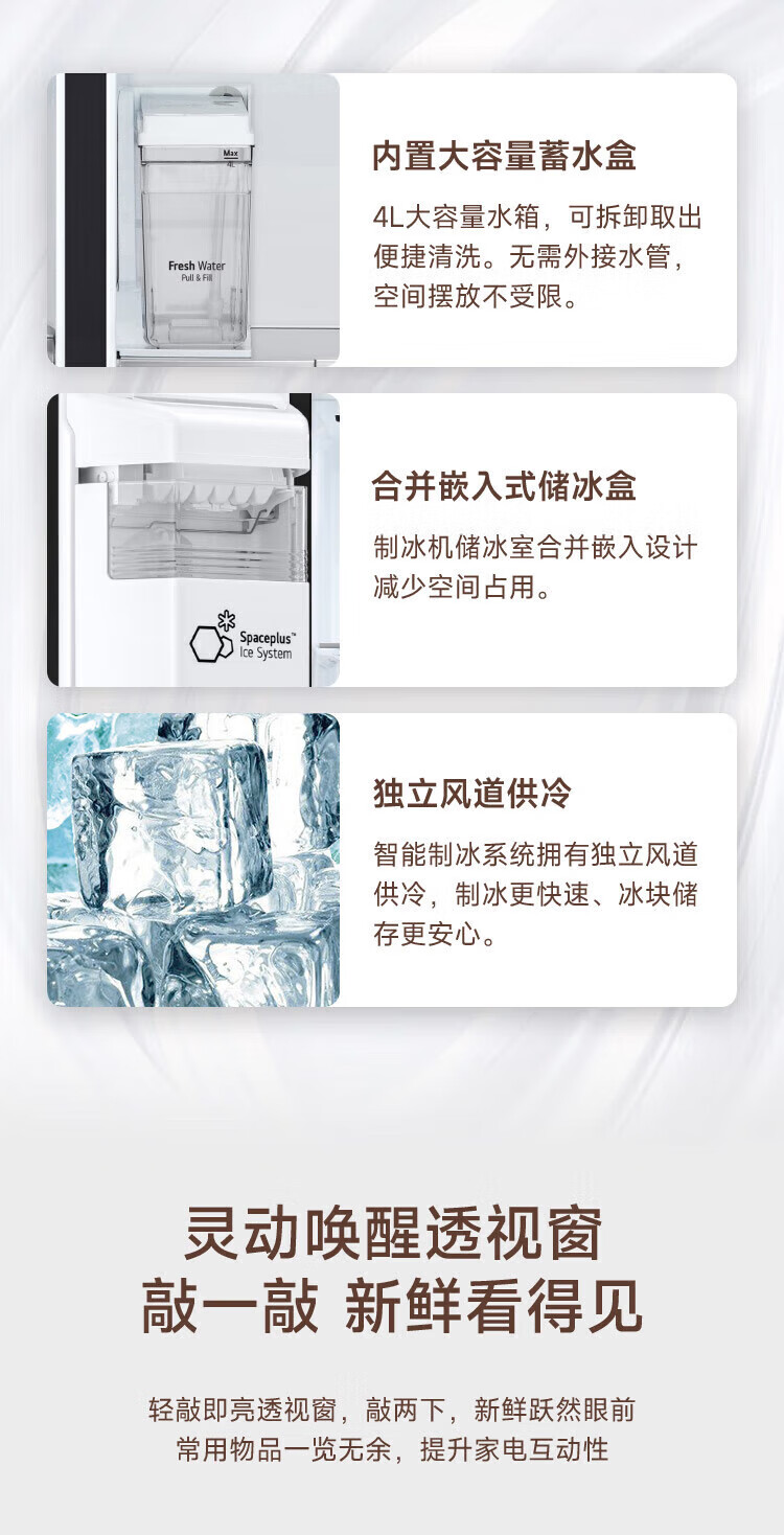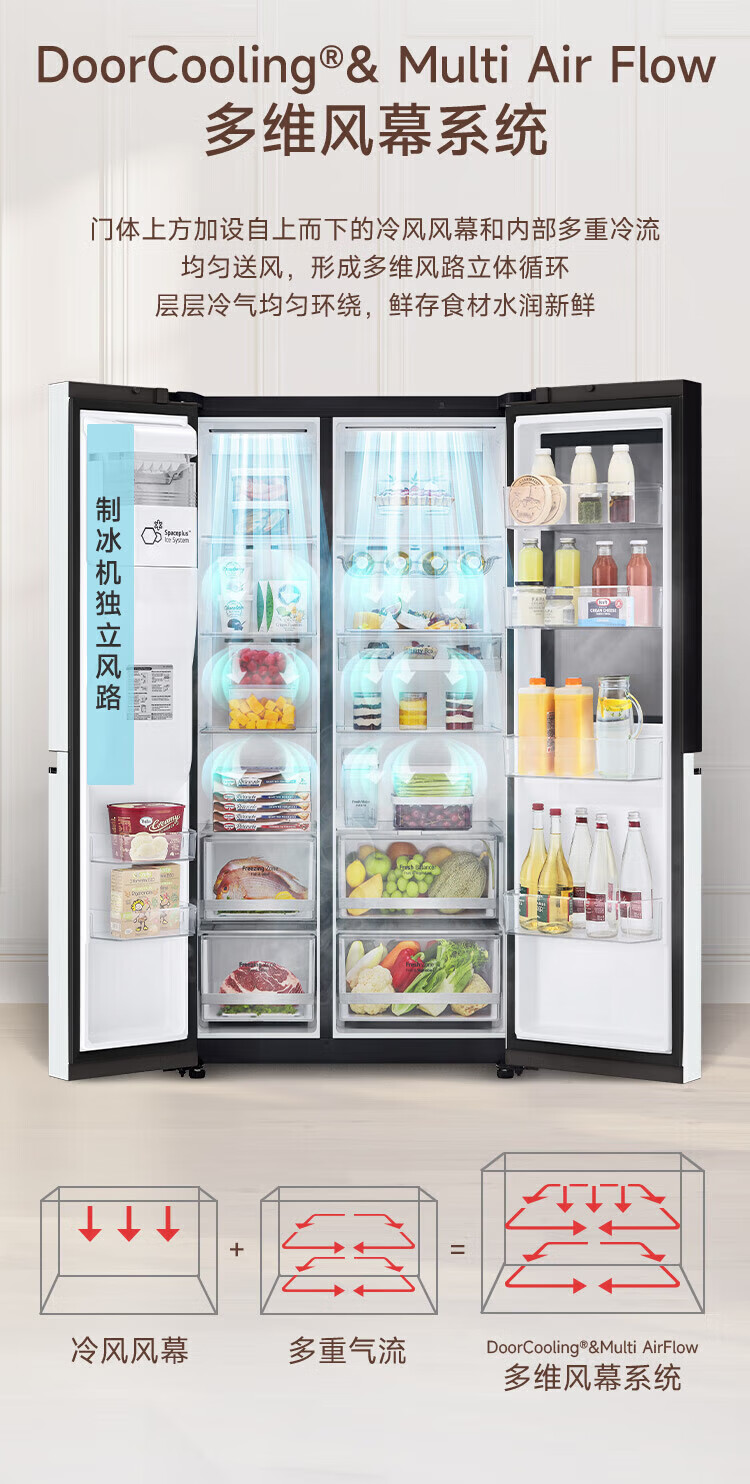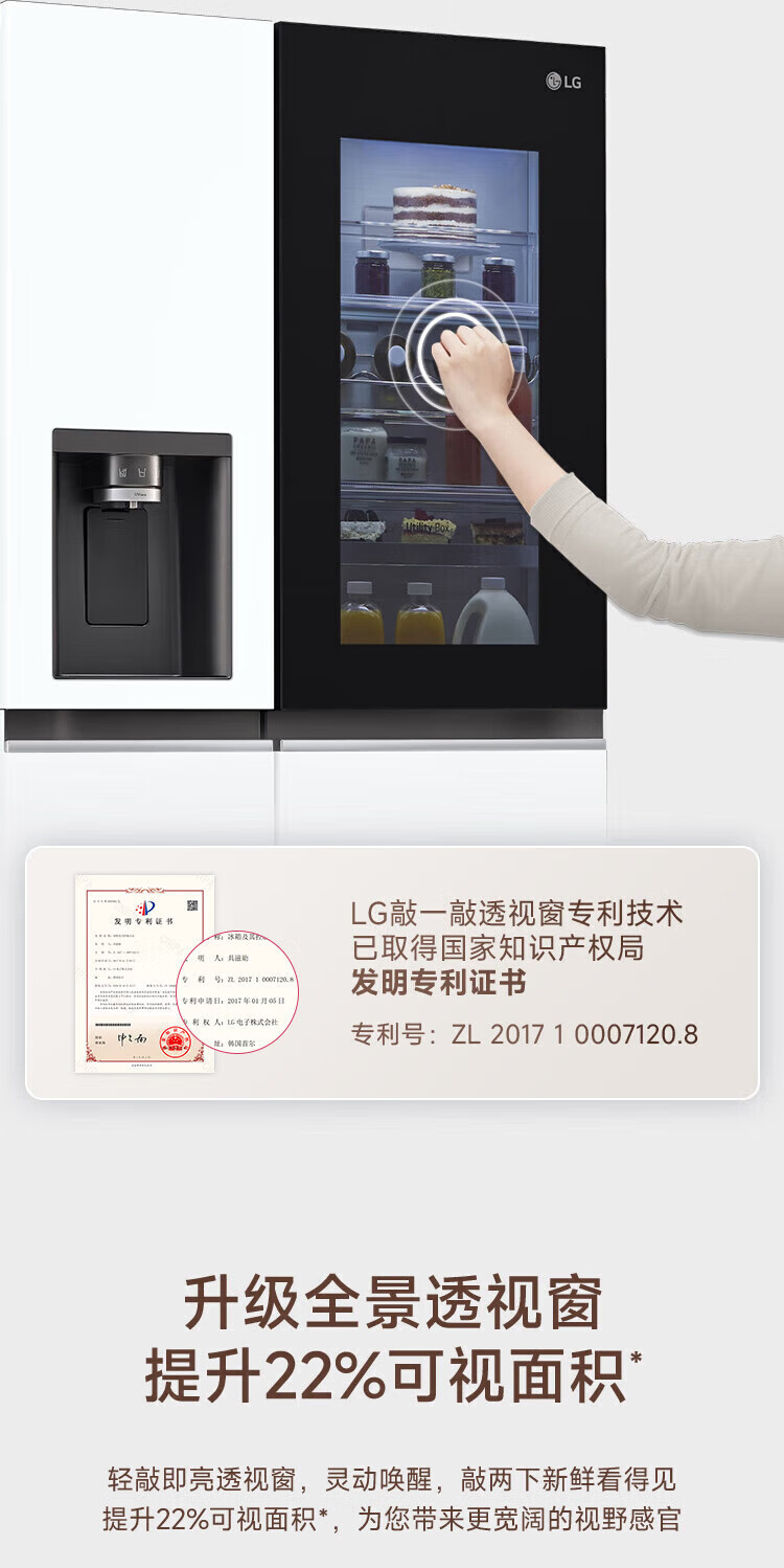 LG automatic ice maker refrigerator 635L Knock-on see-through window Air-cooled frost-free frequency conversion energy-saving Smart computer temperature control Ultra-thin household large capacity S653MWW87D Crystal white S653MWW87D