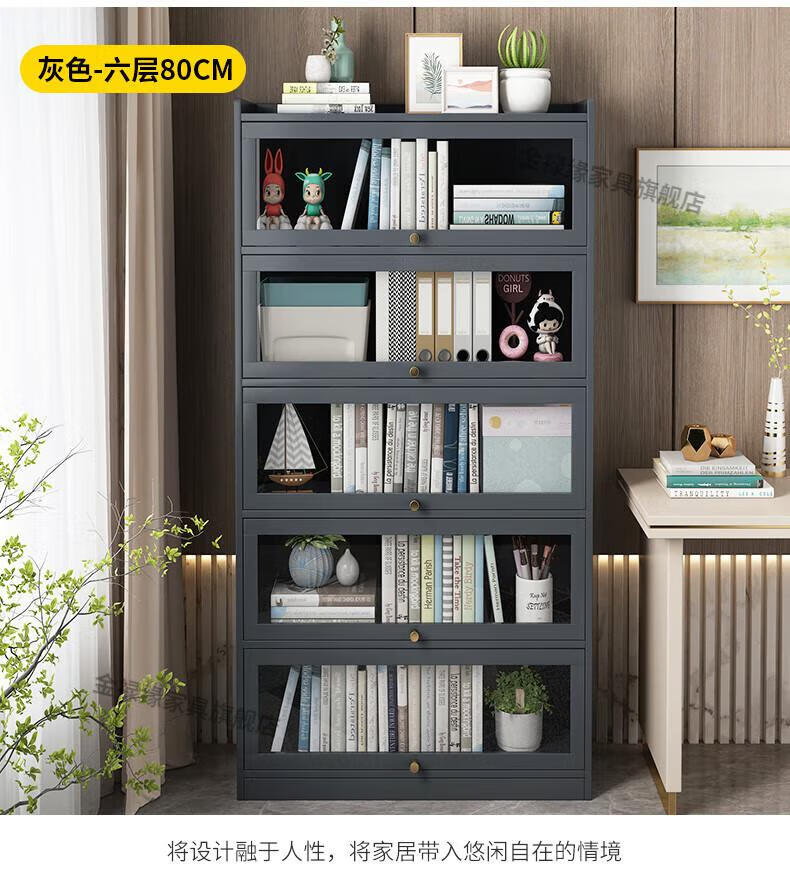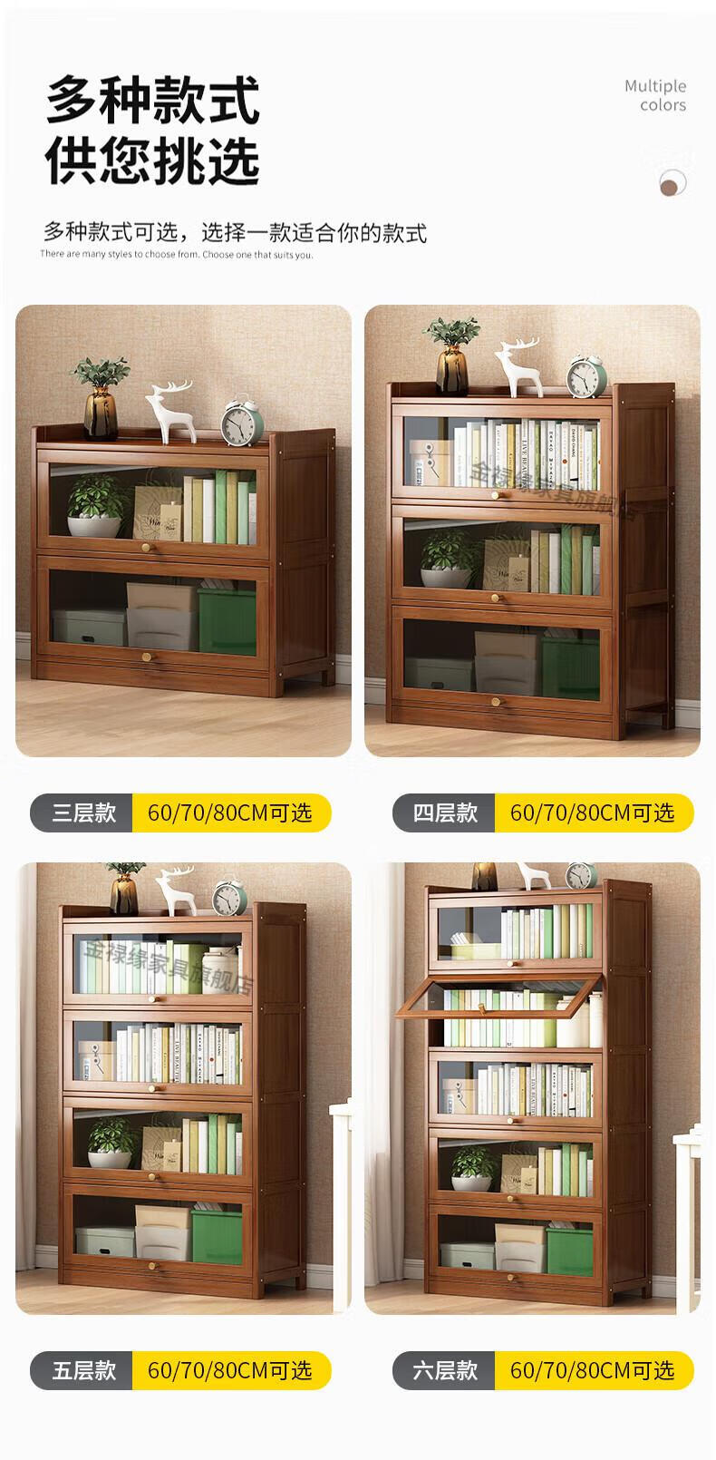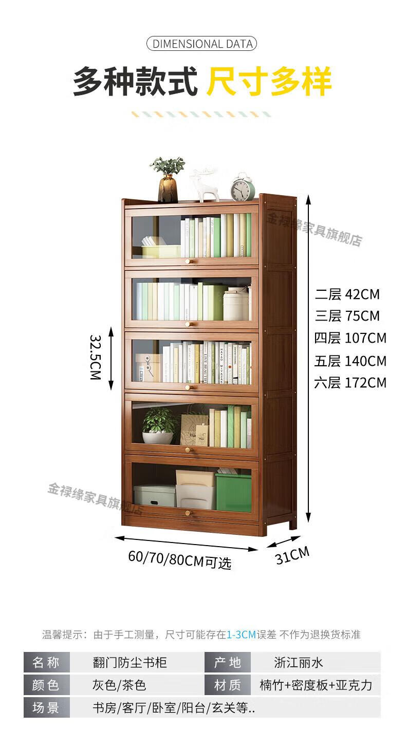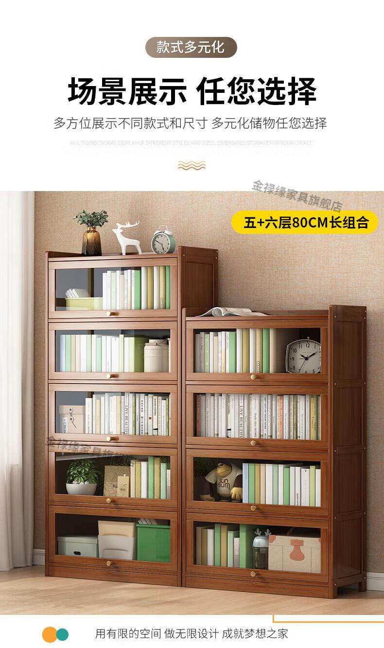 Jin Luyuan bookshelf storage rack floor-standing simple home new simple bookcase with door dust-proof storage cabinet living room storage cabinet back 6 layers 80 classic brown - full bamboo frame transparent