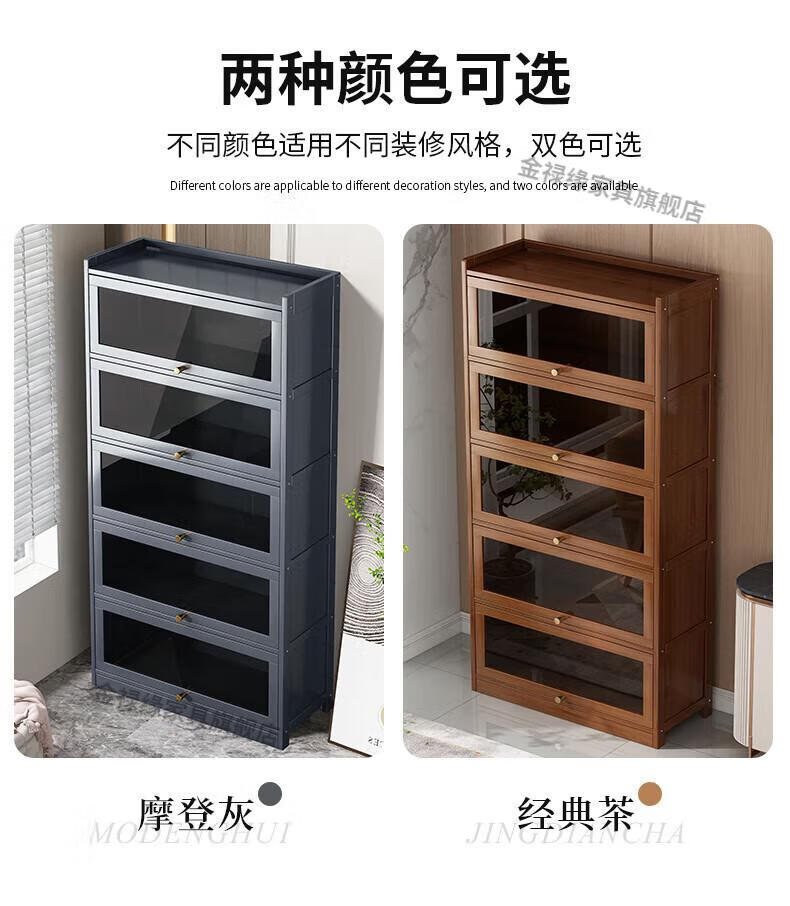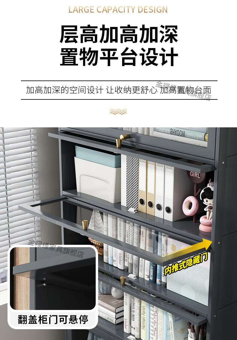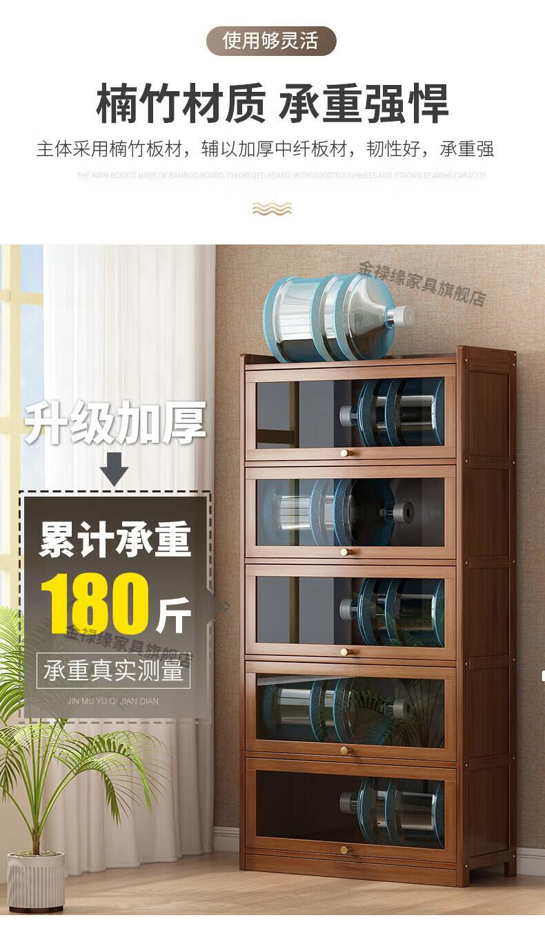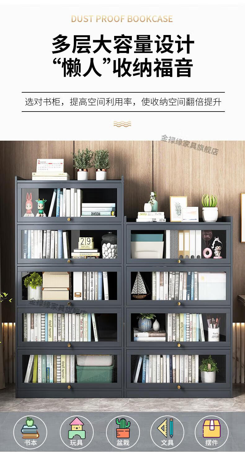 Jin Luyuan bookshelf storage rack floor-standing simple home new simple bookcase with door dust-proof storage cabinet living room storage cabinet back 6 layers 80 classic brown - full bamboo frame transparent
