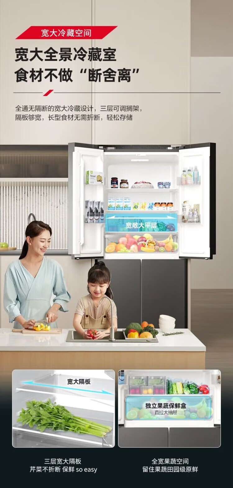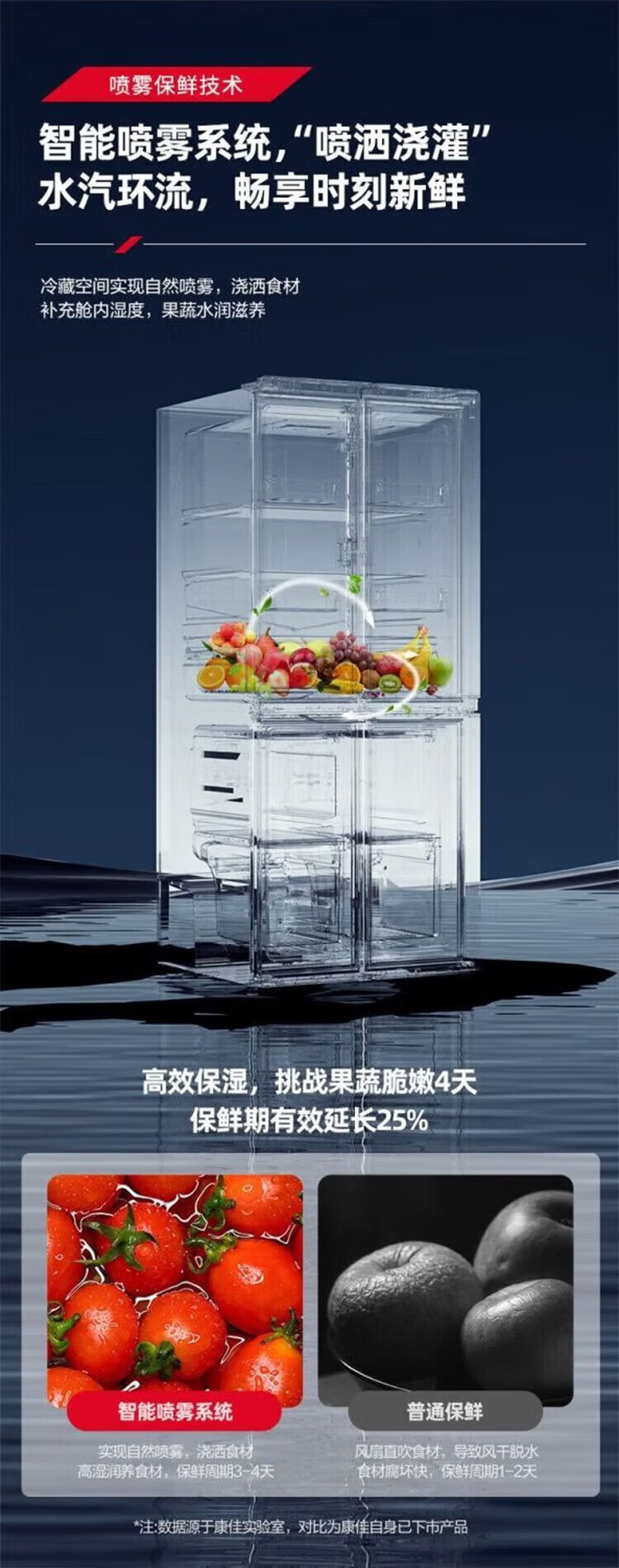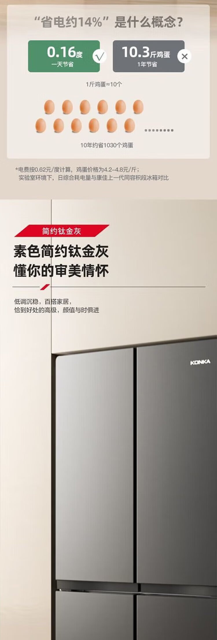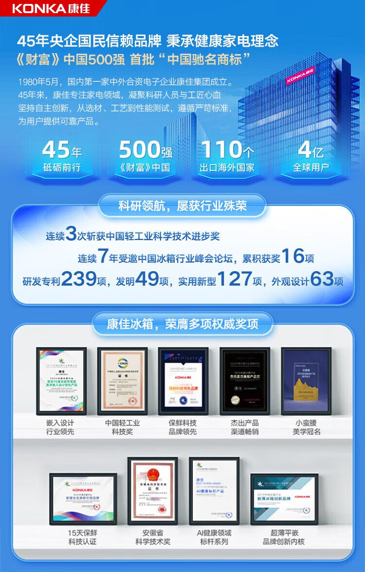 Konka 409 liter cross double-open four-door household refrigerator energy-saving fresh-keeping panoramic large-capacity refined storage intelligent spray system efficient moisturizing old-for-new 4G40IC