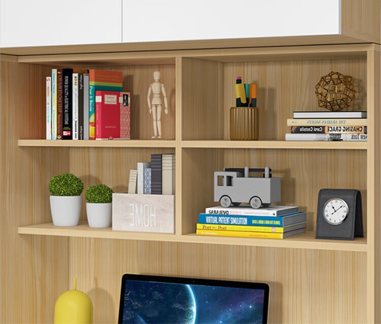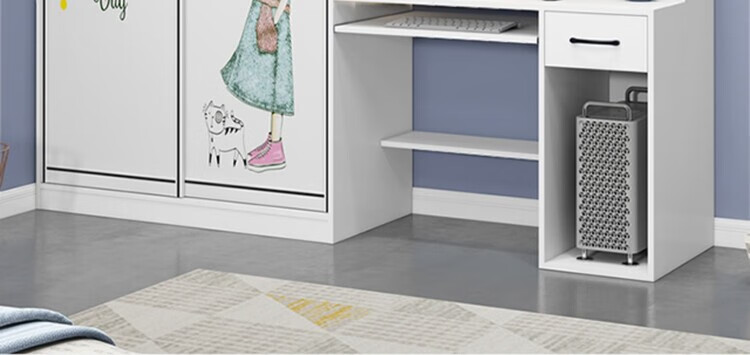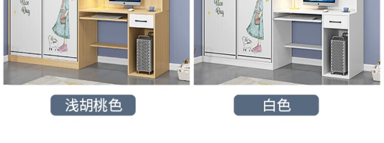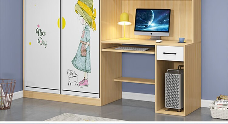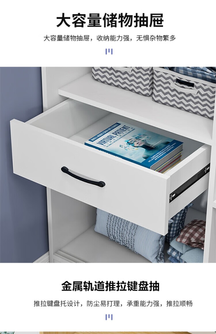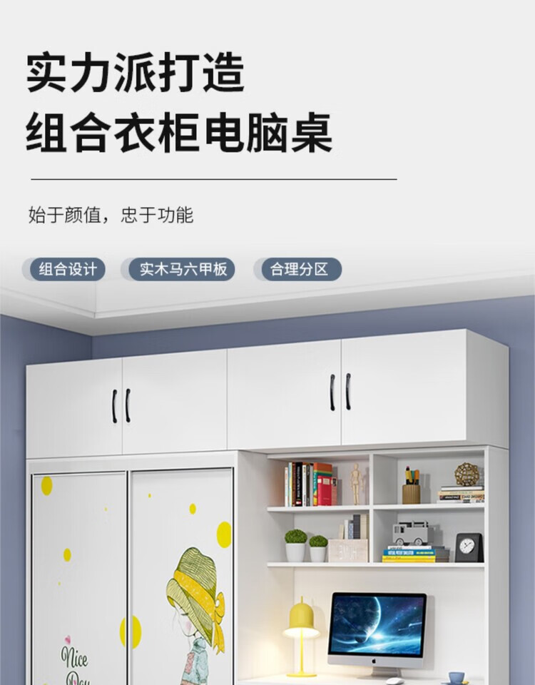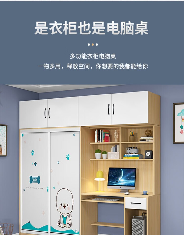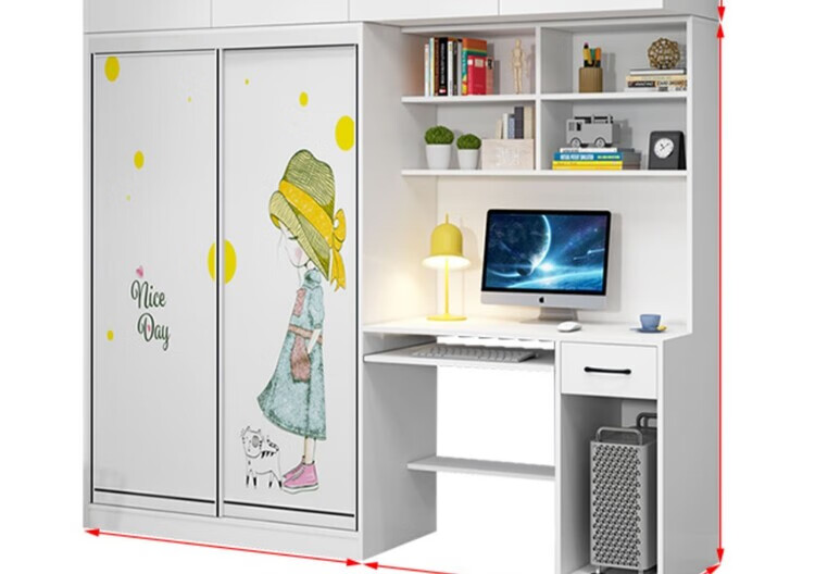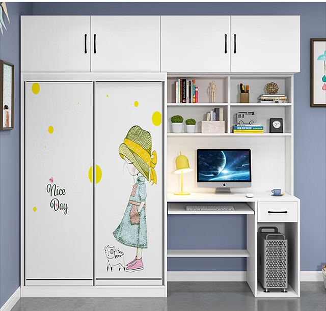 Small bedroom wardrobe with study table desk bookshelf computer desk combination solid wood sliding door integrated corner dressing table total length 1.6 meters (80 wardrobe + 80 table + top cabinet) white