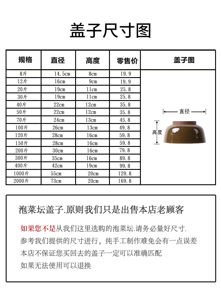 Baichunbao pickle jar lid sold separately Sichuan outer lid single use clay pottery old jar pickled vegetable jar lid old-fashioned plus green glaze 12 catties lid_diameter 16 height 9 0ml