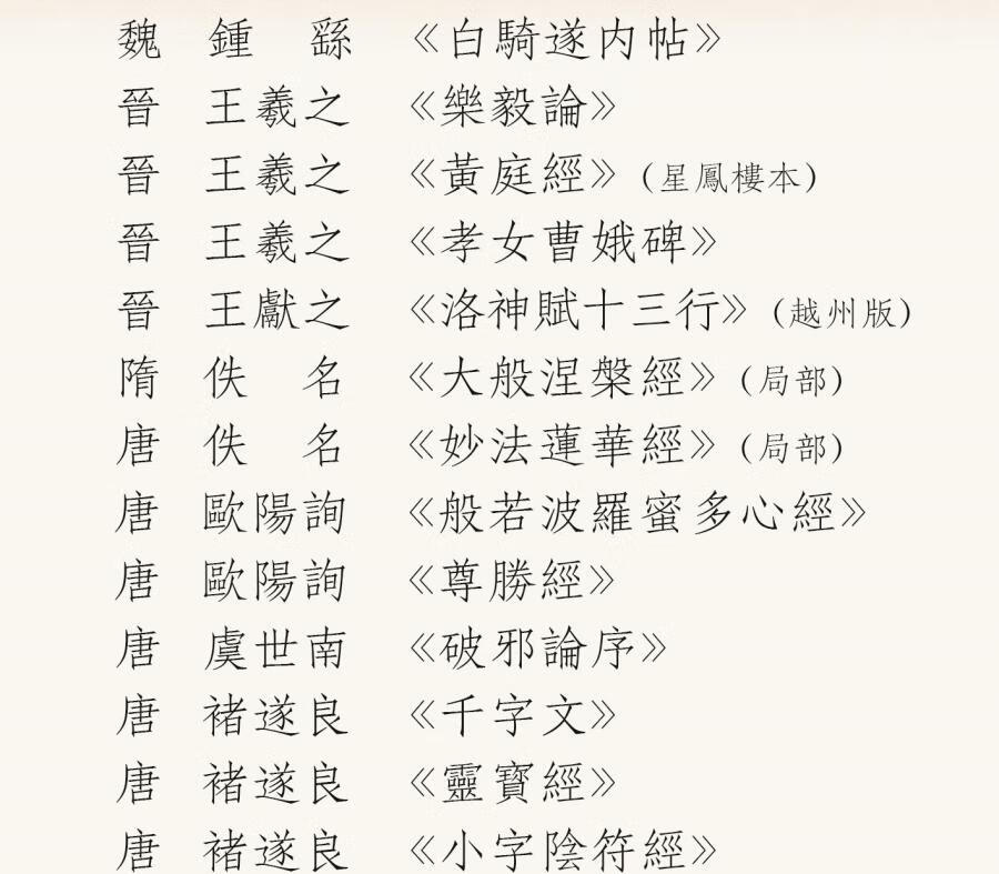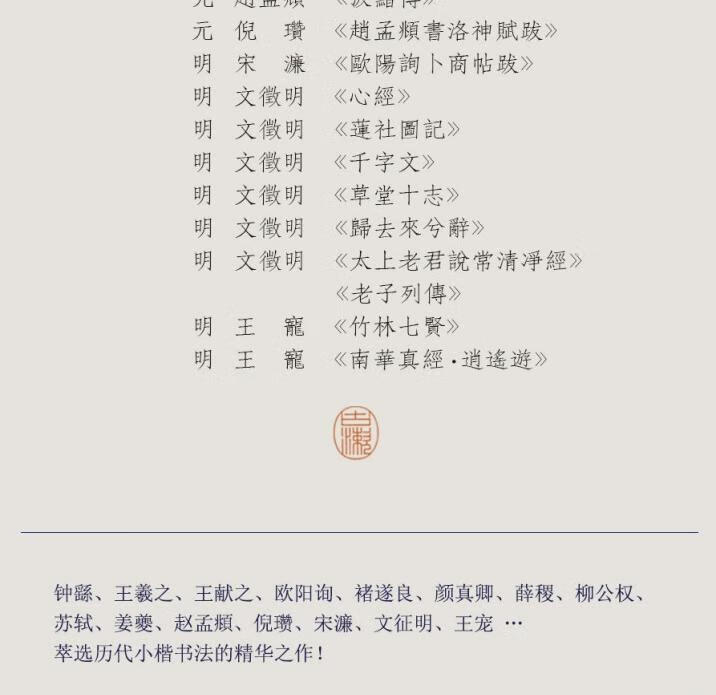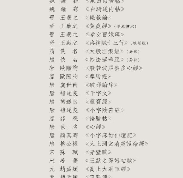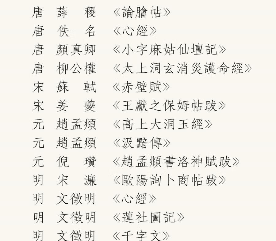 Selection of small regular scripts from past dynasties