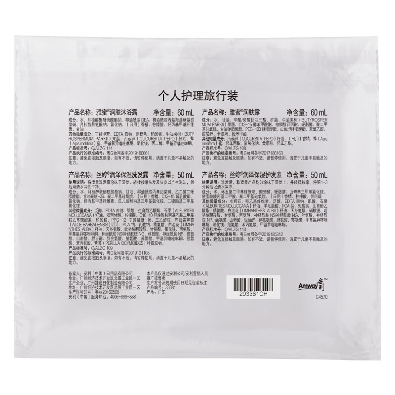 Amway personal care travel set (shampoo + conditioner + shower gel + body lotion) 1 set