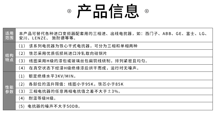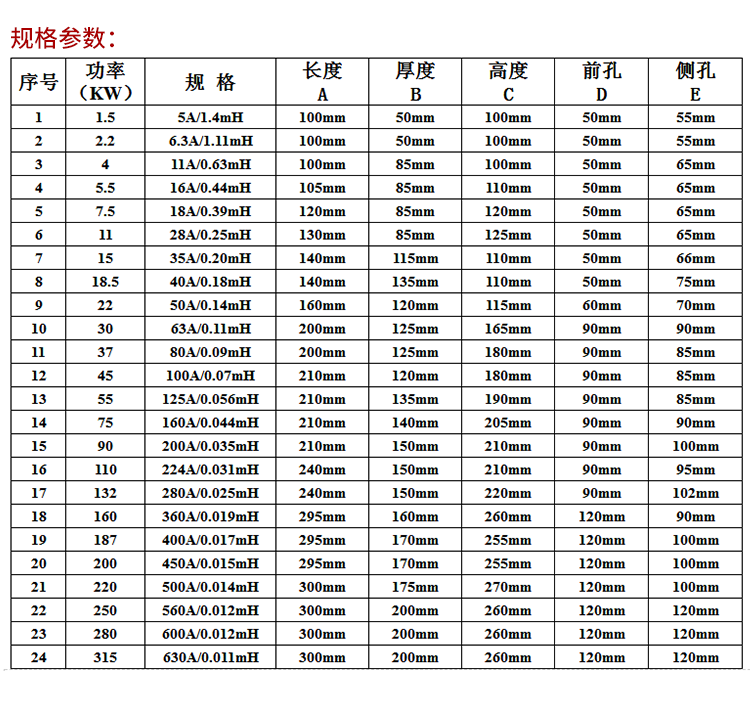 Three-phase reactor inverter capacitor output input AC DC filter series 11KW to 630KW 3.7KW-10A output outlet