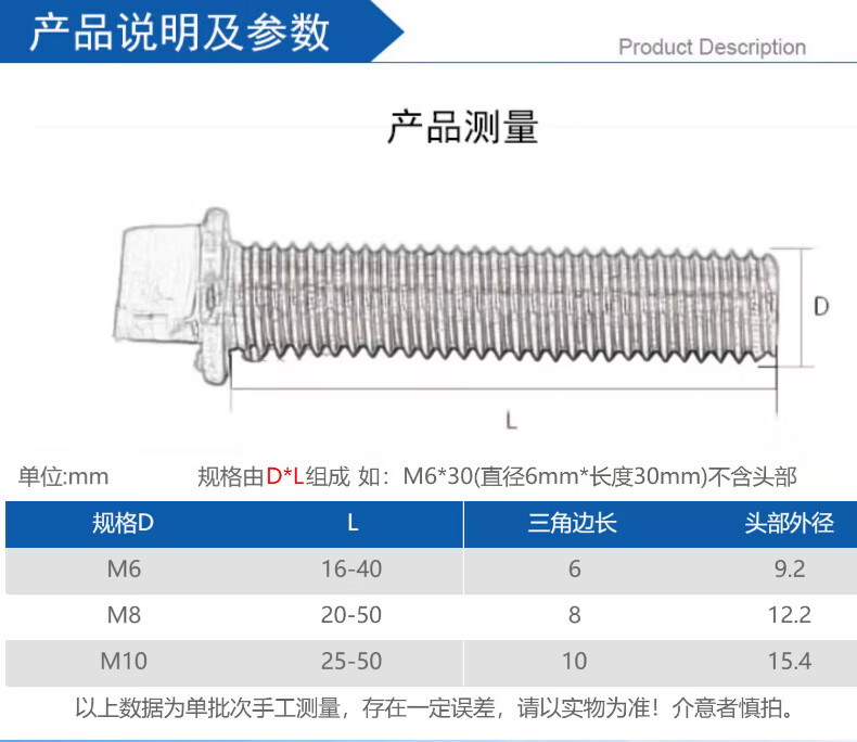 Tianzhuo Hardware M6M8M10 304 stainless steel triangle anti-theft screws street light electrical box chassis guardrail bolts*20x30x50 M6*25-5 only