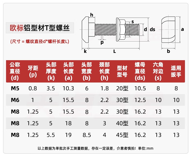 Tianzhuo Hardware European standard T-type screw aluminum profile accessories T-bolt flange nut set M5M6M8 20/30/40/45 type galvanized European standard 45 type-M10*25 (5 sets)