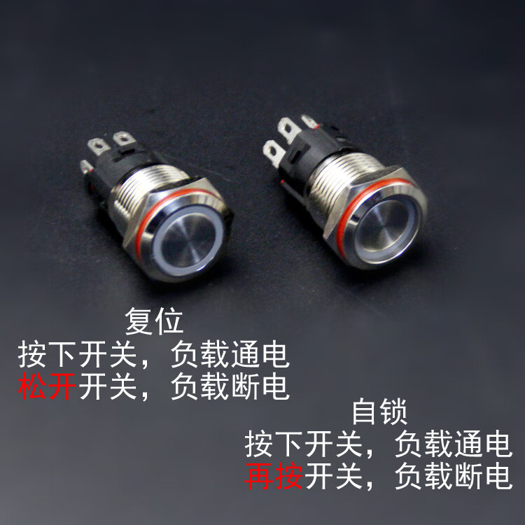 Metal button switch 16 two-color button three-color button with light LED highlight indicator light reset self-locking switch red, green and yellow three-color common cathode self-locking 12-24v