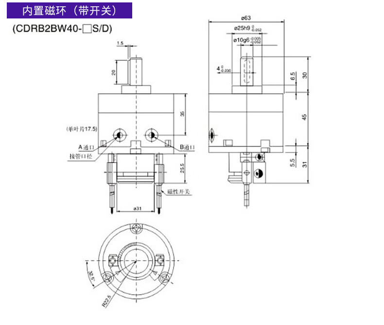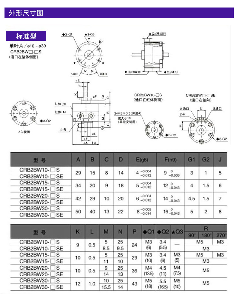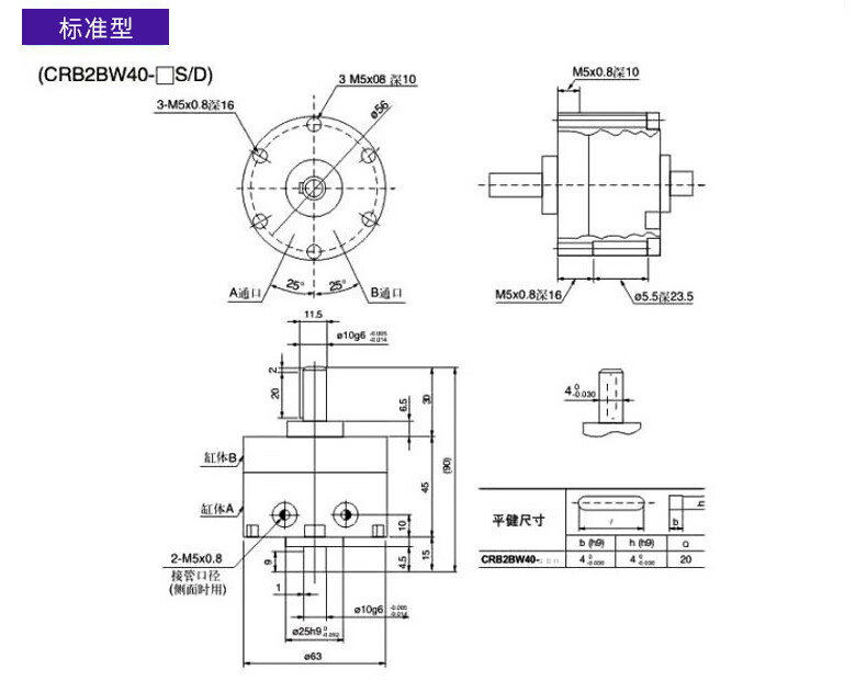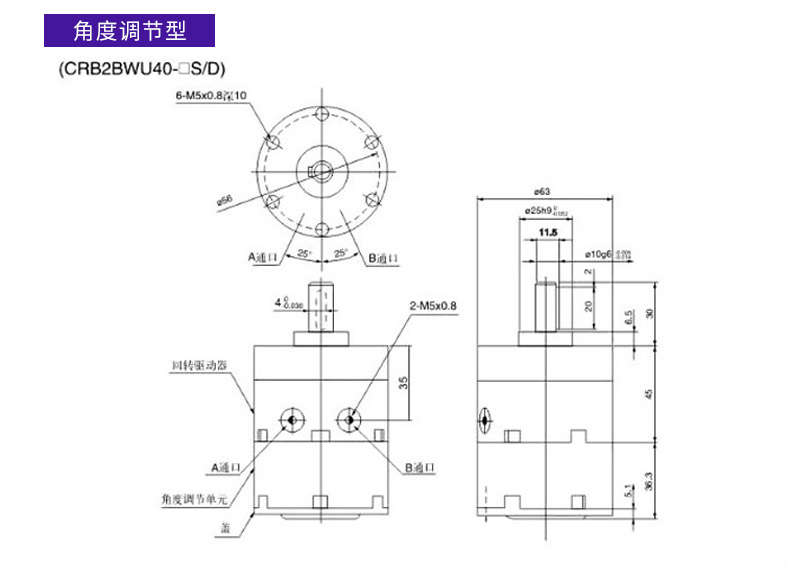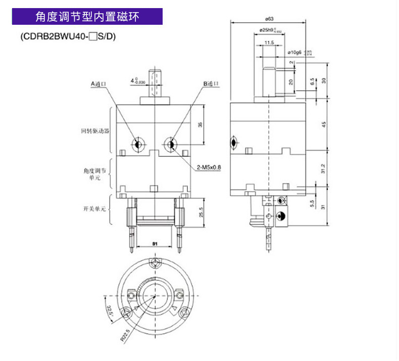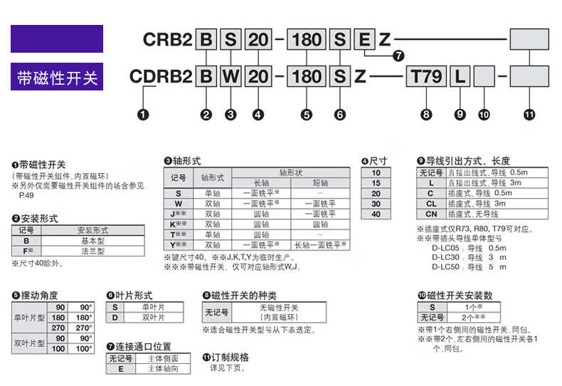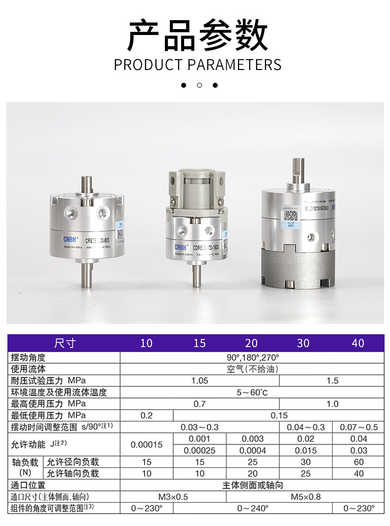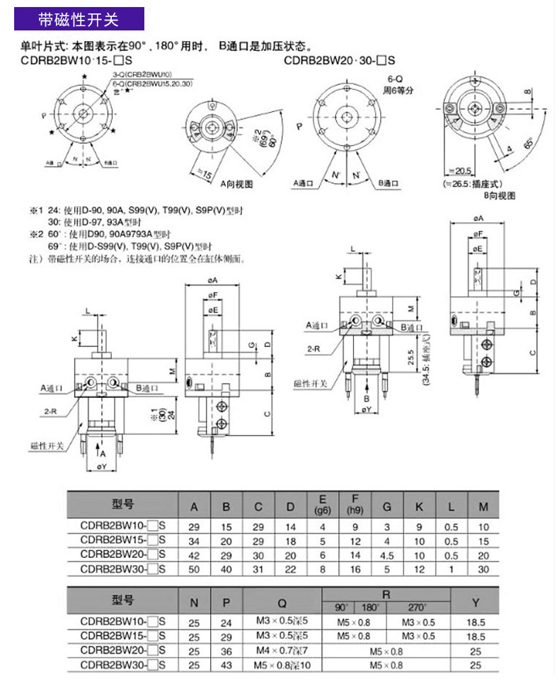 Angle-adjustable blade type rotary swing cylinder CDRB2BWU20/30/40-90S-180S-270S CRB2BWU10-90S angle adjustable without magnet