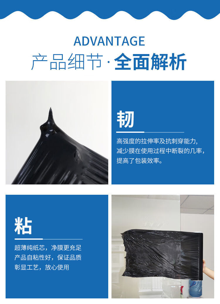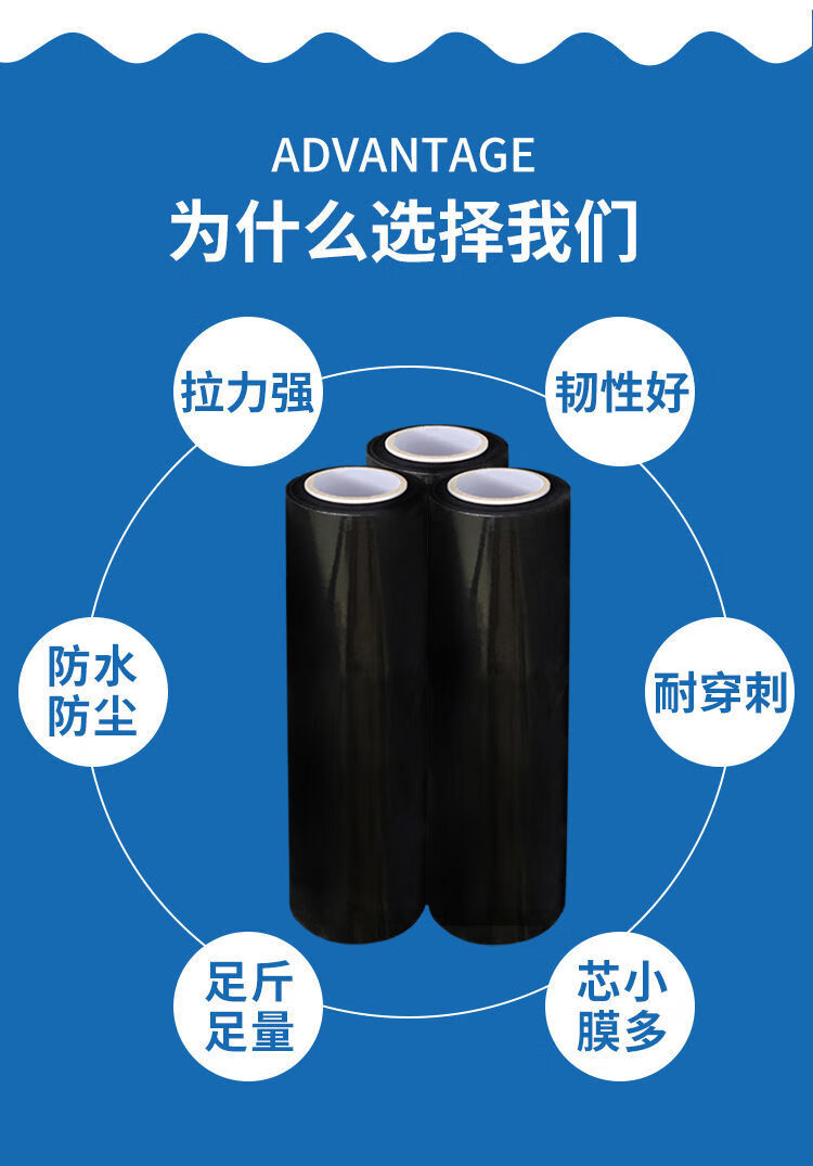 Stretch film black 45cm wide stretch film industrial cling film PE protective packaging film black large roll packaging film black film 30cm wide 340 meters long 3.6 pounds