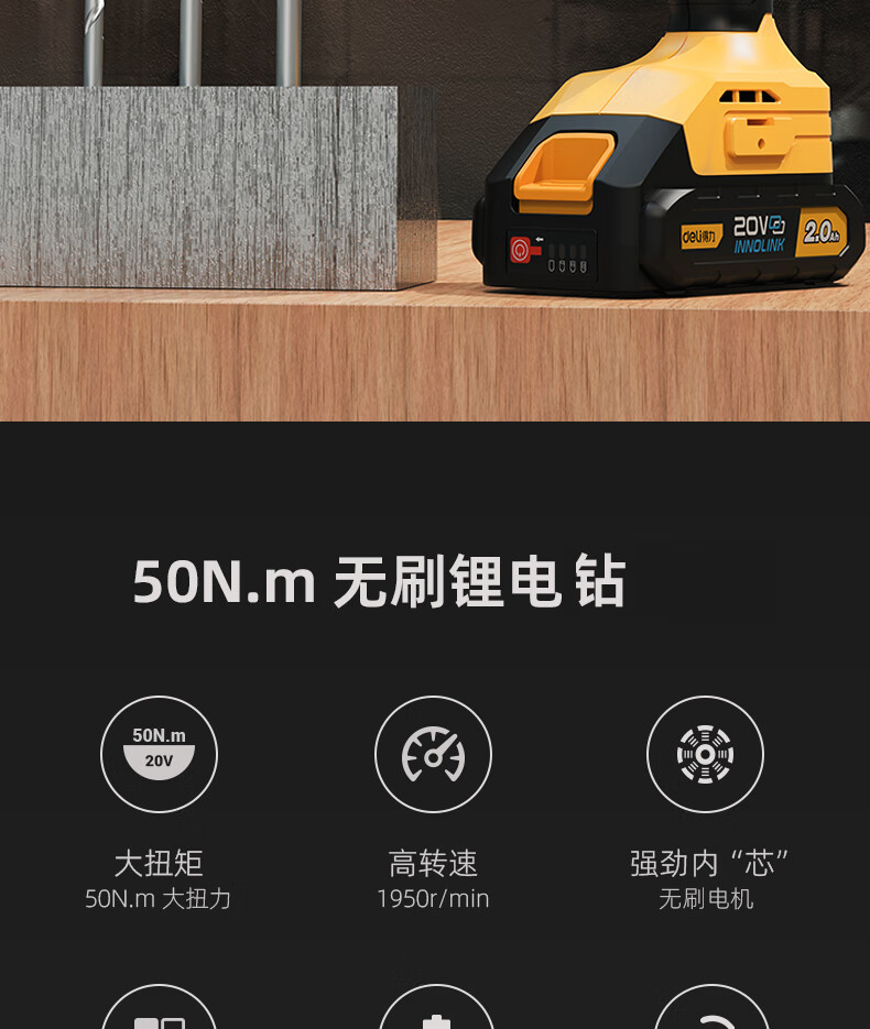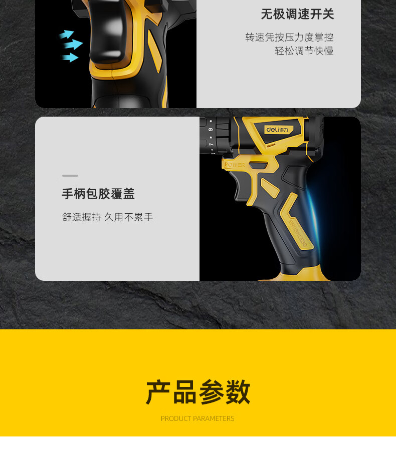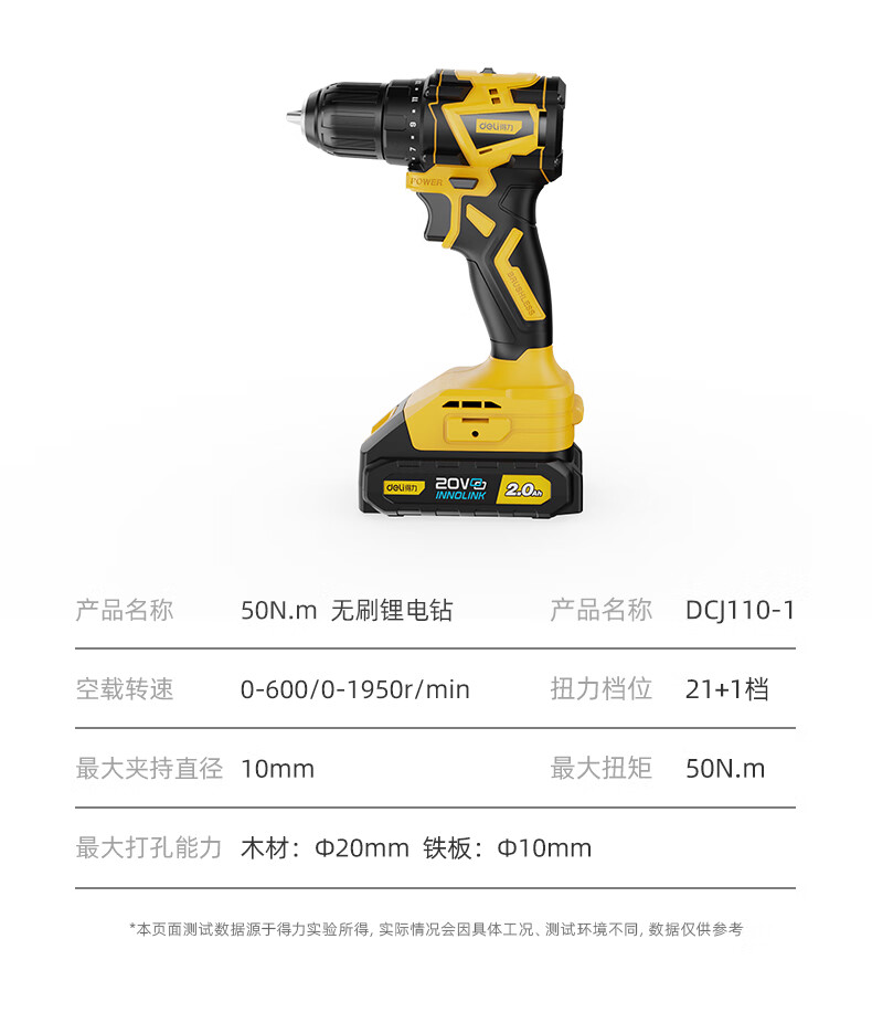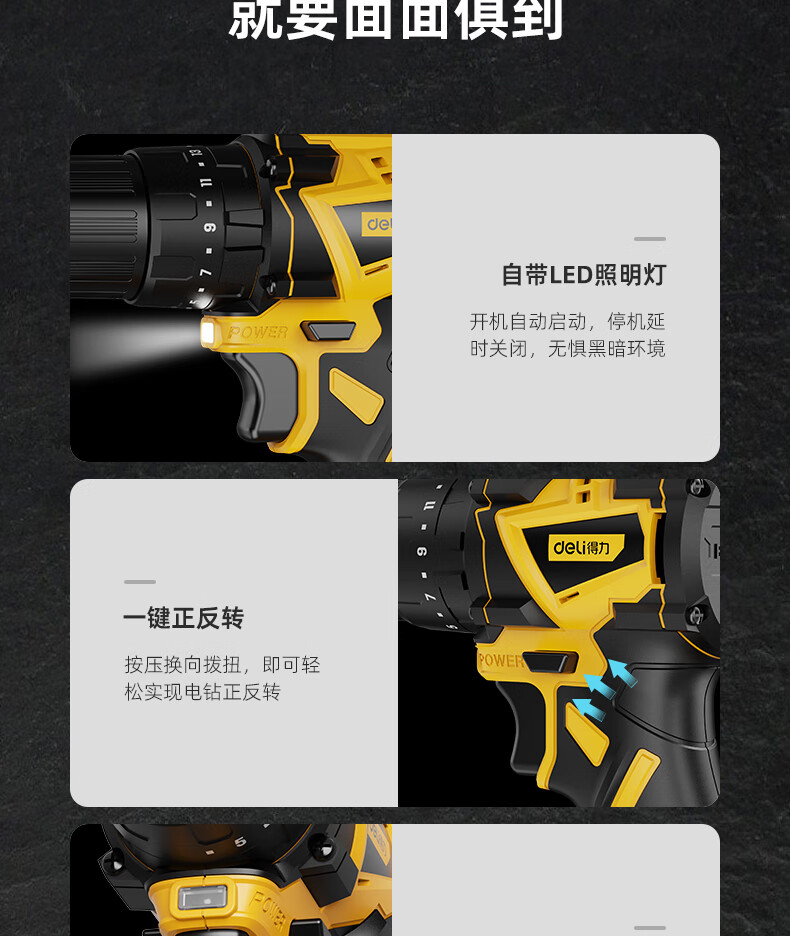 Deli (deli) hand electric drill, hand drill, household brushless lithium electric hand drill, rechargeable punching electric screwdriver, small steel gun 20V50N.m brushless high torque electric drill