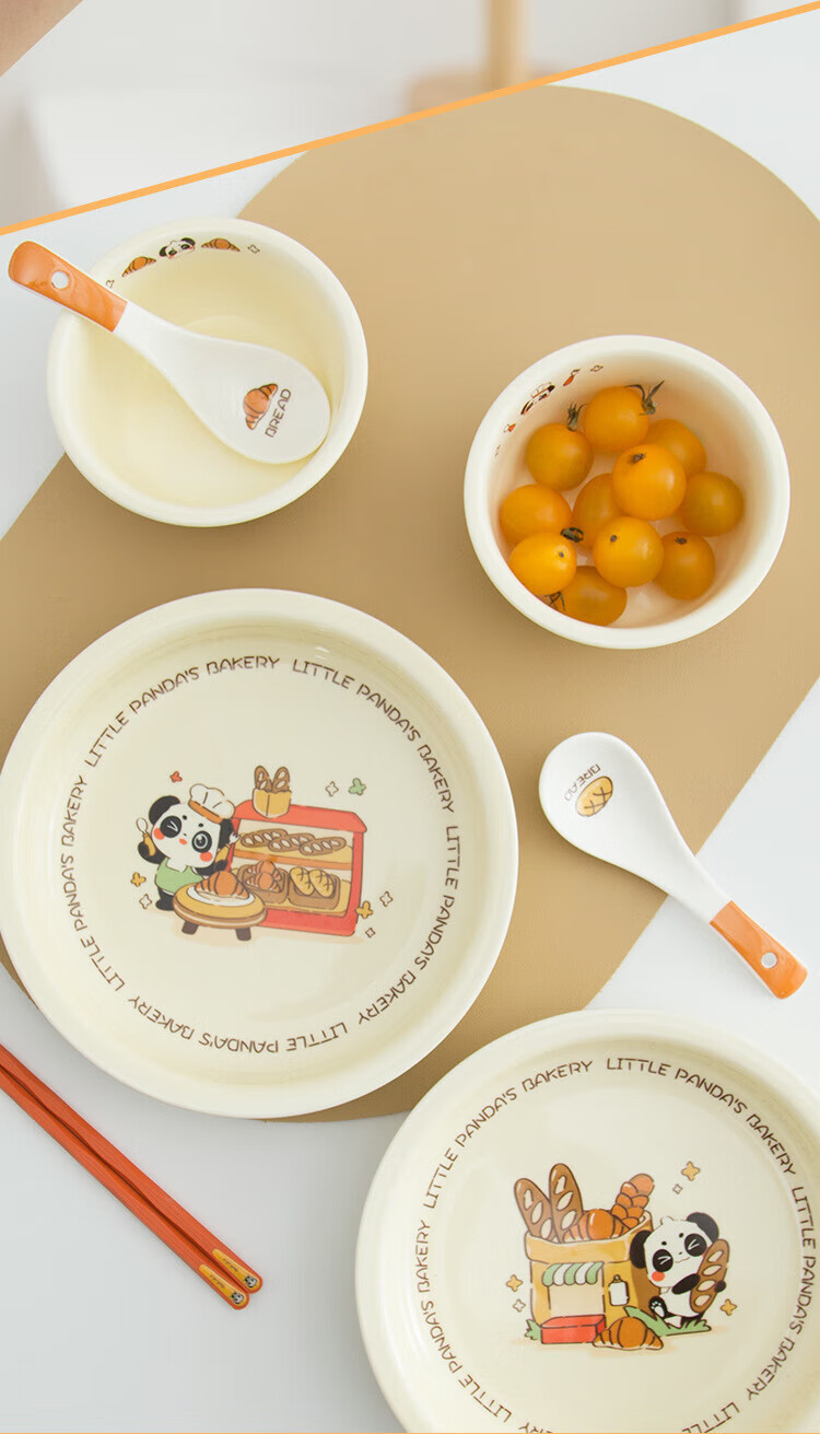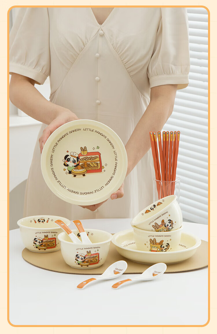 Jin Riman bowls, plates, and tableware 14-piece set, complete set of dishes, souvenirs, wedding housewarming event gifts, gift box, cream-style tableware, 4 bowls, 4 spoons, 4 chopsticks, 2 plates, 14 heads